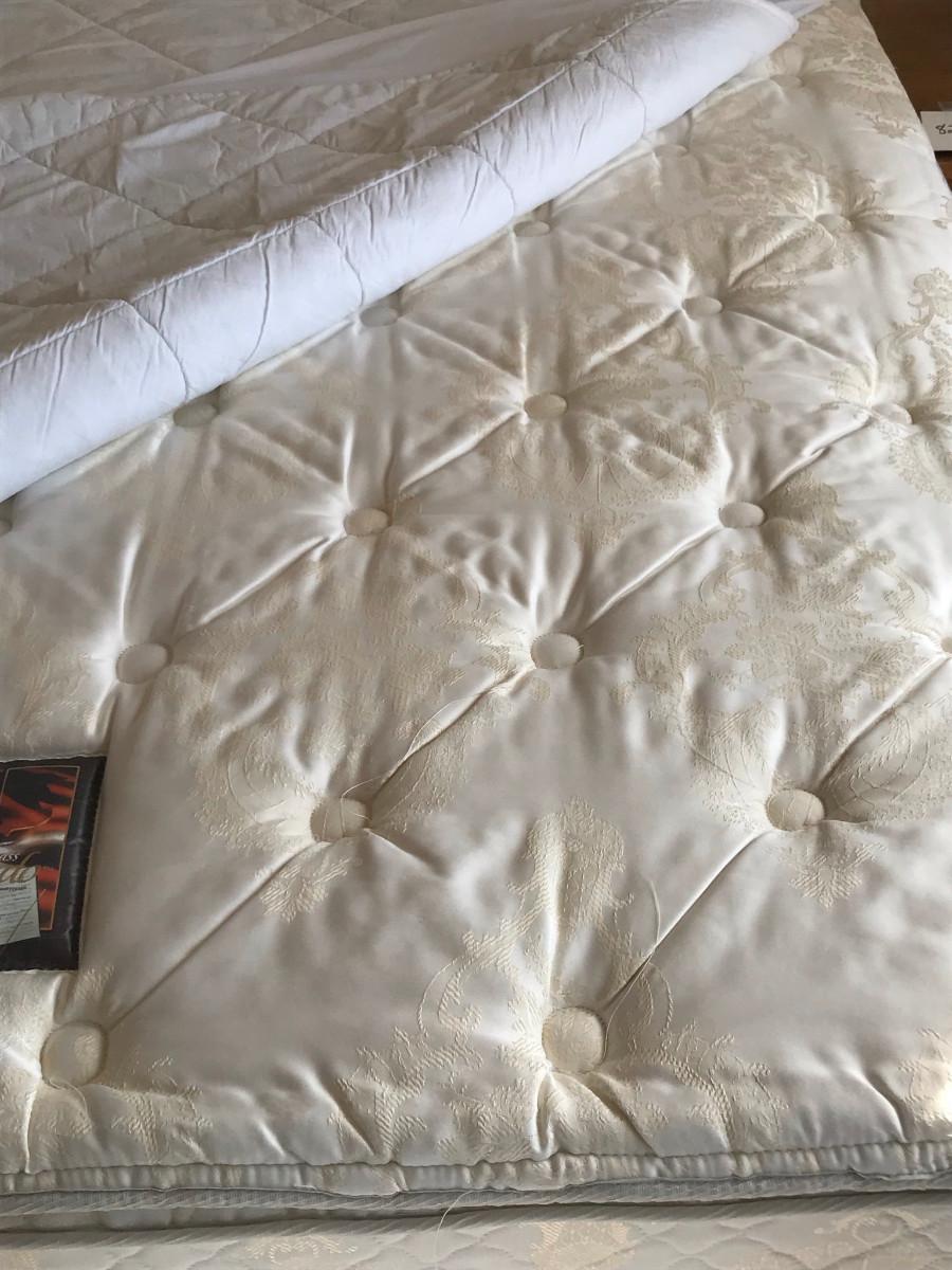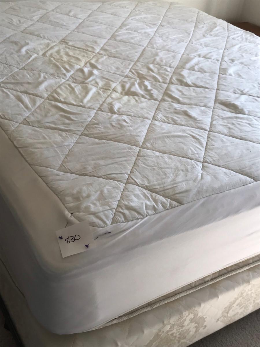 Box Springs, Mattress, & Bed Frame. No headboard. Clean, comes with mattress pad!