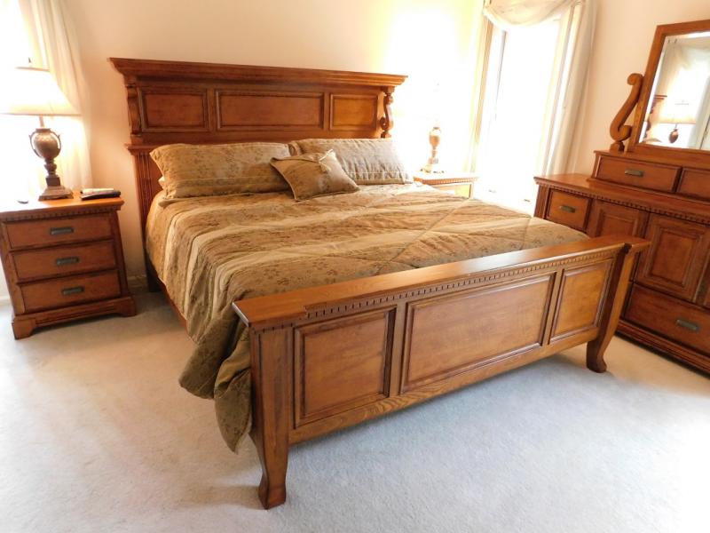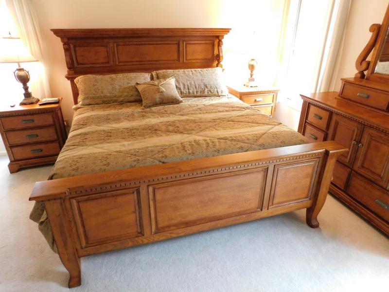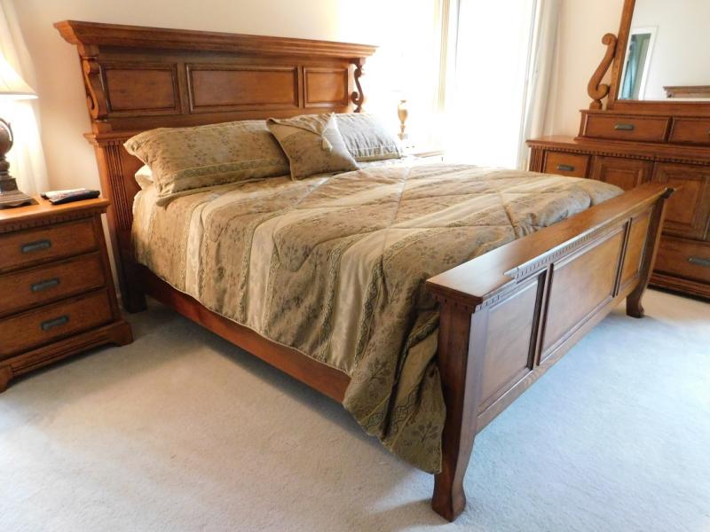 King Sized Solid Oak Bed Frame with Head and Foot Board and Side Rails in like new condition.