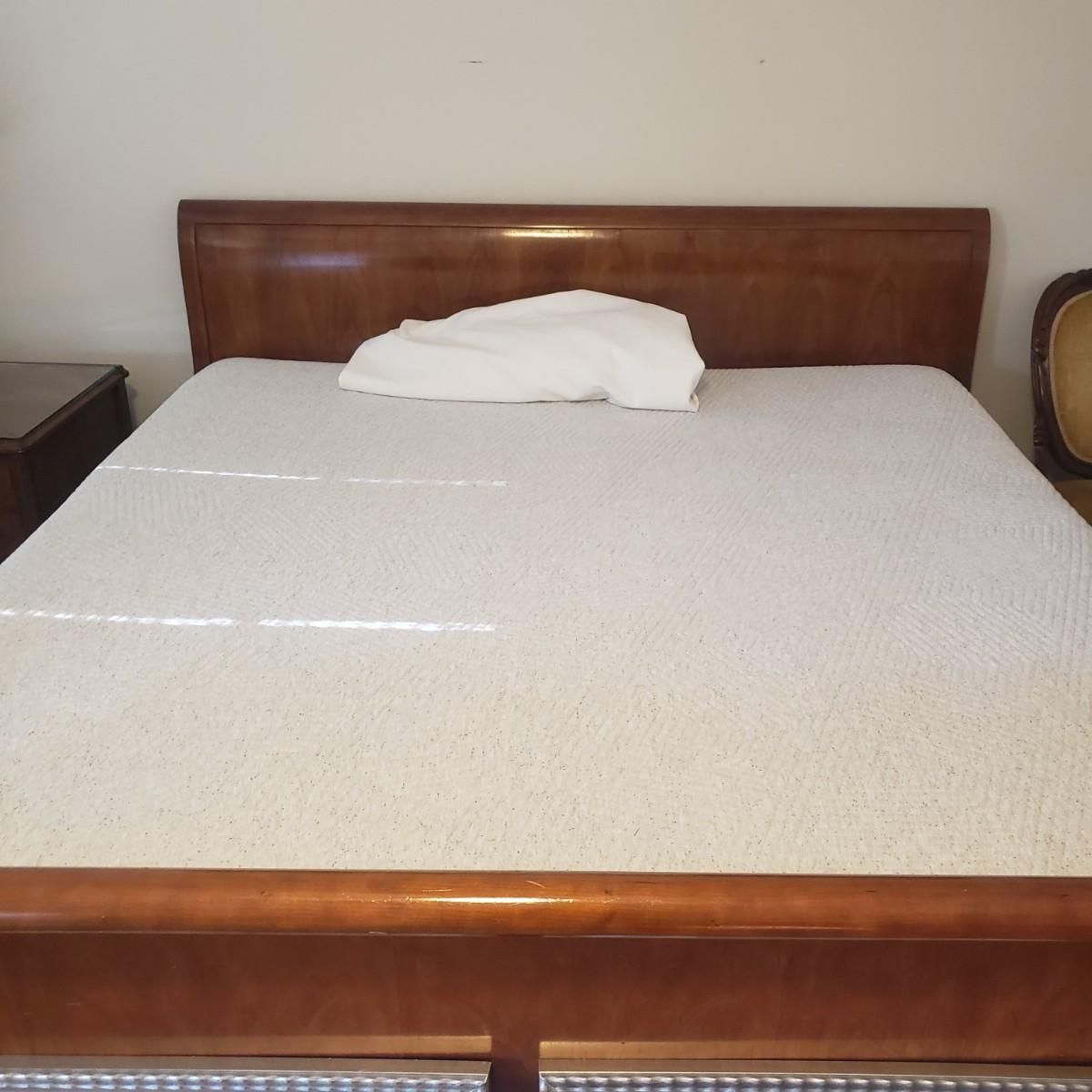 Measures 80” x 91” x 41”H. The bed frame comes with a Caspar memory foam mattress. There is a Caspar mattress cover that also comes with the bed frame if you choose. The mattress and box spring are available to the winning bidder, but the winning bidder is not required to take them.
