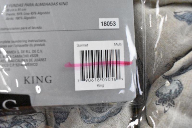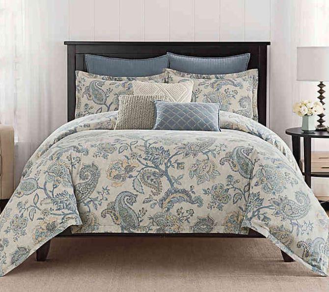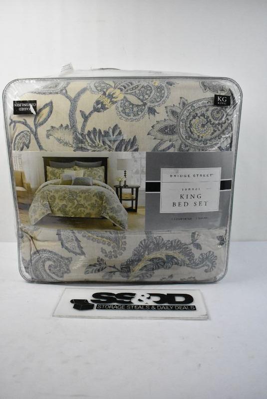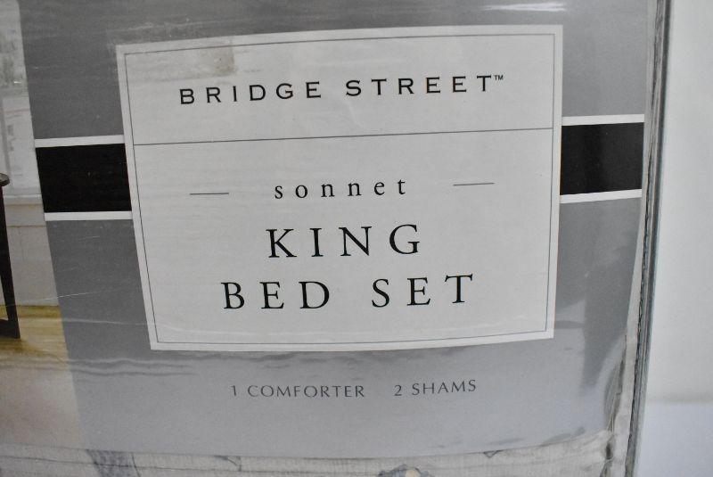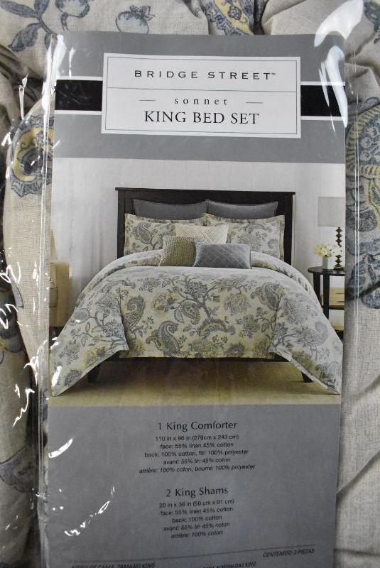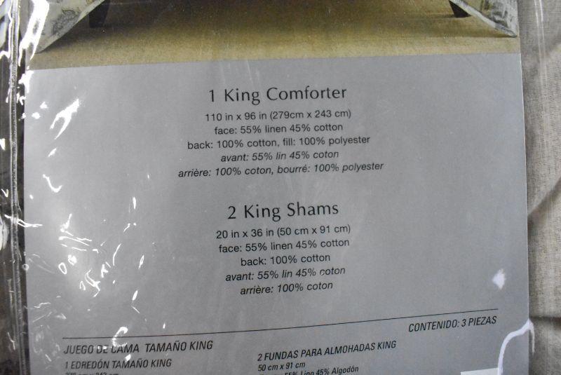 King Sonnet 3 PC Bed Set, 1 Comforter/2 Shams, Tan/Light Blue - New