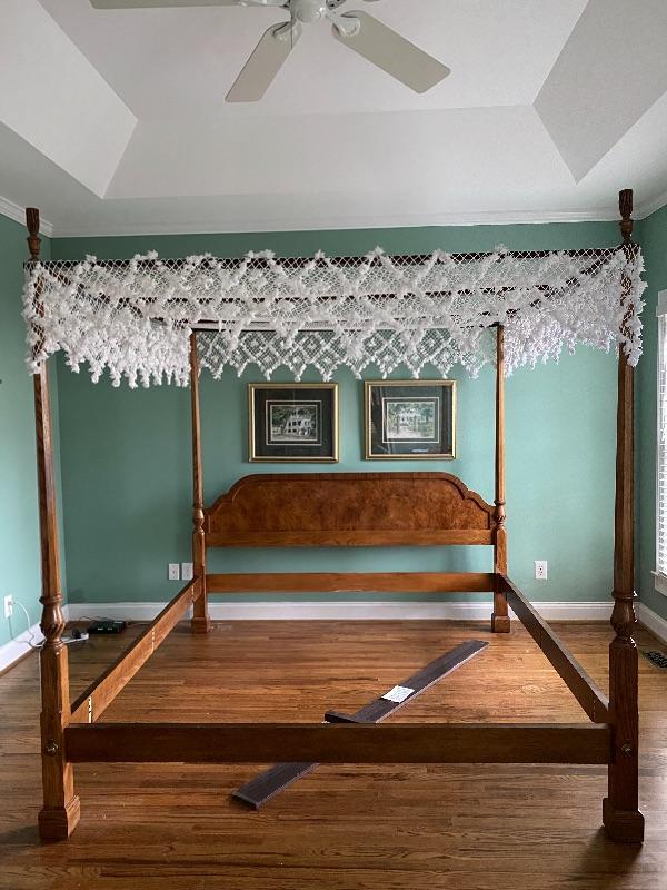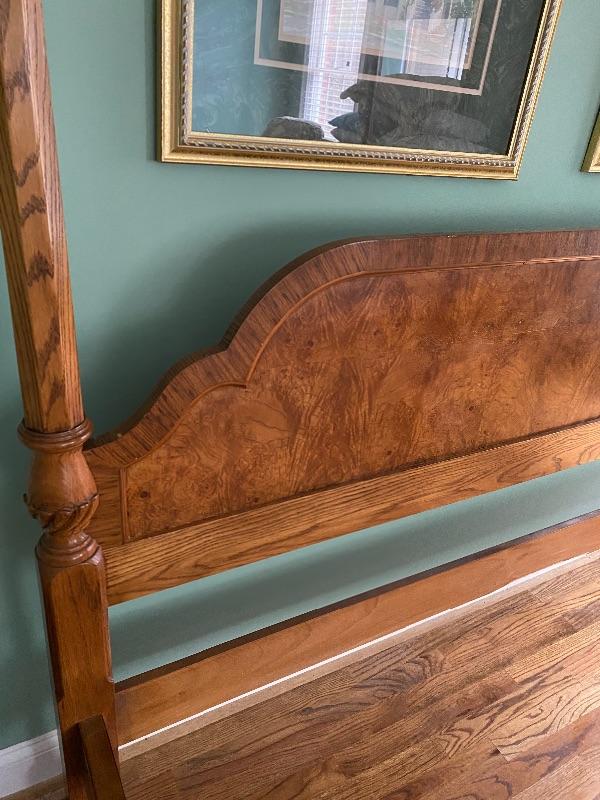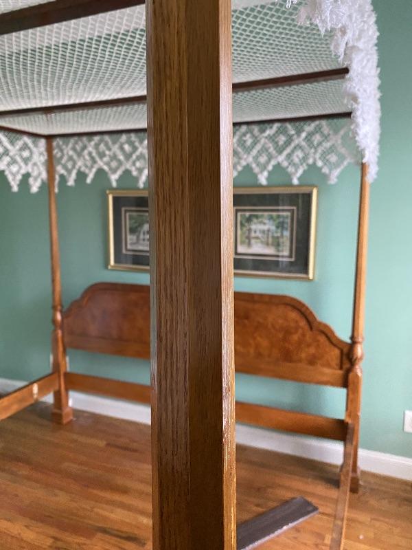 Baker Furniture Pencil Post Canopy bed King Some veneer loss at top edge see pics