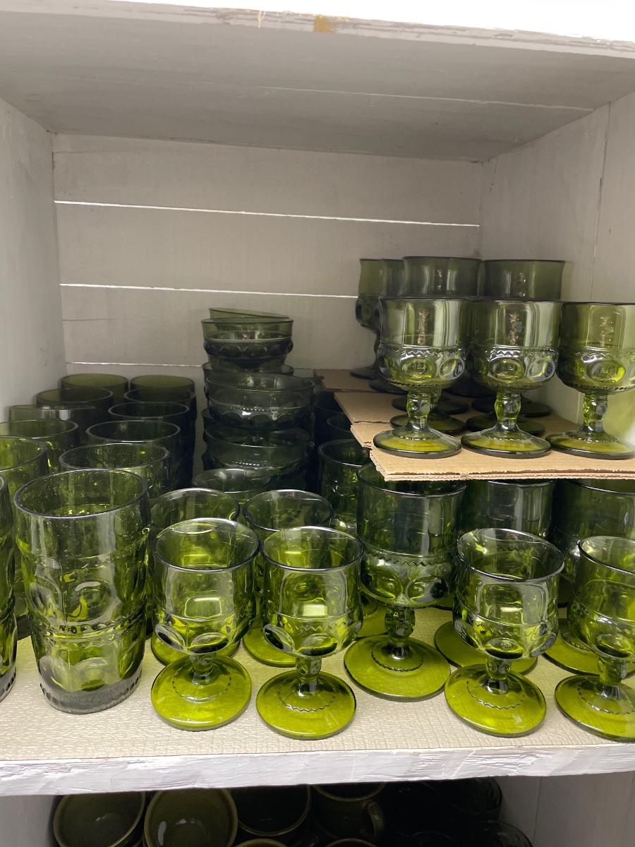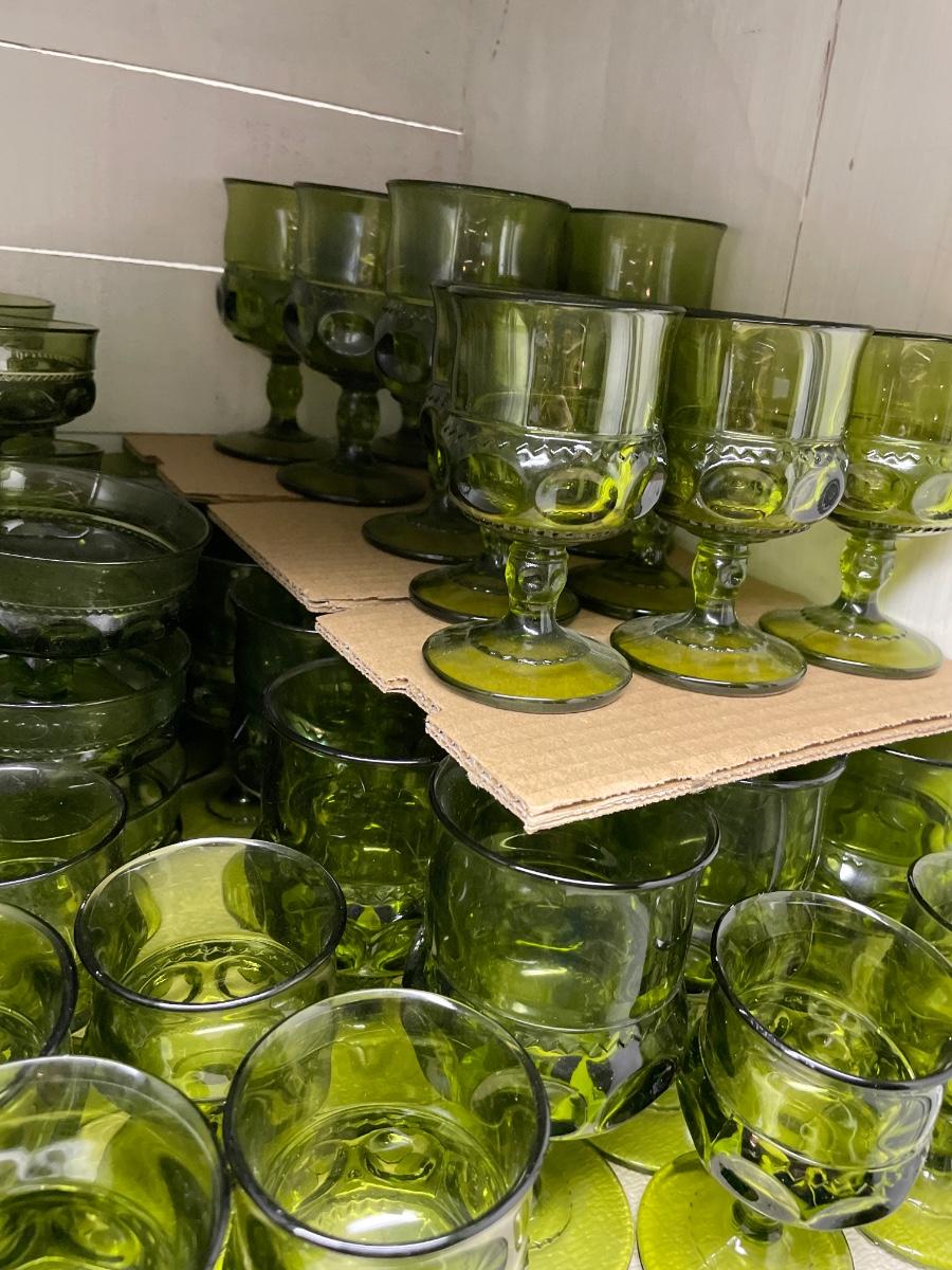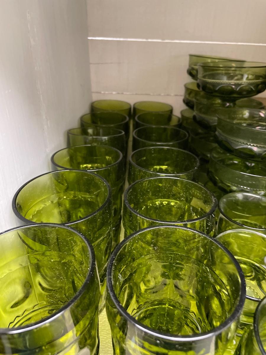 Kings Crown Indiana Glass Green Thumbprint glassware