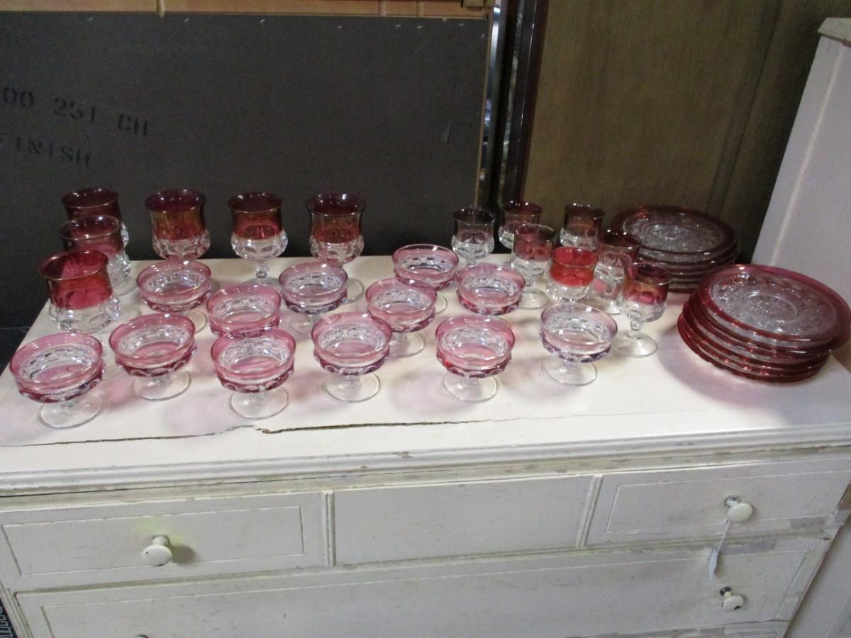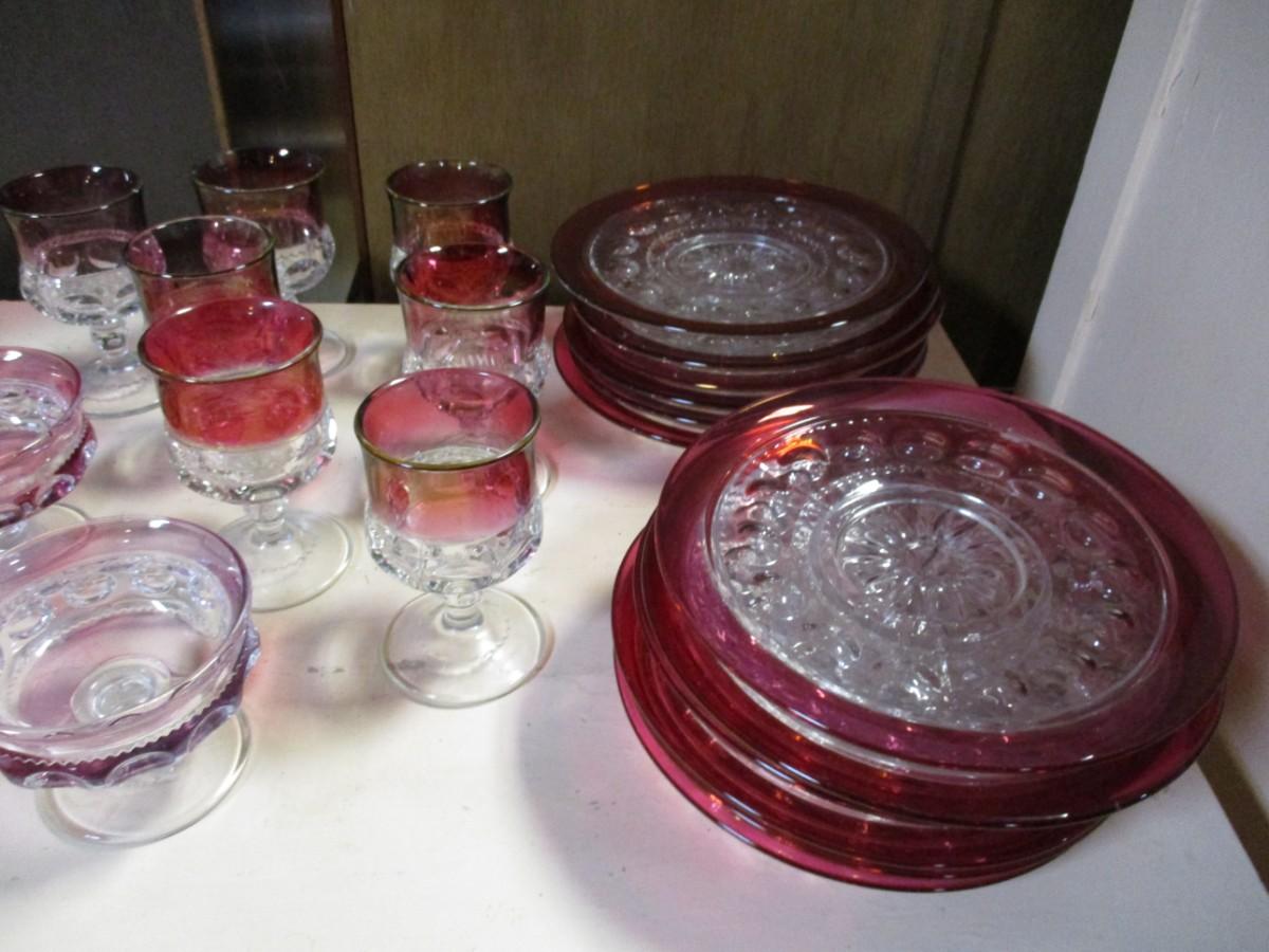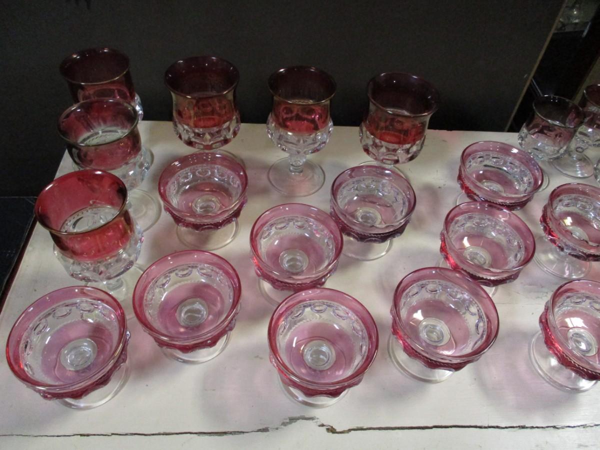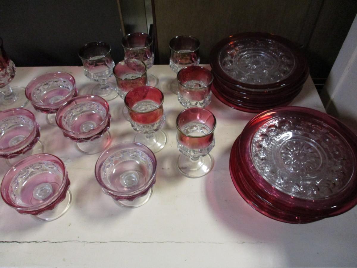 Kings Crown Thumbprint Ruby Glasses & Plates