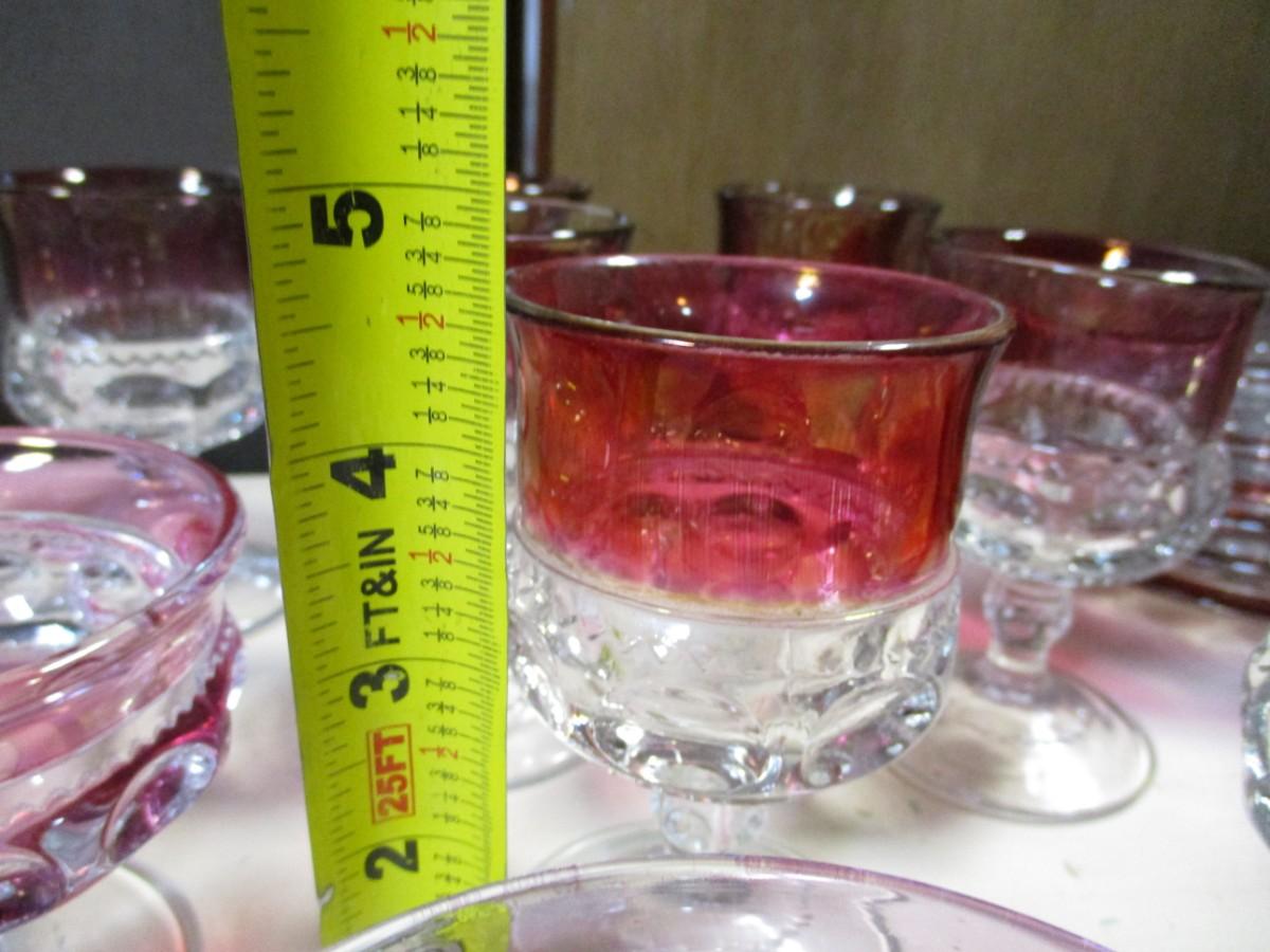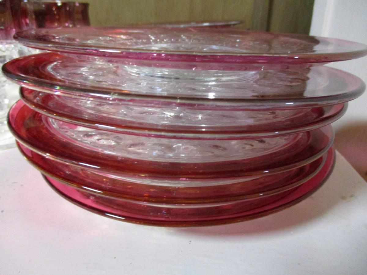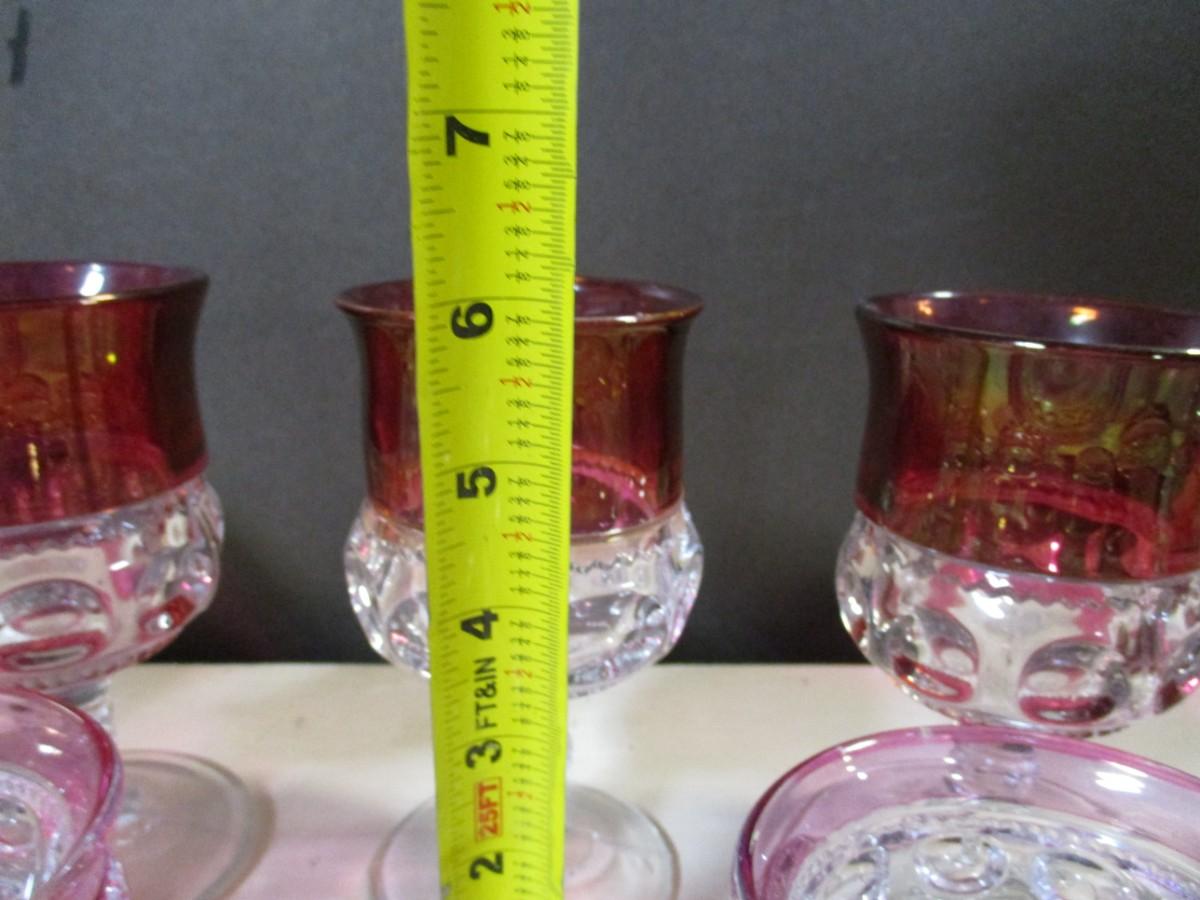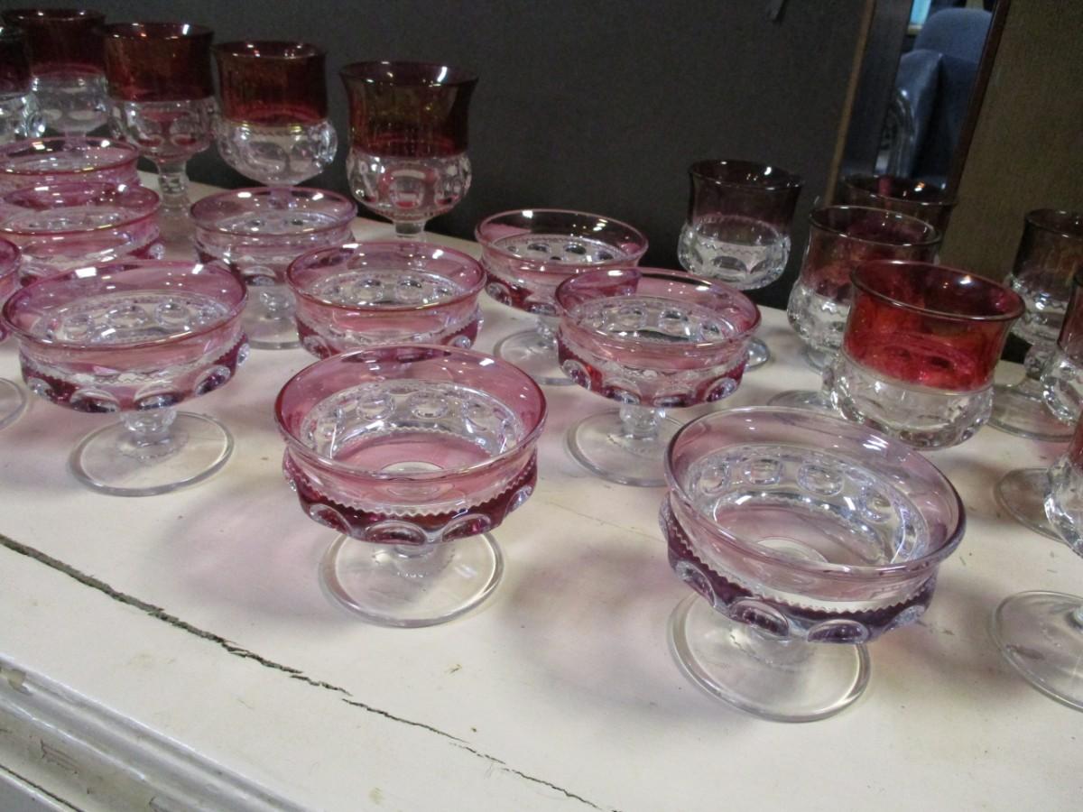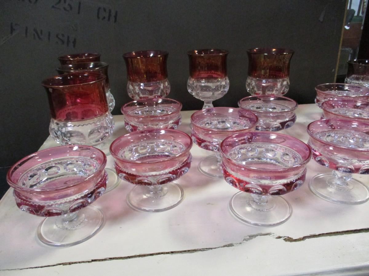 Kings Crown Thumbprint Ruby Glasses & Plates
