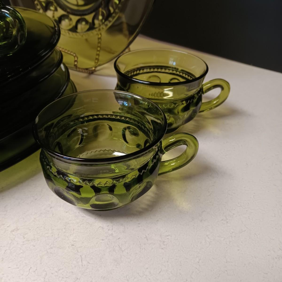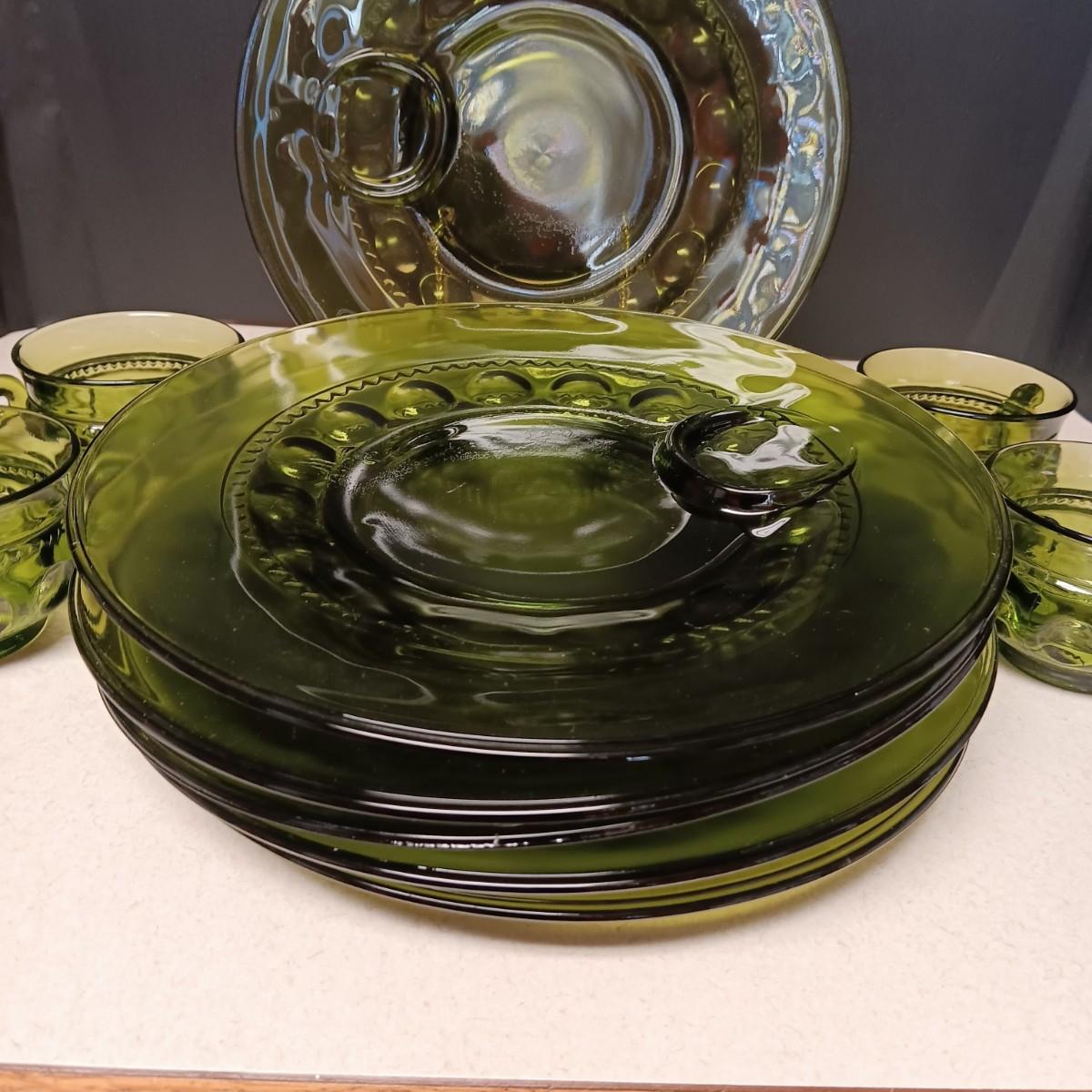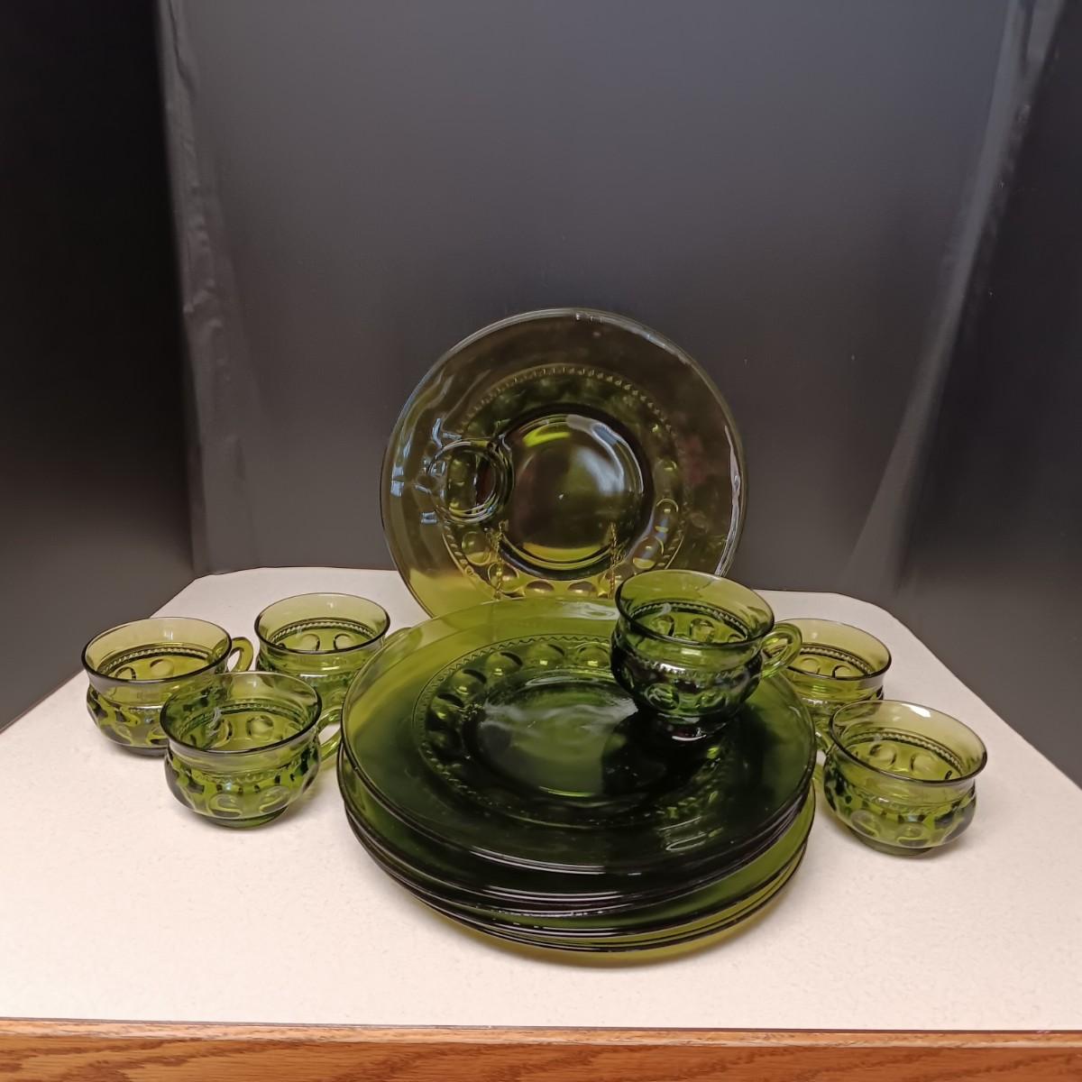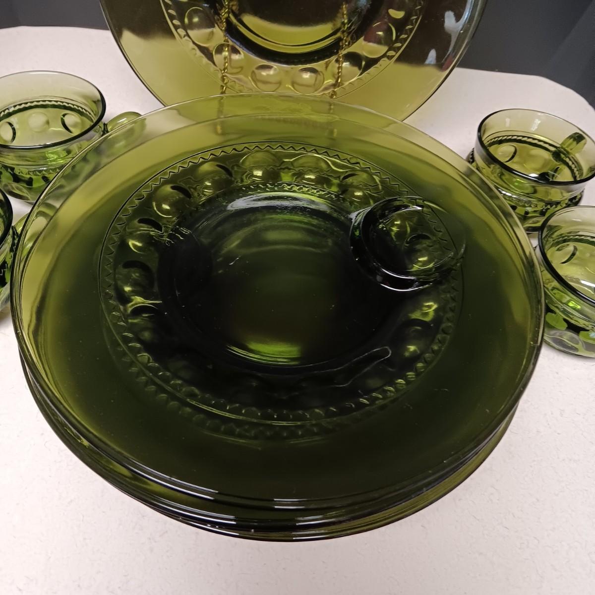 KING'S CROWN THUMBPRINT SNACK SET BY INDIANA GLASS CO