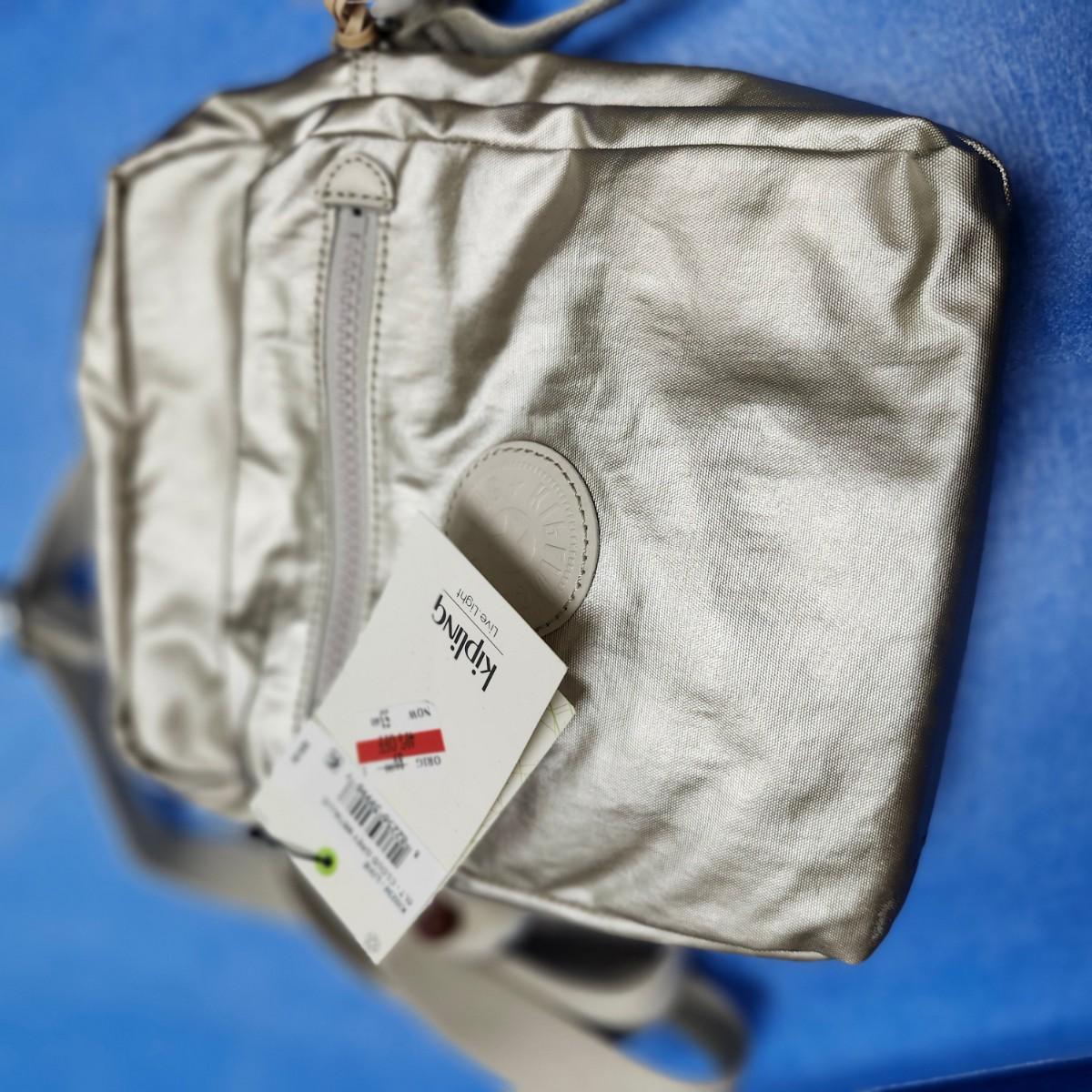 Grey metallic cross body bag. NEW 9 inches by 10 inches