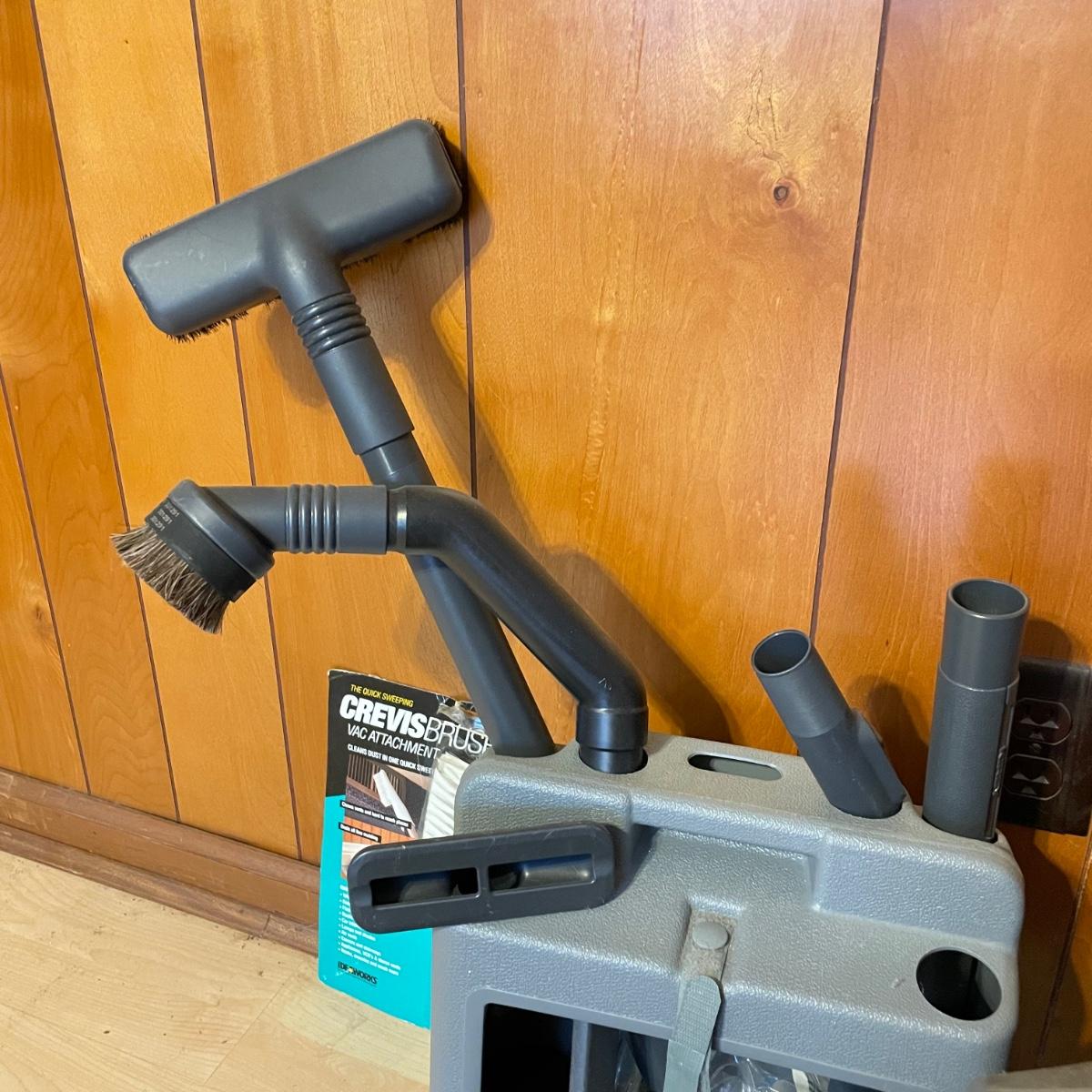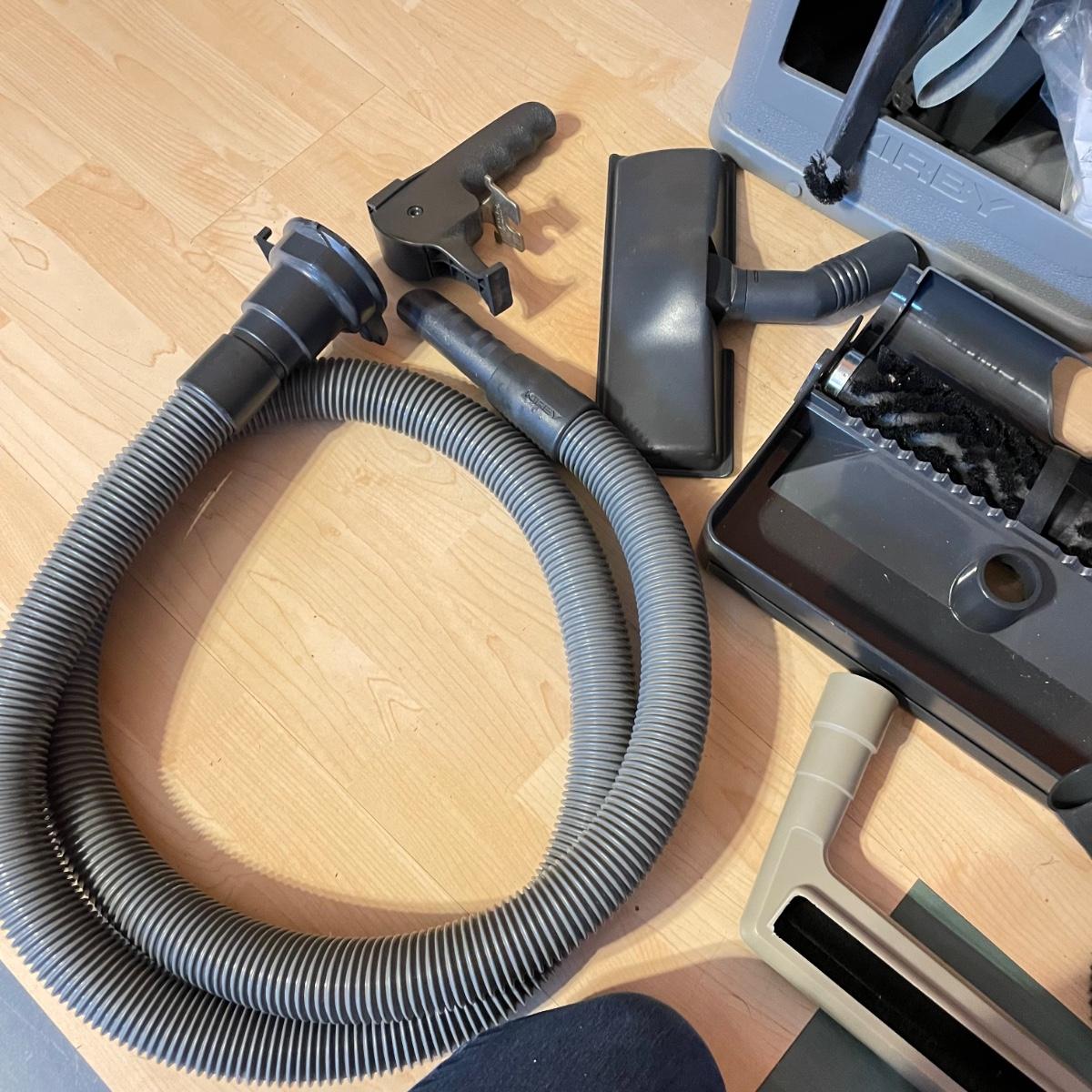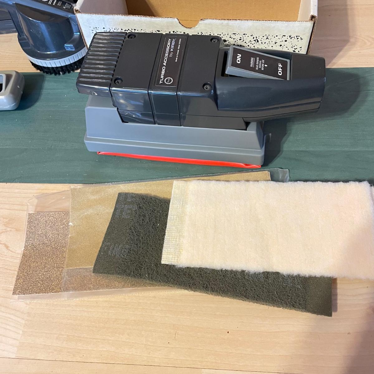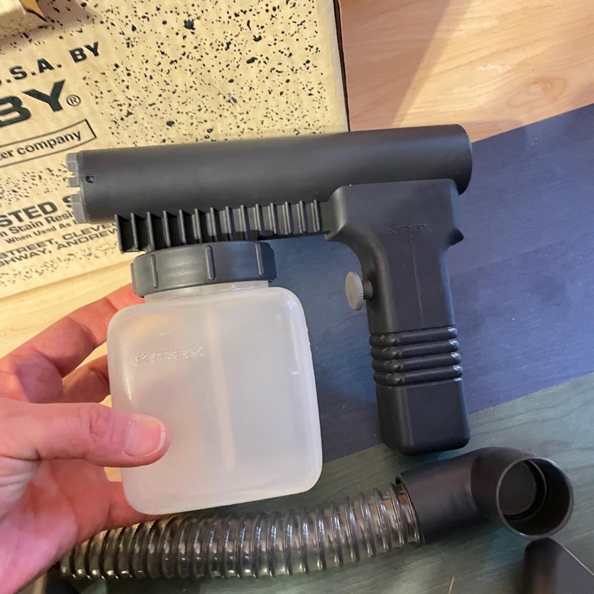 Nice lot of Kirby vacuum attachments. Lot features shampoo system attachments, the reservoir appears to have some minor scuffs on the outside, but not used or very well cleaned on the inside. Lot includes multiple brushes, most appear only slightly used or not used at all. Two hoses, a variety of over 20 attachments including the “Over & Up” and the ceiling fan blade cleaner, one Sentria owner’s manual, one unpackaged Micron Magic System vac bag and an opened crevis vac attachment from Ideaworks. See images. Local pick up only.