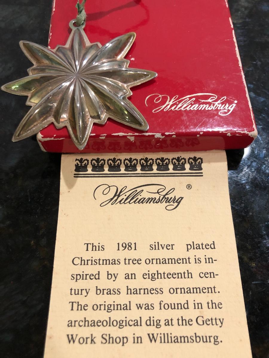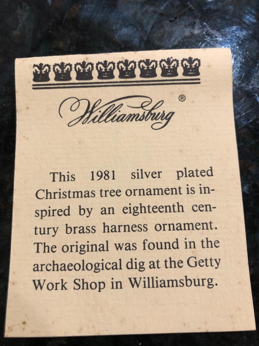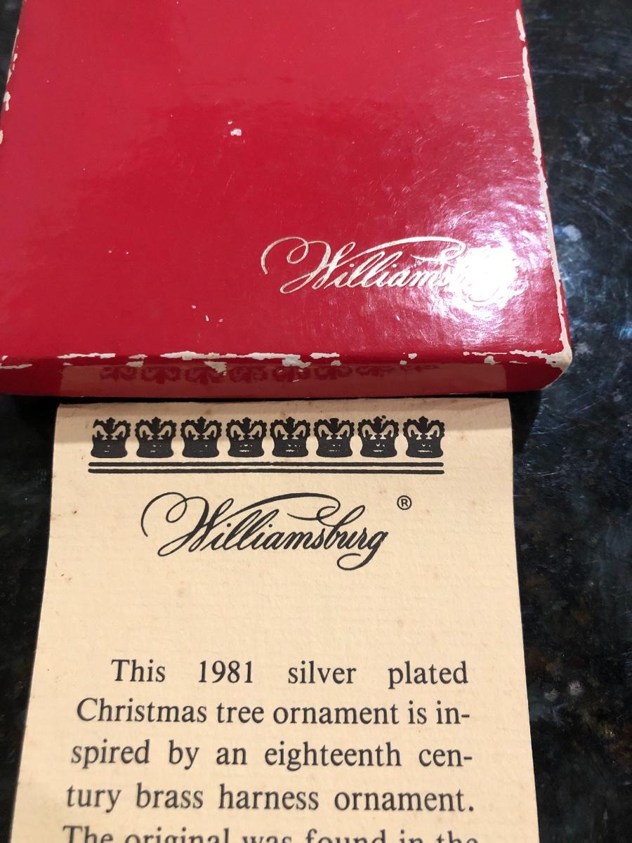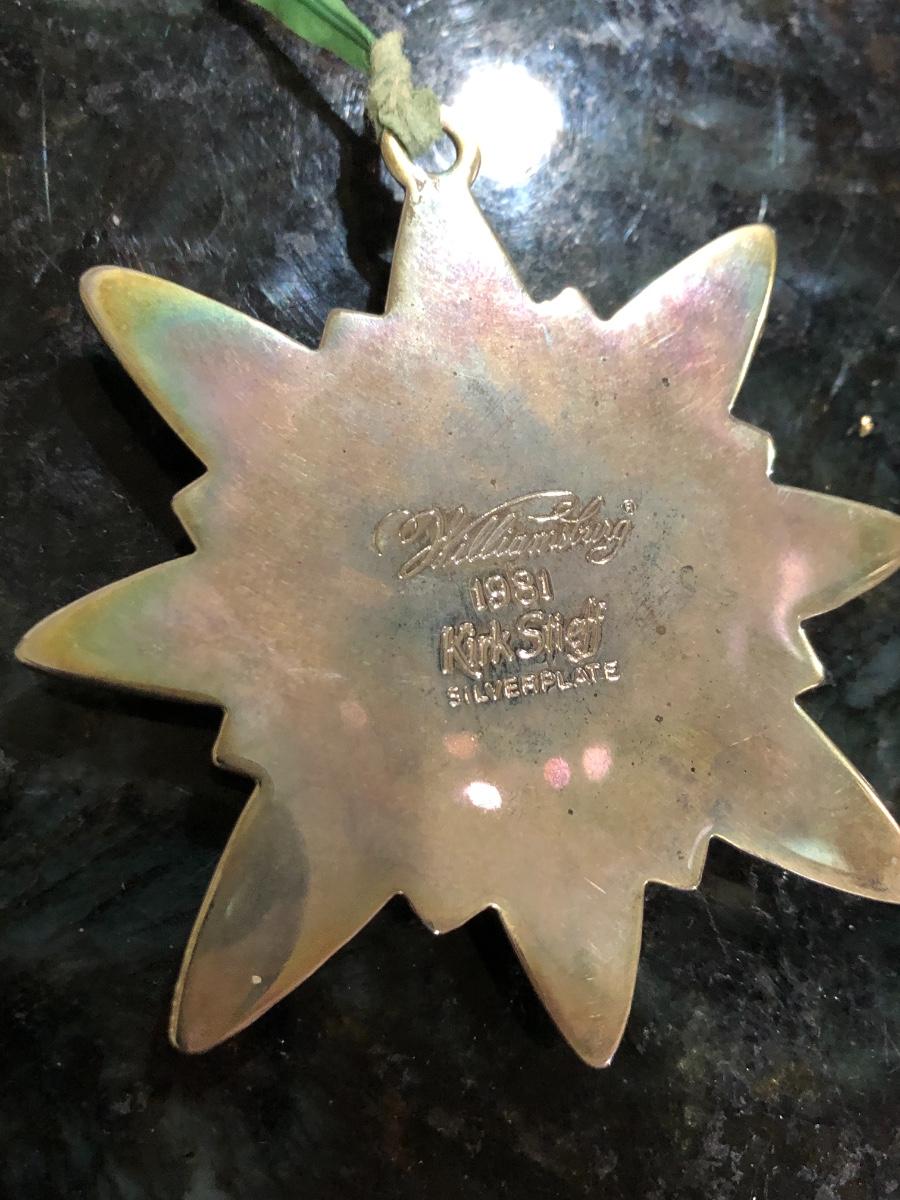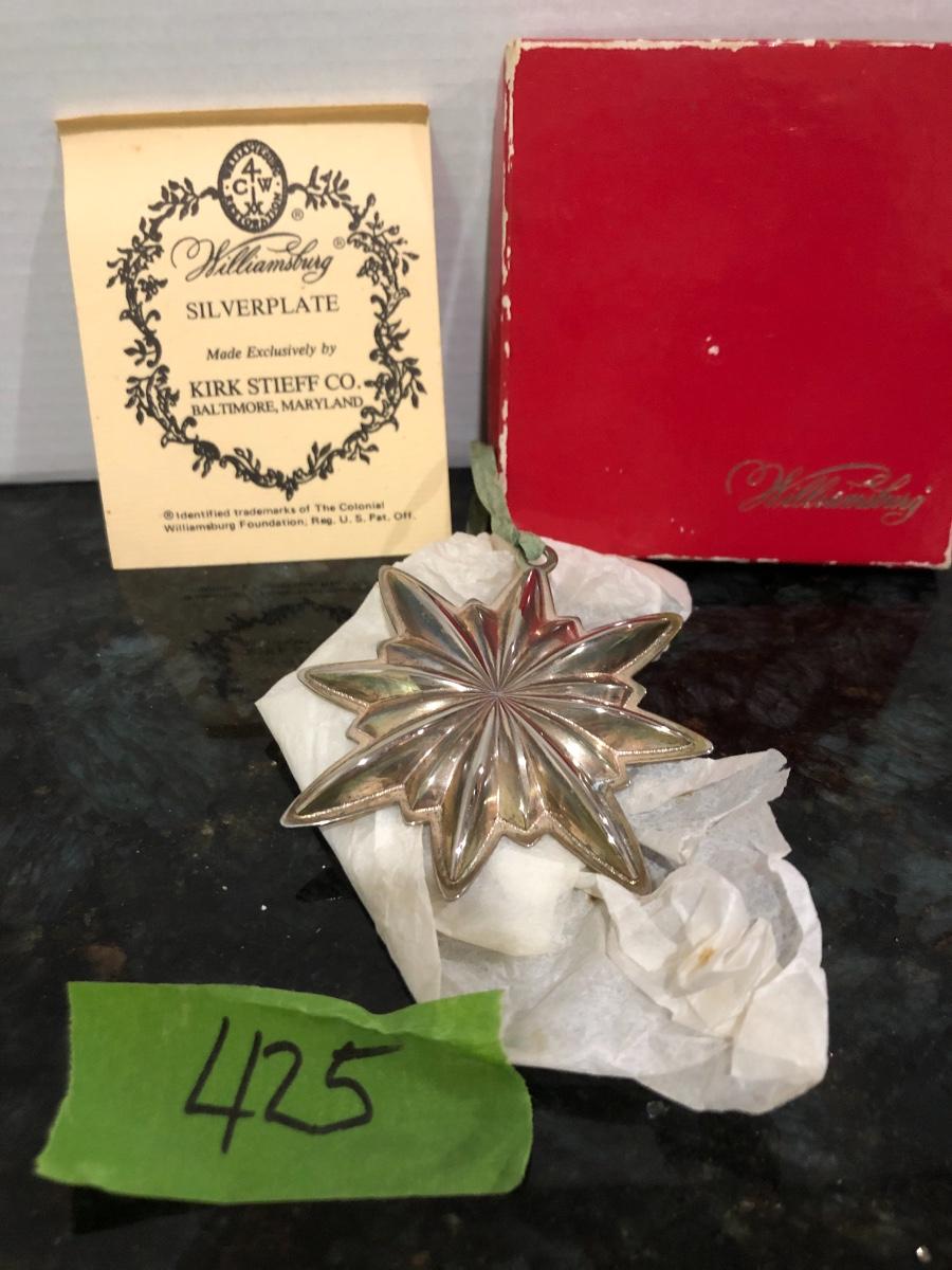 KIRK STIEFF CO. Williamsburg Silver Plate 1981 Ornament -Lot 425