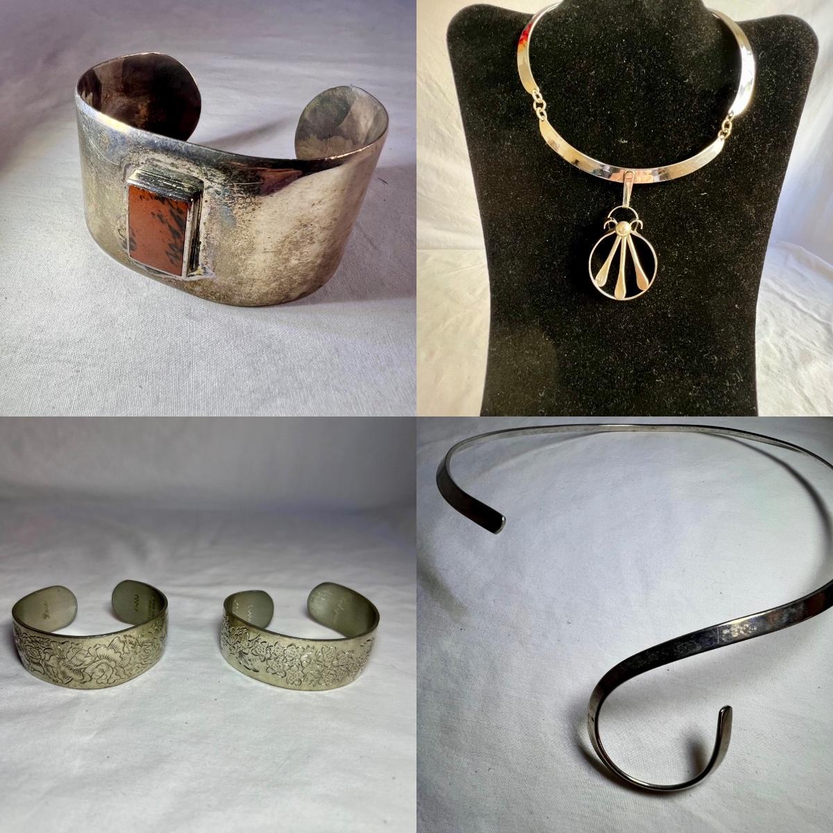 Kirk Stieff Pewter Plus Silver Cuff Bracelets & Collar Necklaces (P-RG)