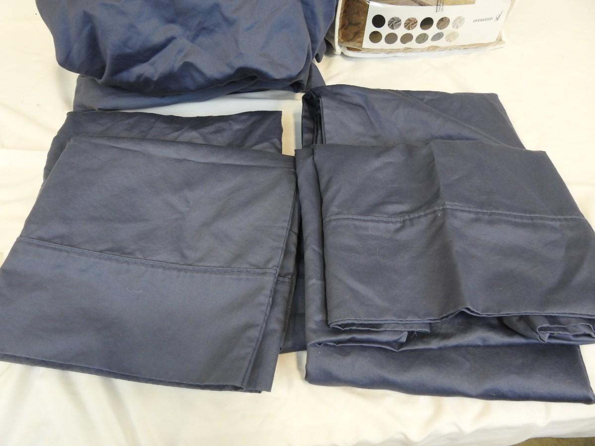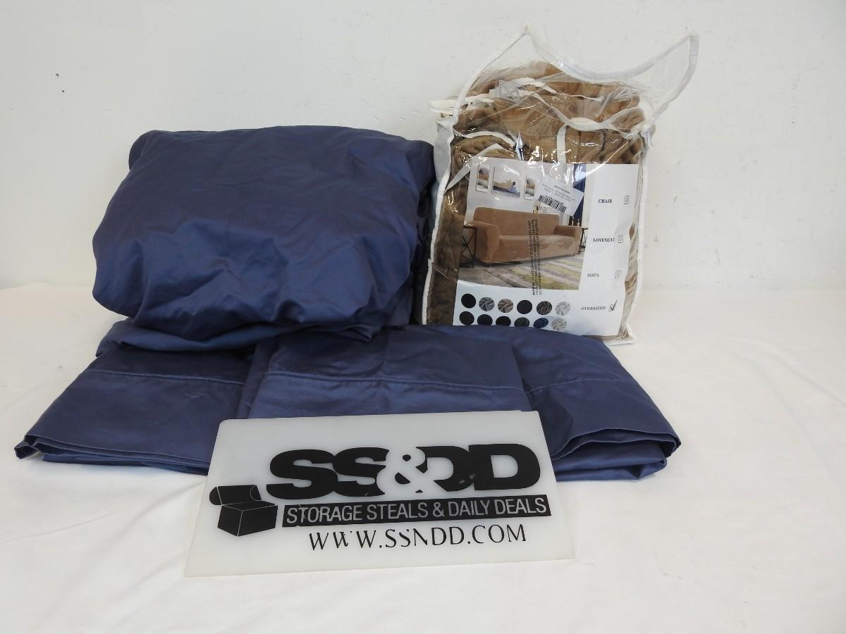 Kirkland Sheet Set W/4 Pillow Cases-King Size-Navy Blue & Xunuu Stretch Xl Sofa Cover-Brown-Soft-1 Tie is Torn-Used