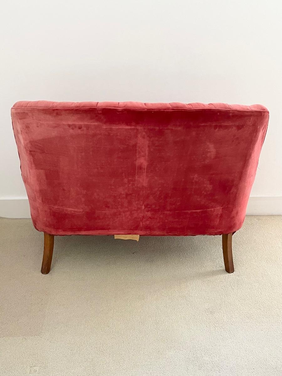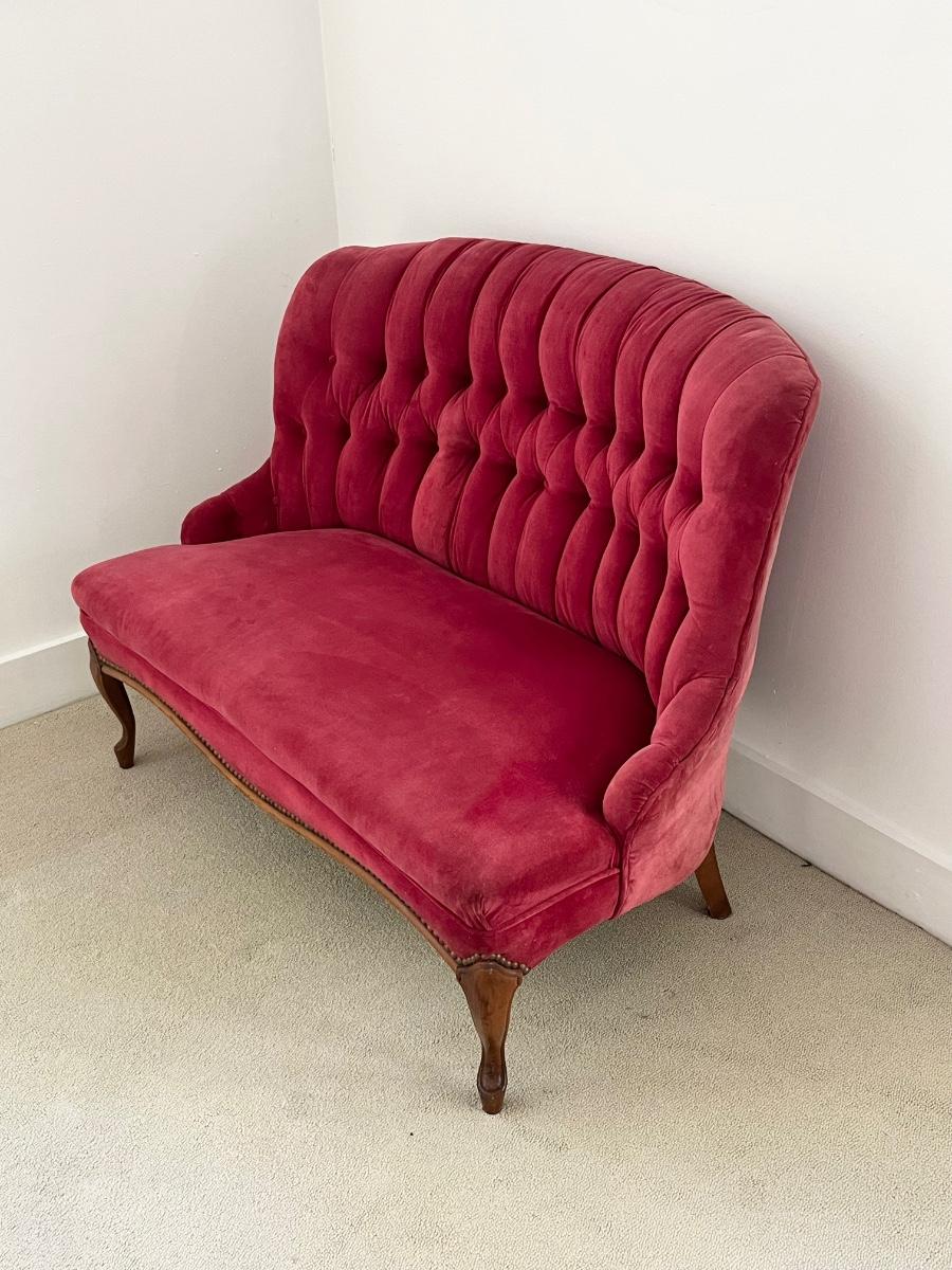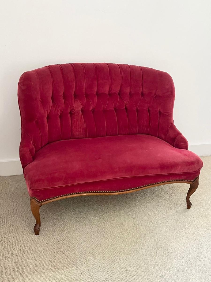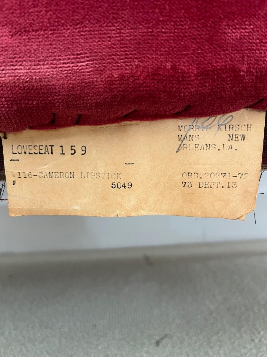 KIRSCHMANS ~ Vtg.  Red Velvet Loveseat ~ With Queen Anne Legs & Nailhead Trim