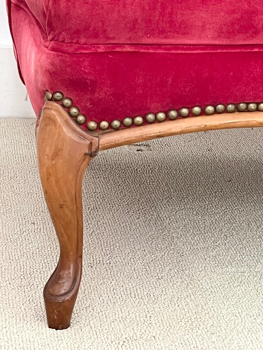 KIRSCHMANS ~ Vtg. Red Velvet Loveseat ~ With Queen Anne Legs & Nailhead Trim