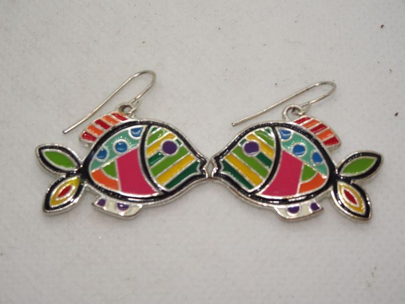 Kissing Fish, Rainbow Fish Dangle Earrings