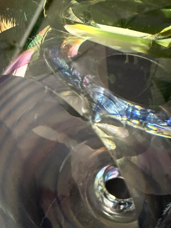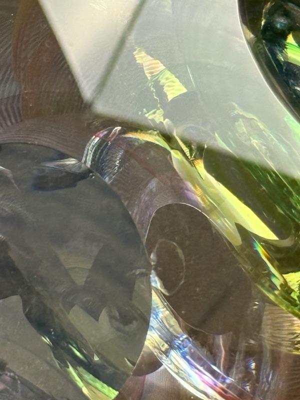 In good condition with few scratches and a few slight chips on the inner edge circle - we try to show them as best we can. We see 2 tiny ones and one that is a bit larger, smaller than a dime (all are hard to see).