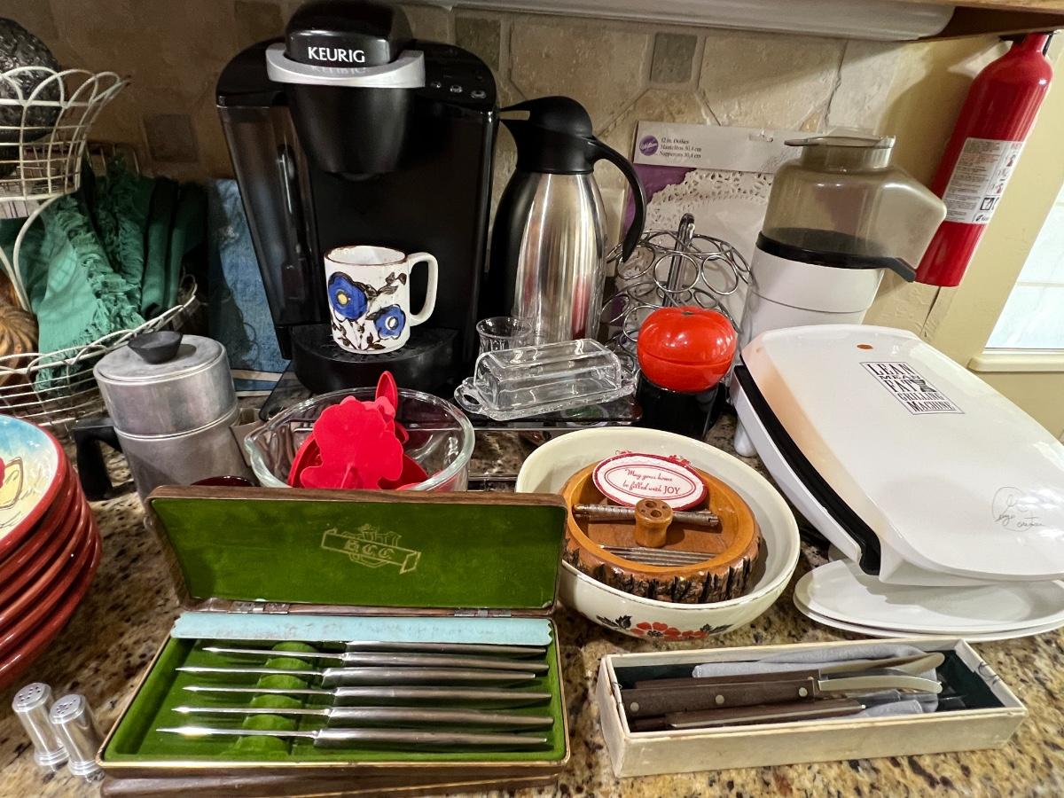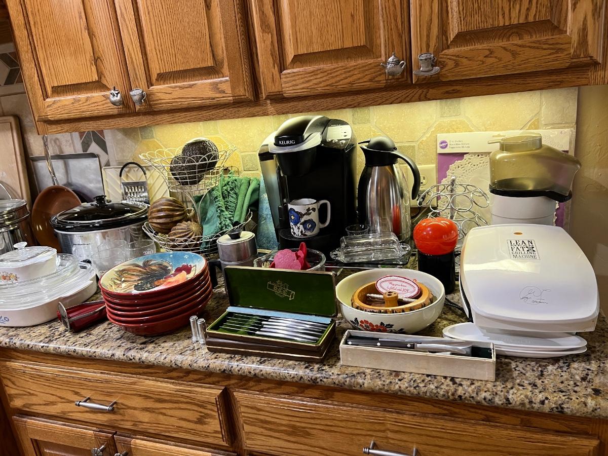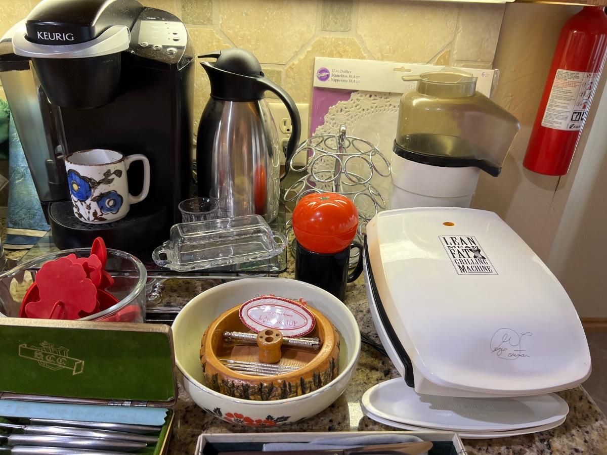 This Lot Covers Multiple.photos and includes small appliances, Keurig, Crockpot, George Forman. It includes everything in the pictures