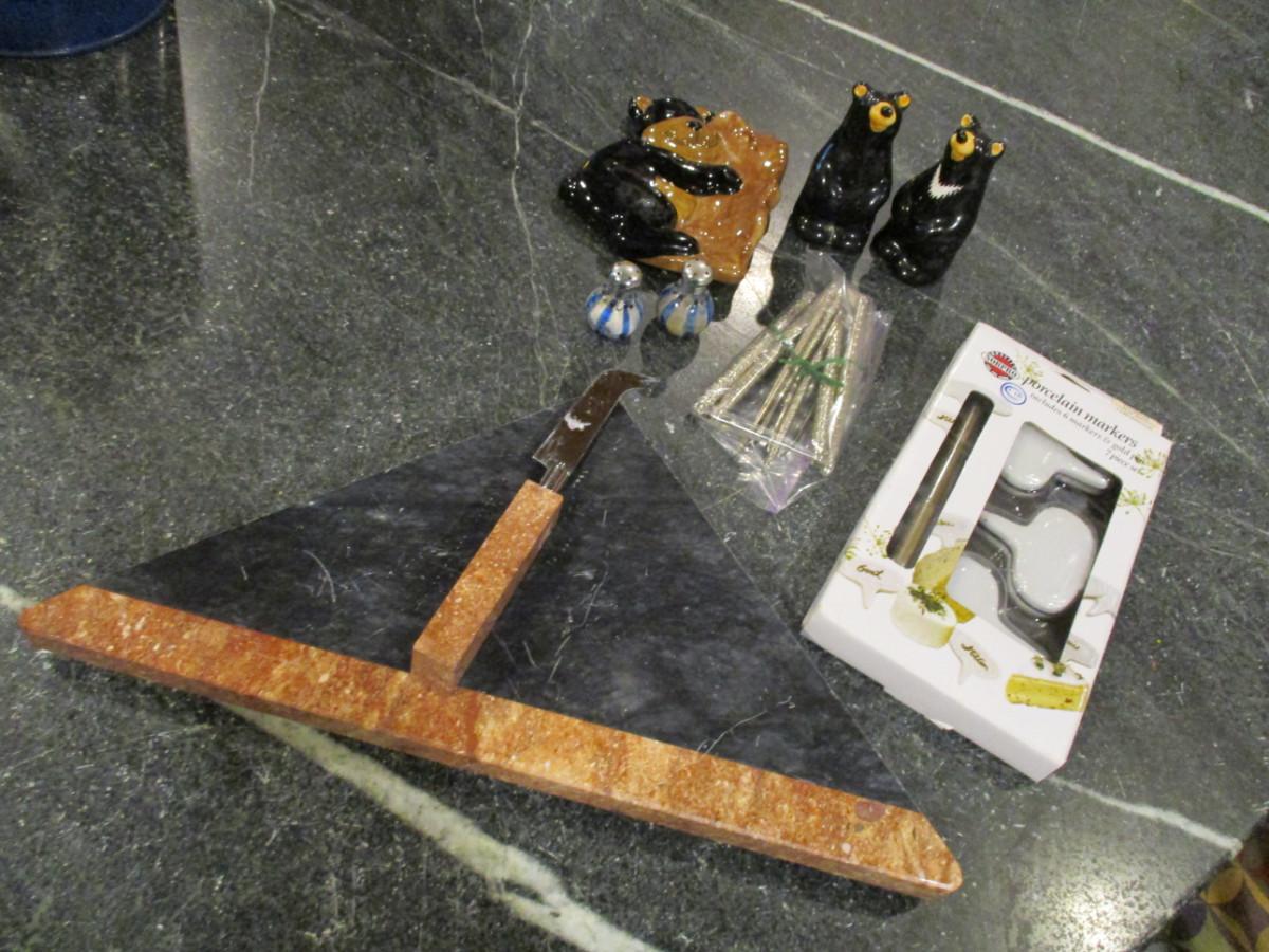 Kitchen Accessories- Cheese Board with Knife, Cheese Markers, Shakers