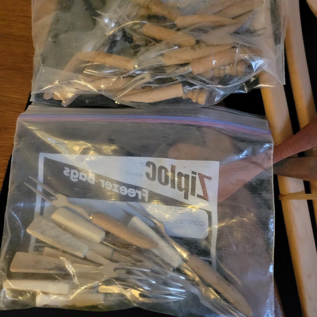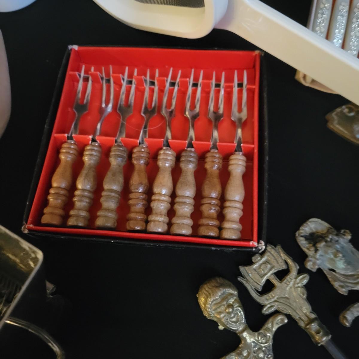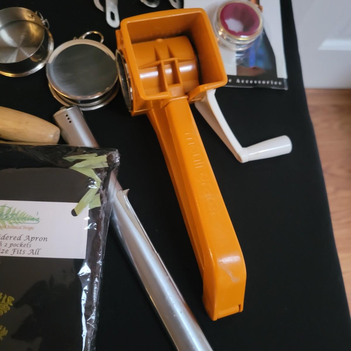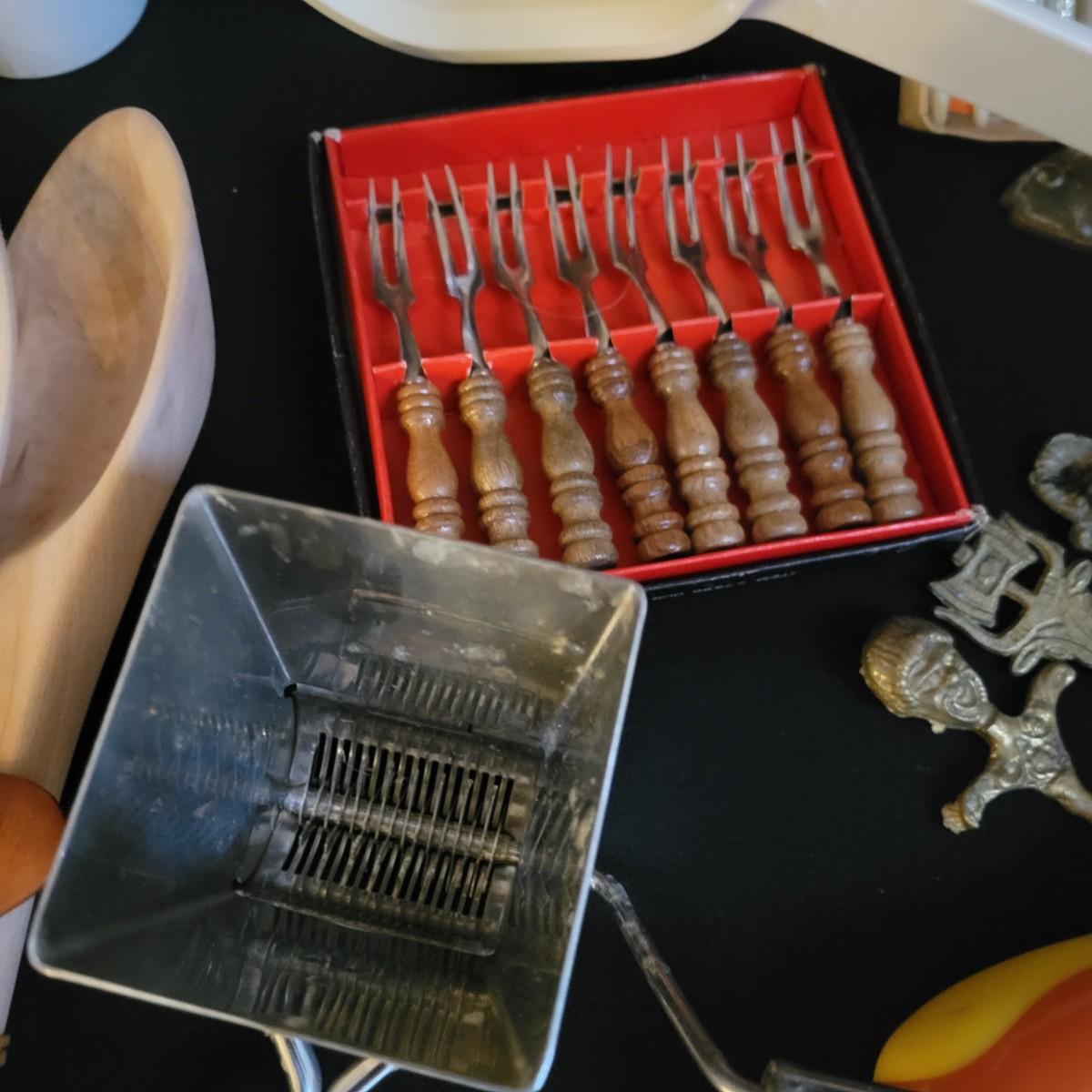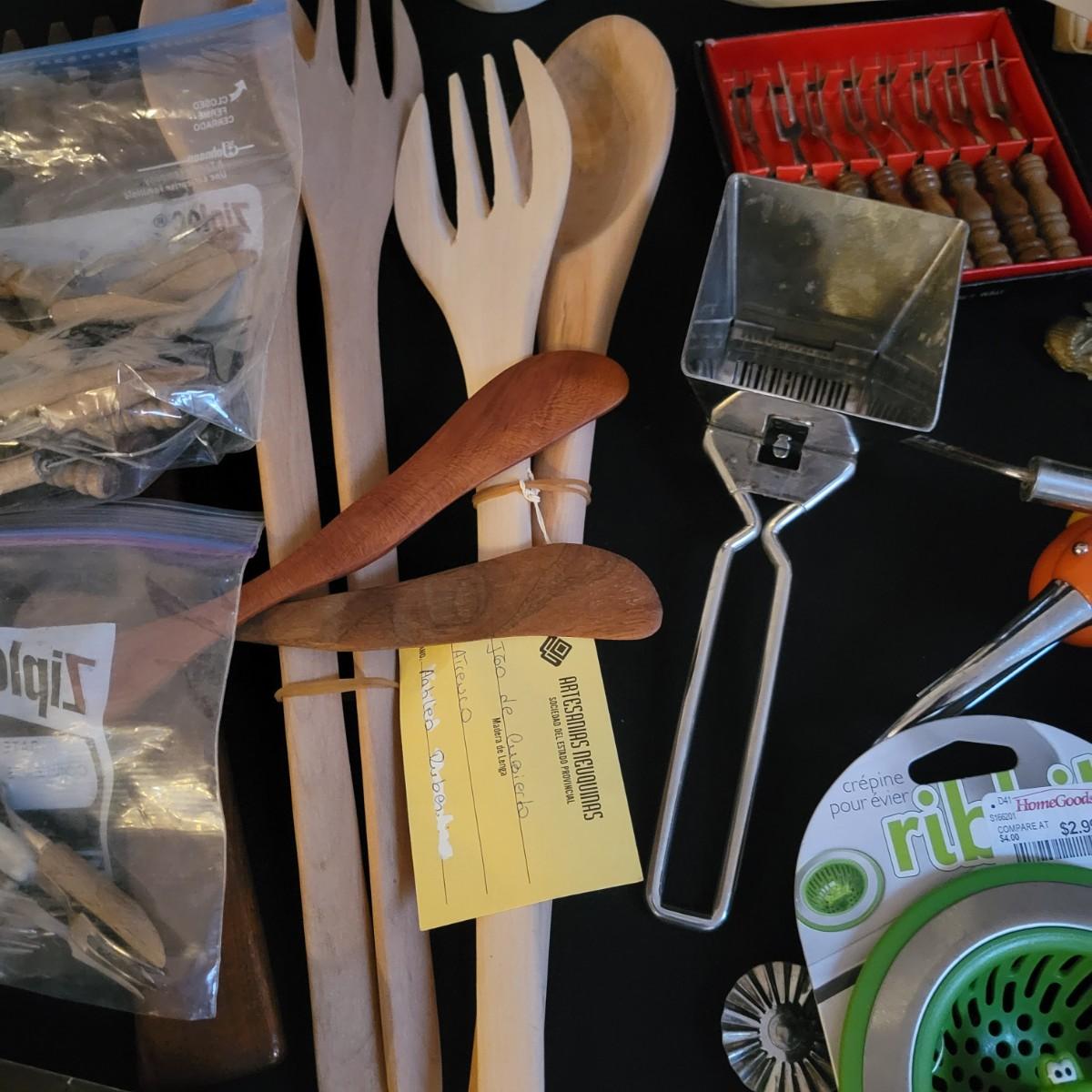 A huge assortment of kitchen accessories that includes aprons, hors dourves forks, wooden utensils, skewers, strainers organizers and so much more. See attached pictures for a full inventory. Local pickup only