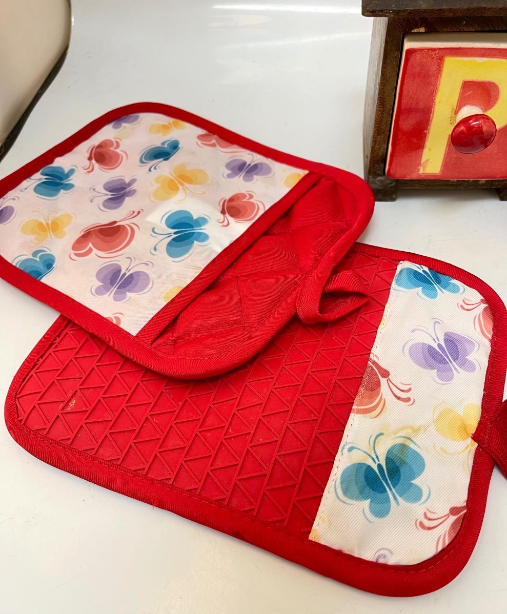 Kitchen accessories lot- spice drawer or tea box plus 4 potholders