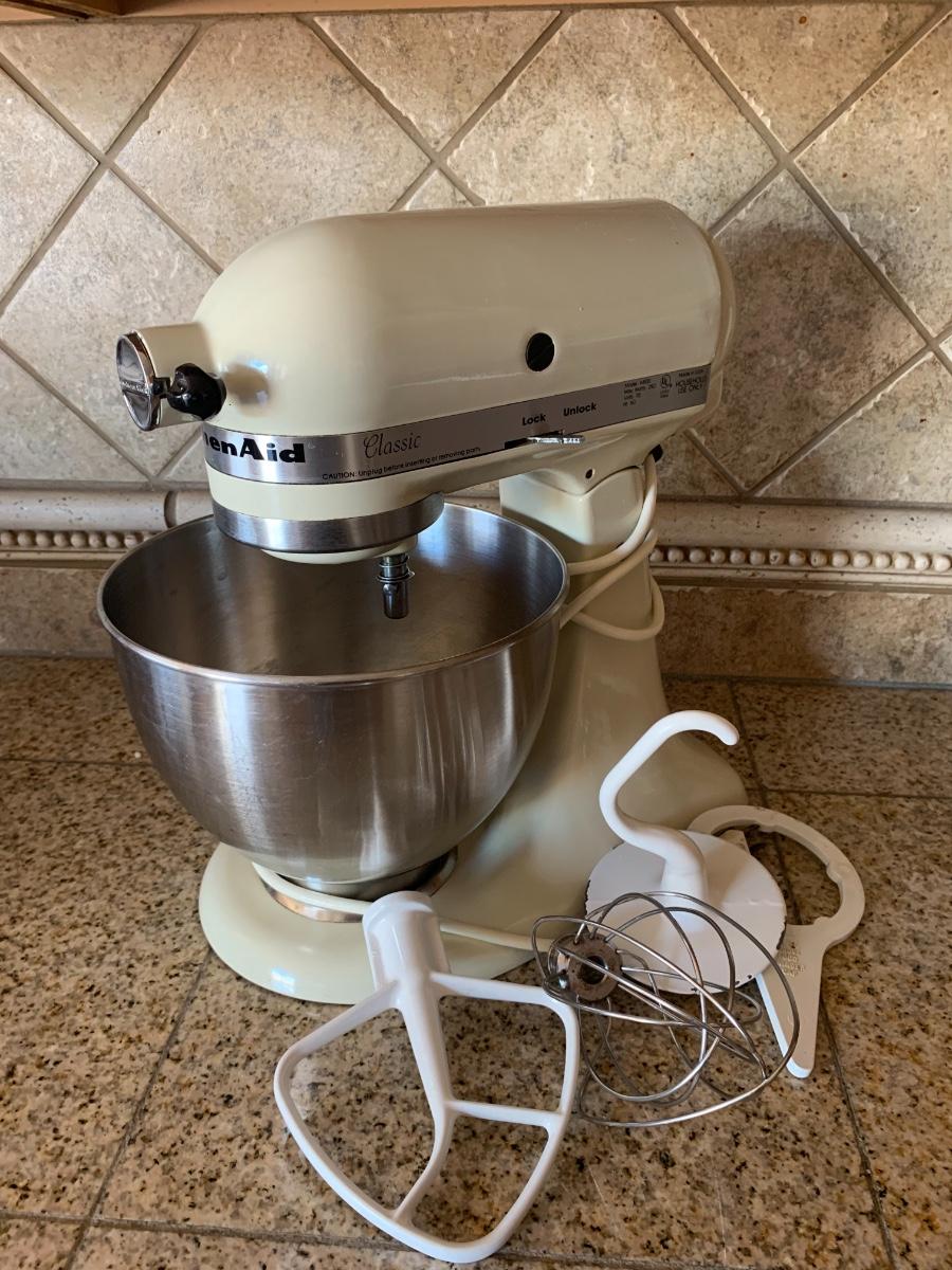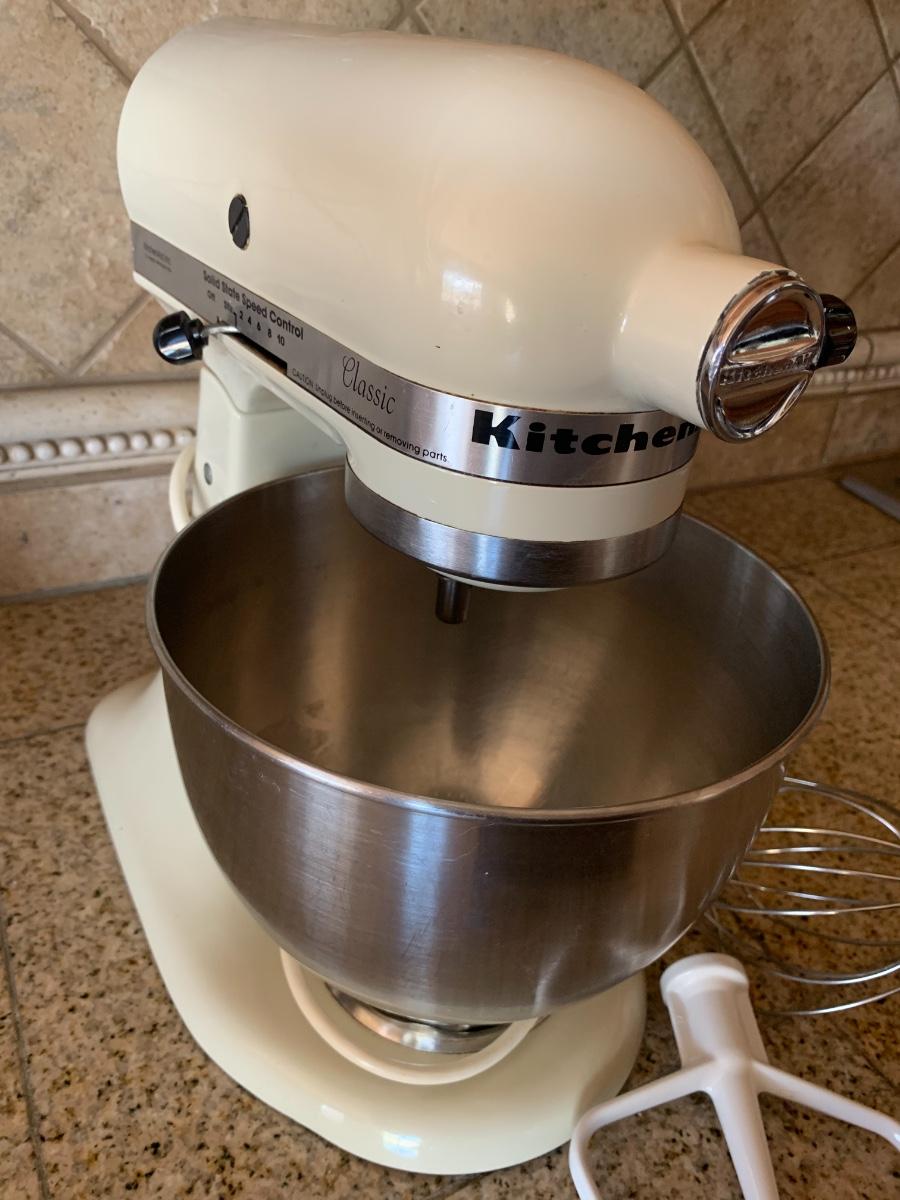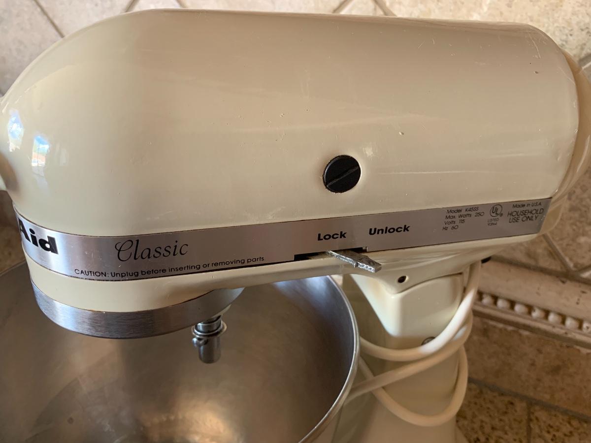 Classic white kitchenaid, missing rubber pull on pull lock but otherwise in good condition