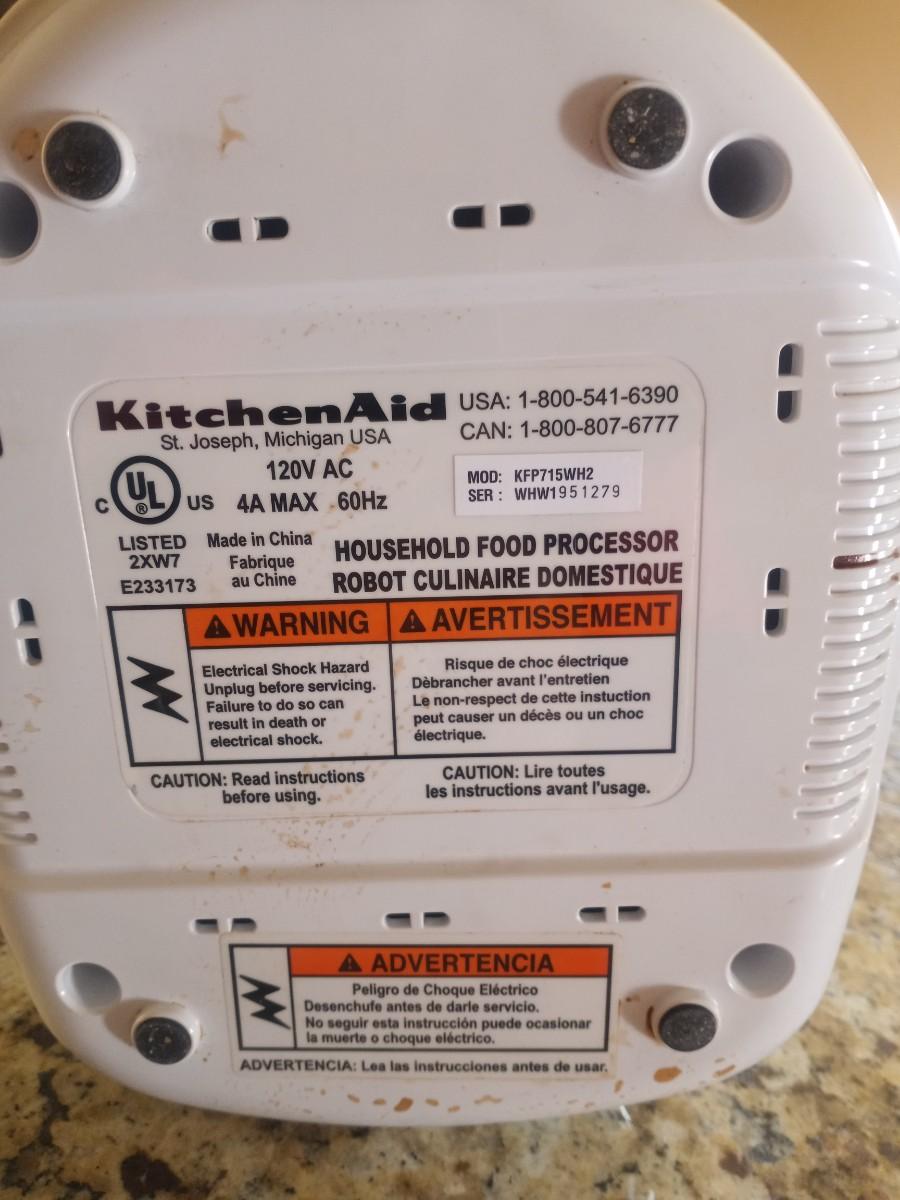 INCLUDES A MANUAL JUICER AND EGG SLICER MODAL #KFP715WH2