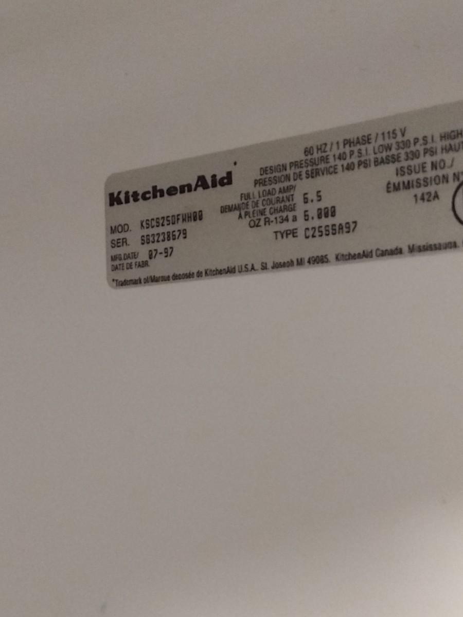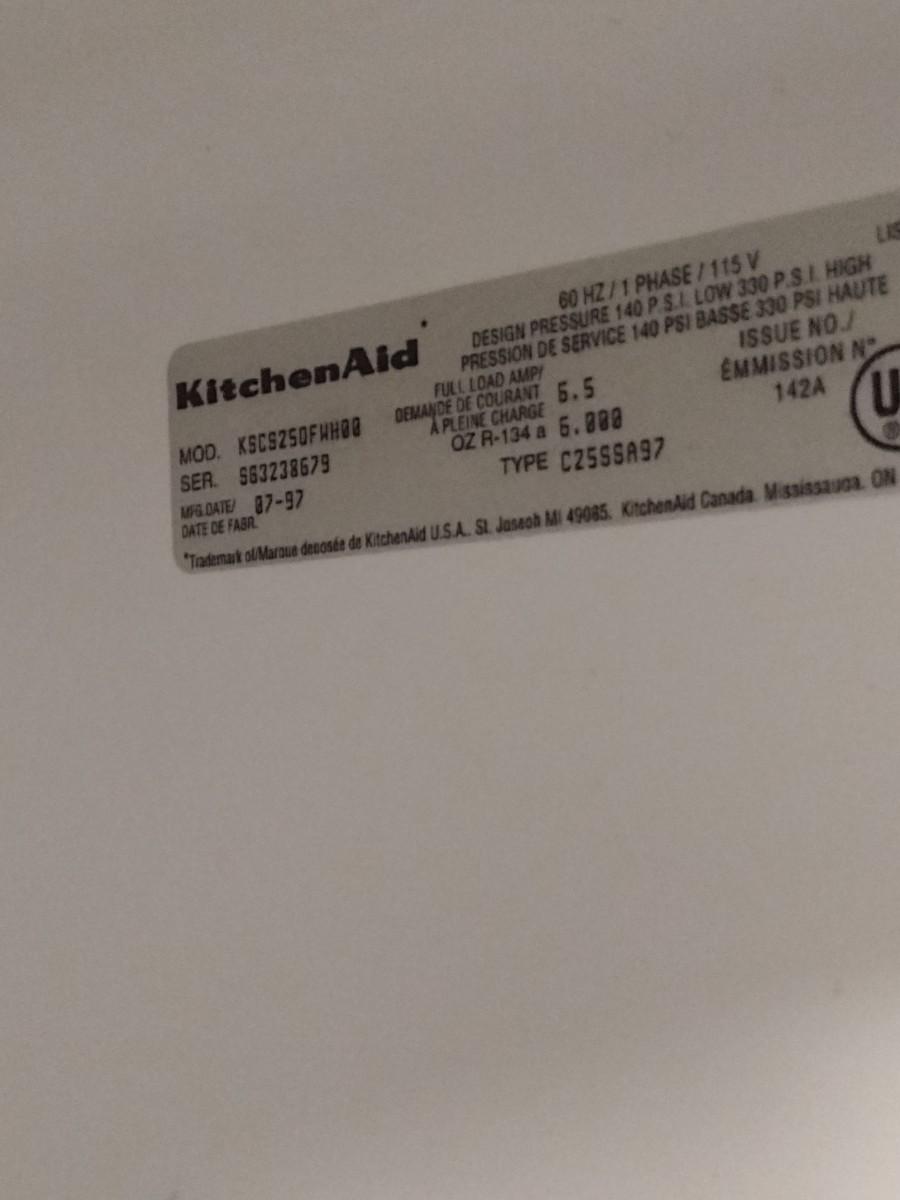 Kitchen Aide Side by Side Refrigerator Freezer in Working Condition