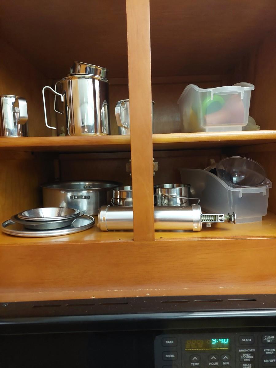 You get everything in the pictures. A great selection of all different kitchen items. Perfect for someone just starting out on their own.