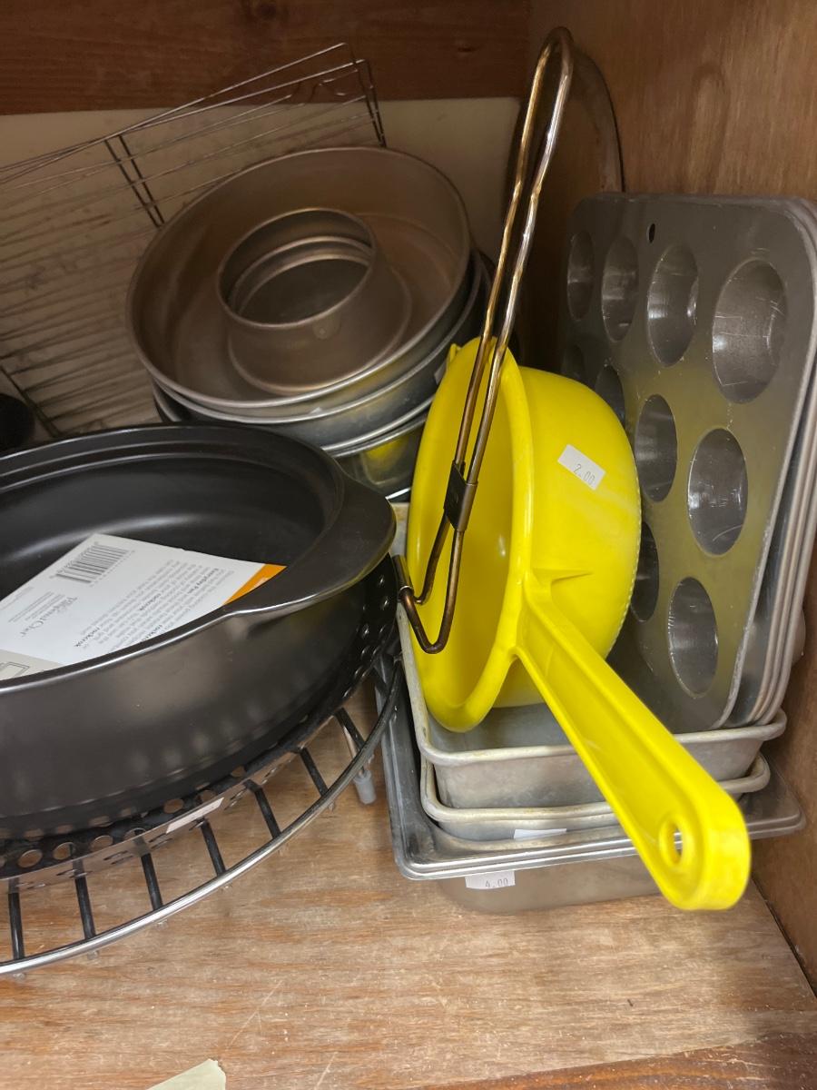 Skillets cake pans cutting boards cooling racks, mini muffin pans