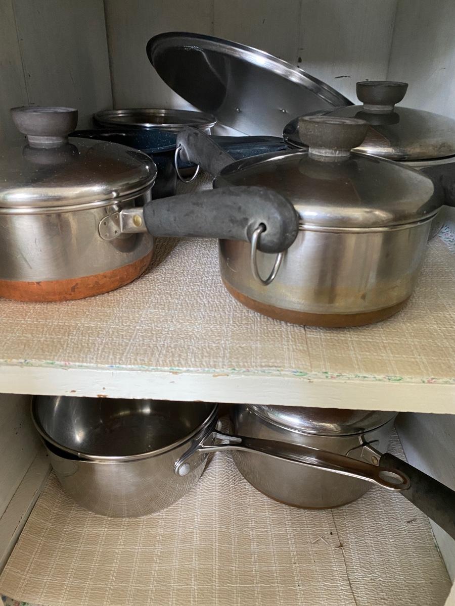 Kitchen Cabinet Lot Includes Pots As Pictured