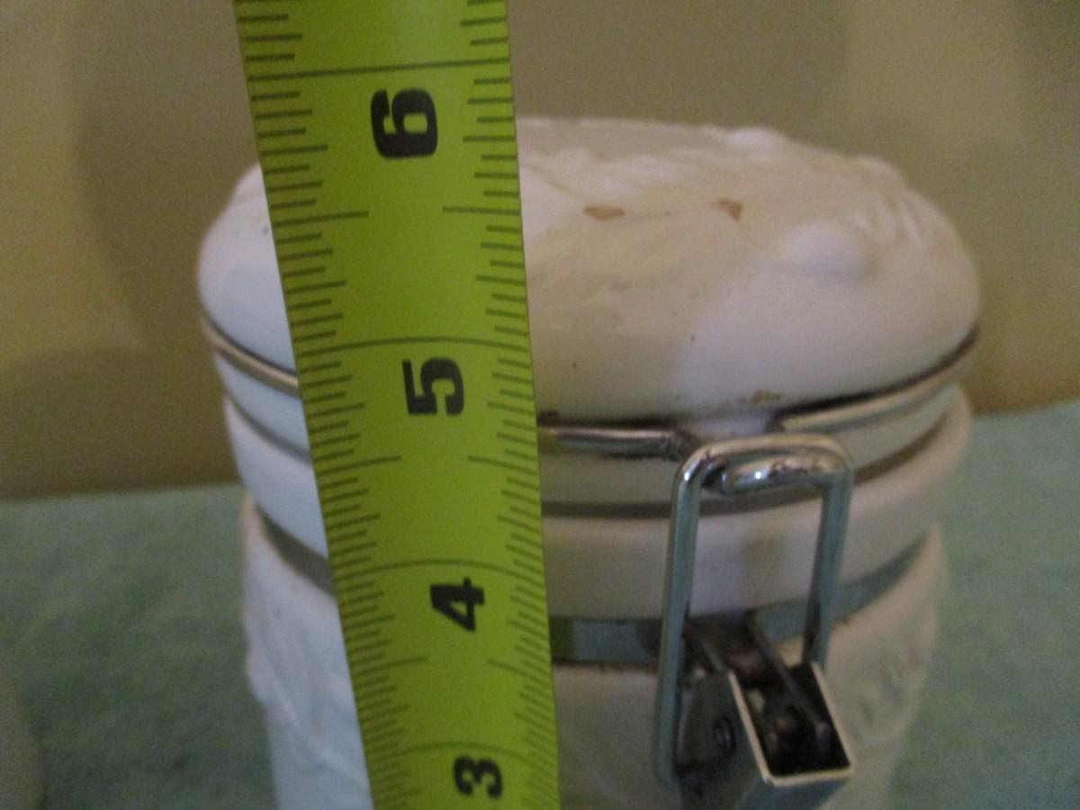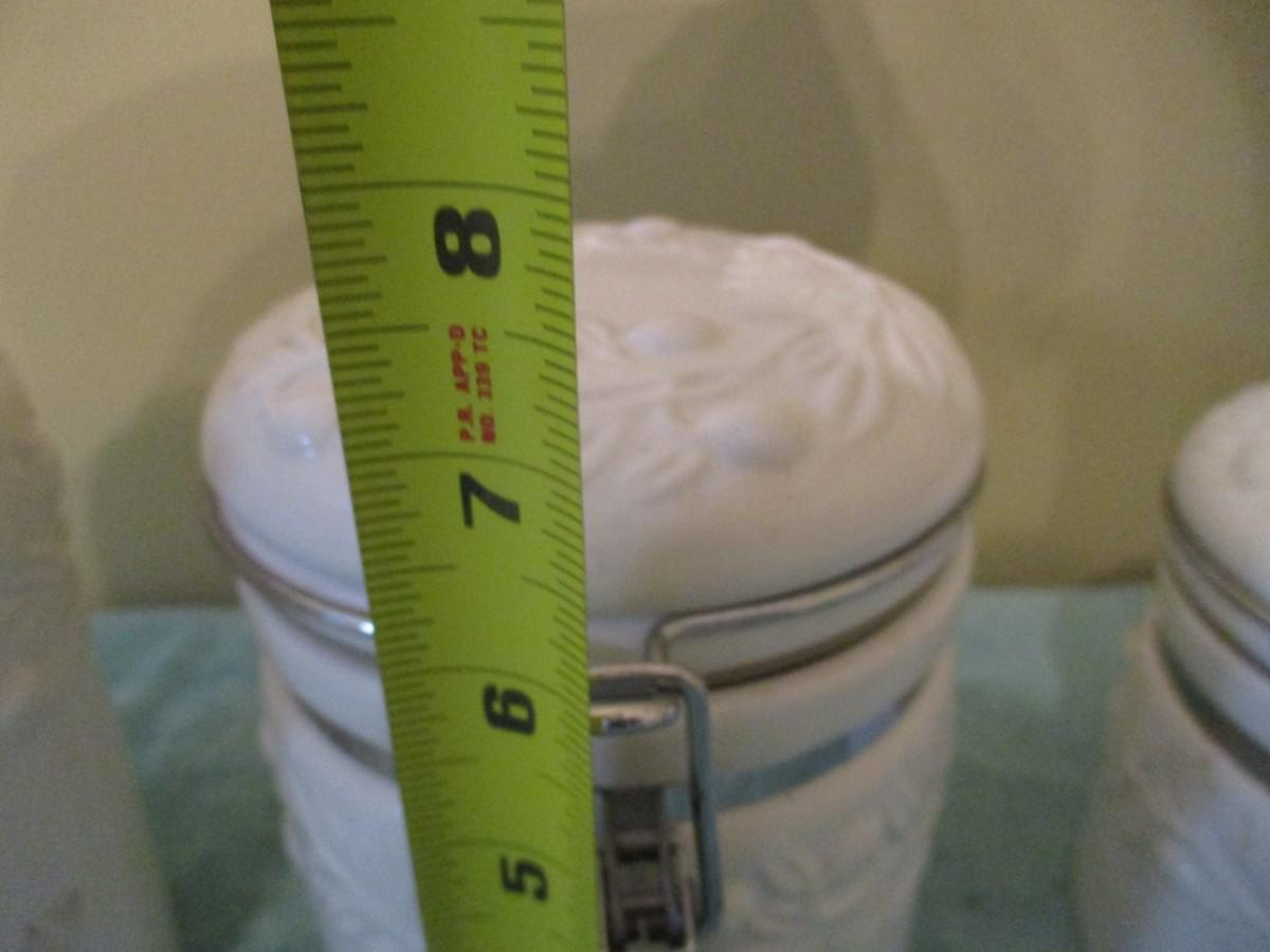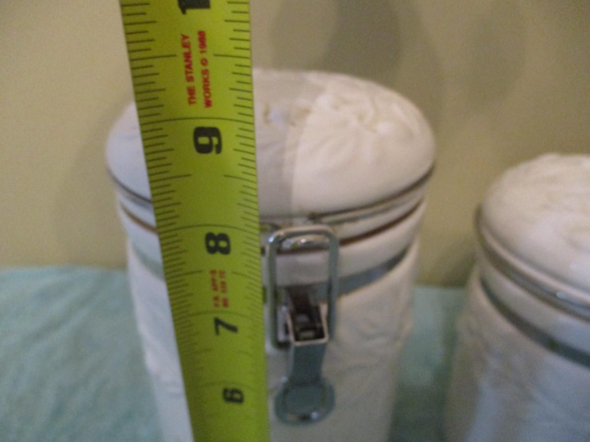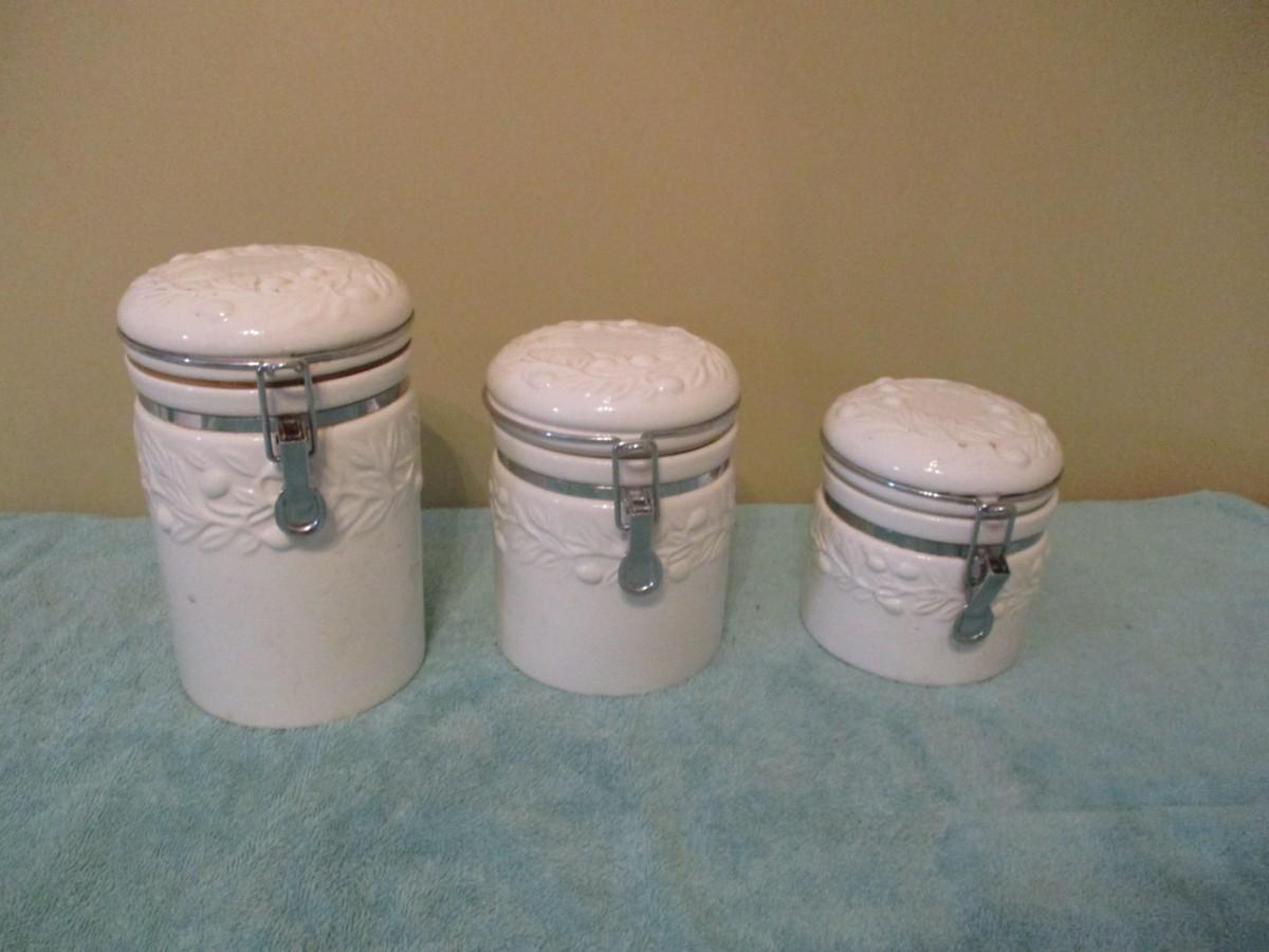 Set of Three Ceramic Kitchen Canisters with Bale Top Lids
