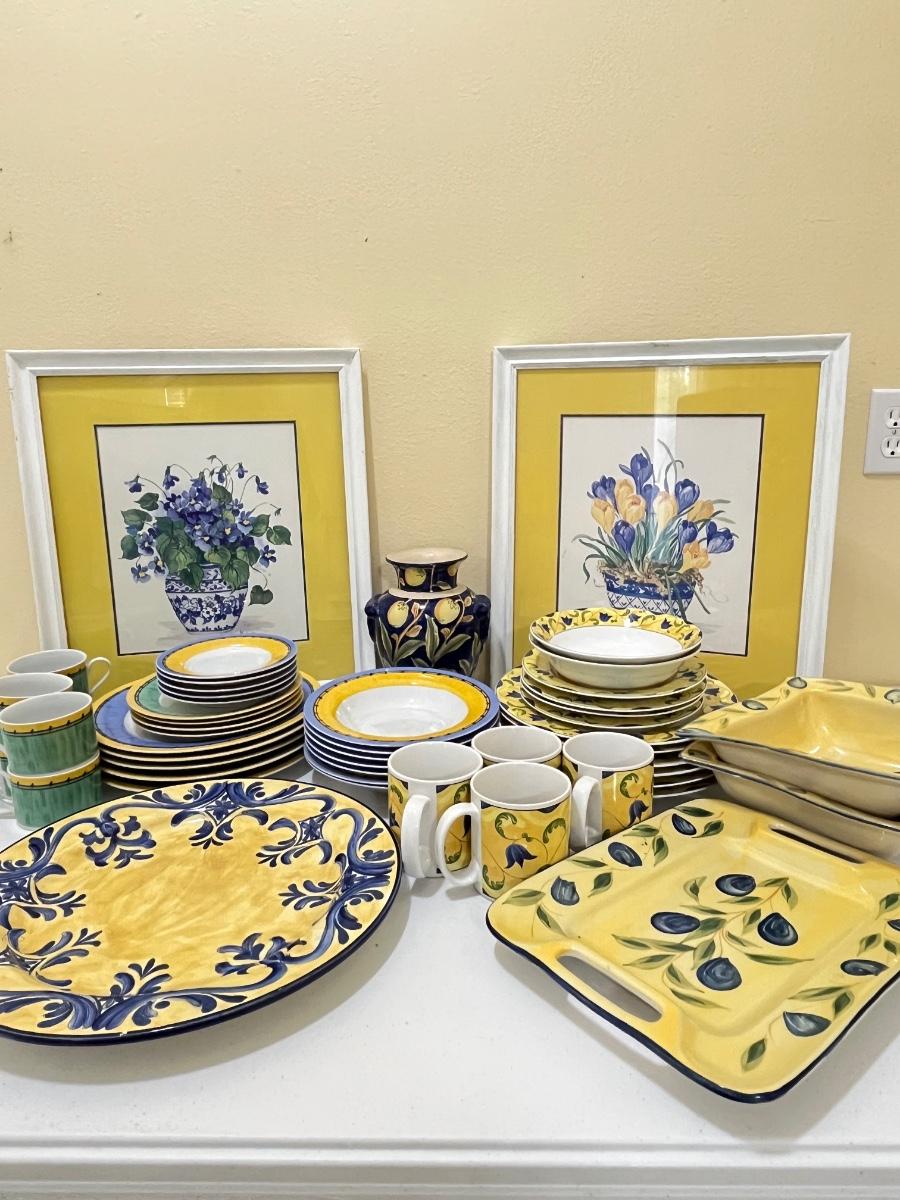 Kitchen Collection ~ Lot Of 50 Pieces Of Blue, Yellow & Green Assorted Kitchenware