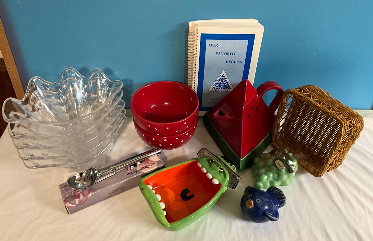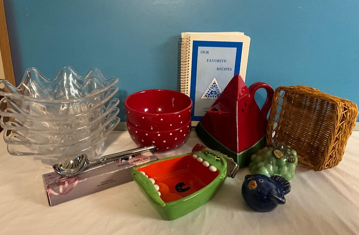 Kitchen Collection - watermelon teapot, ice cream scoop and bowls, plus