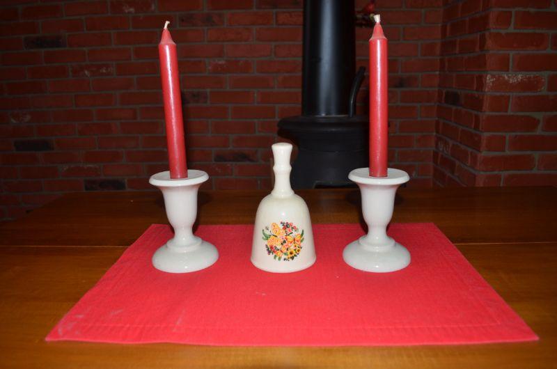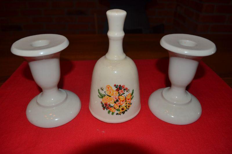 Candle Stick Holders, and snuffer plus a decorative plate