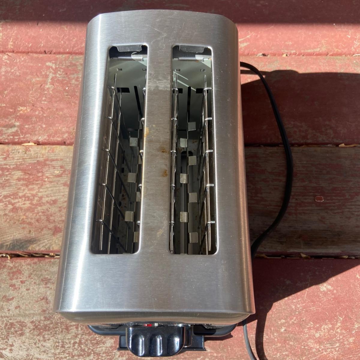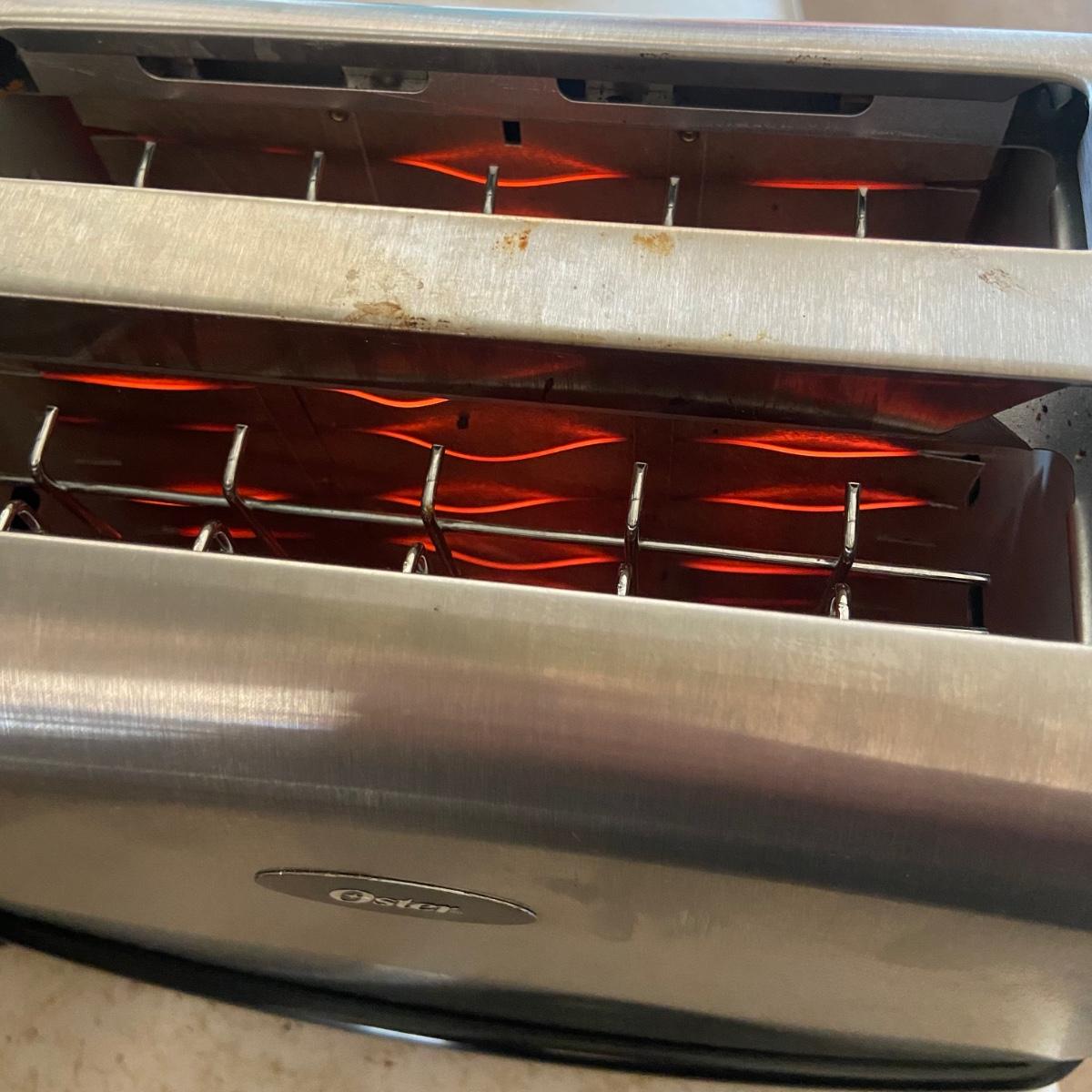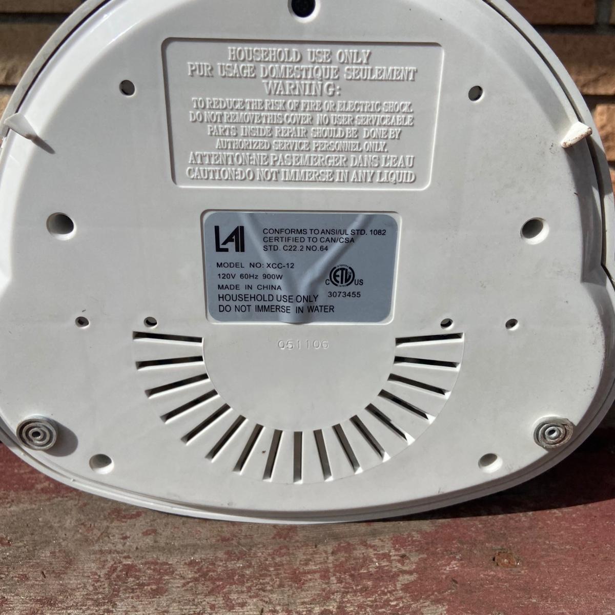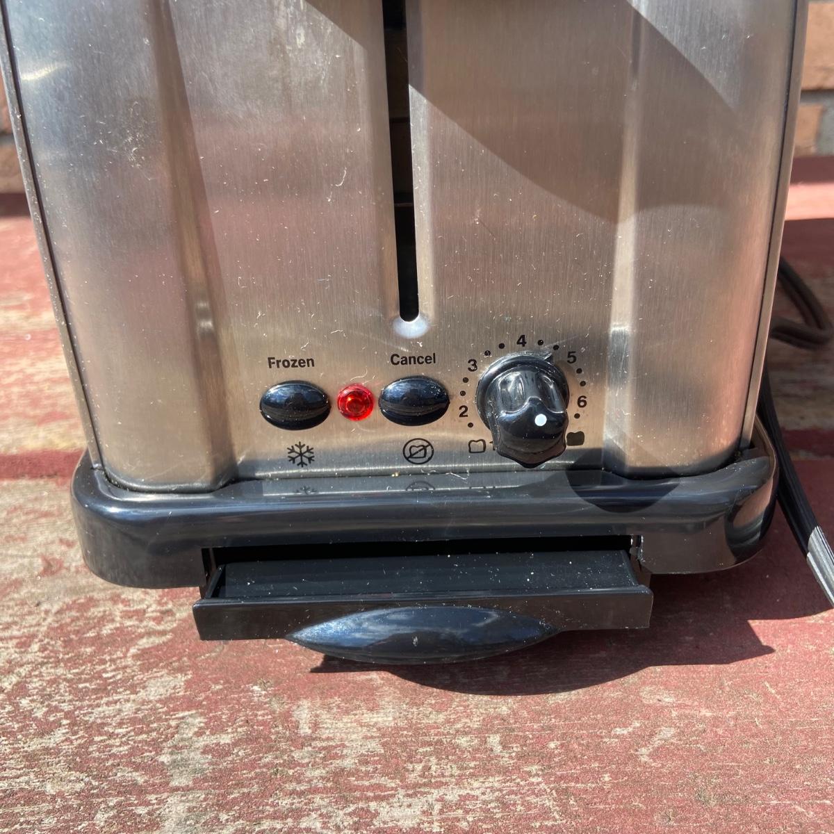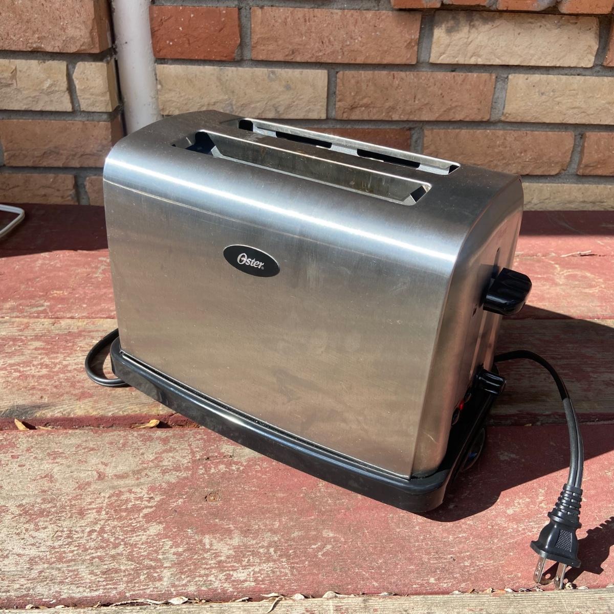 In this lot we have a total of three items. The first is a Gevalia 12 cup programmable coffee maker. It appears to be made of stainless steel and white plastic and has buttons to turn on and off as well as to program it for automatic brewing. It has a removable filter for easy dumping and a gauge on the side to measure how much water is in it. It does turn on. It measures 9.5” x 9” x 14”H. See pictures for model number. Next is a “Creative Home” what appears to be stainless steel whistling tea kettle. It has a fun checkered heat resistant handle and accents. It measures 9”H and has a 8.75”D. It appears to holds 2.7 quarts. Lastly is a Oster two-slice toaster. It has a crumb catcher drawer and an adjustable toast shade setting as well as a “frozen” and “cancel” button. It measures 7.25” x 11” x 8”H and appears to be made of stainless steel and plastic. It does power on. See pictures for model number.
