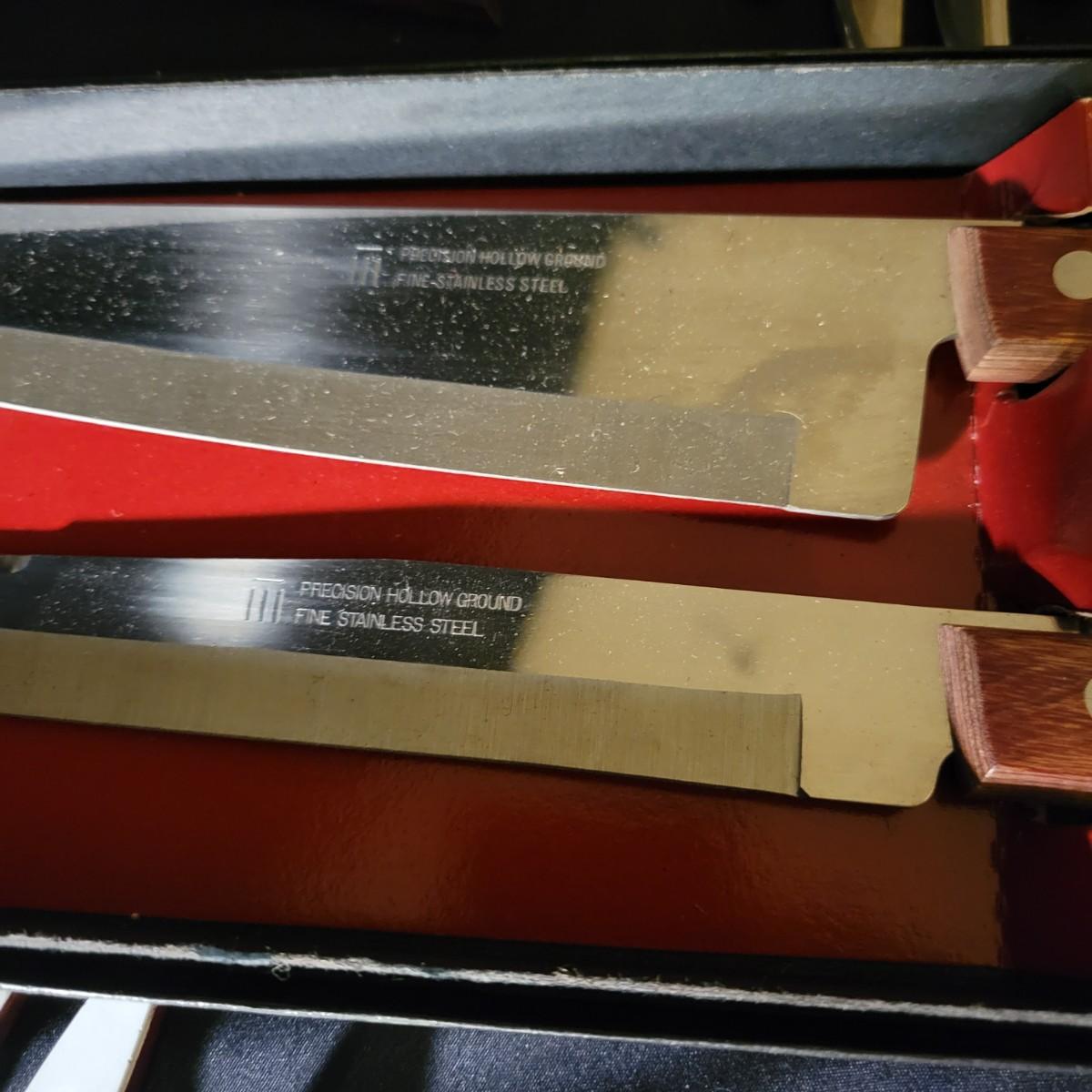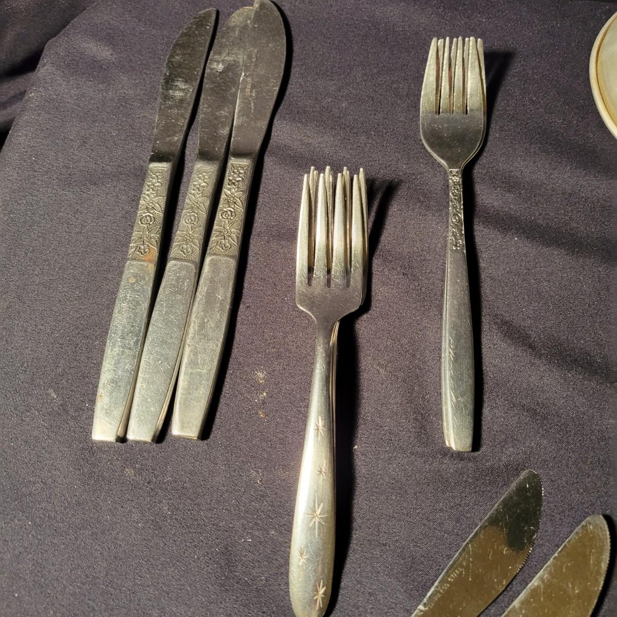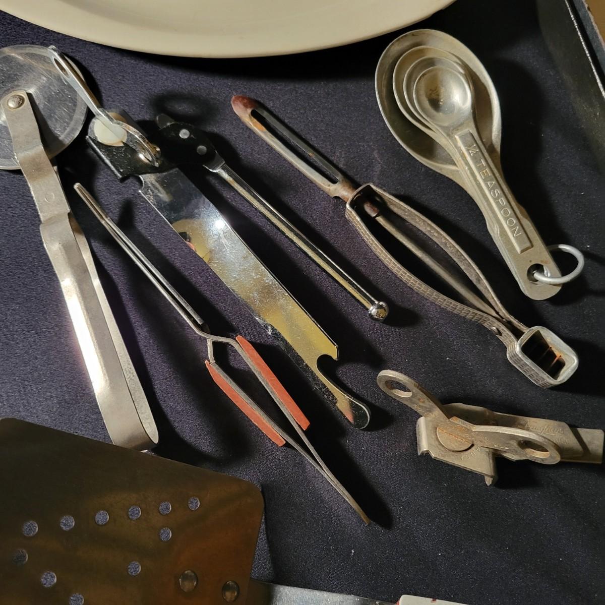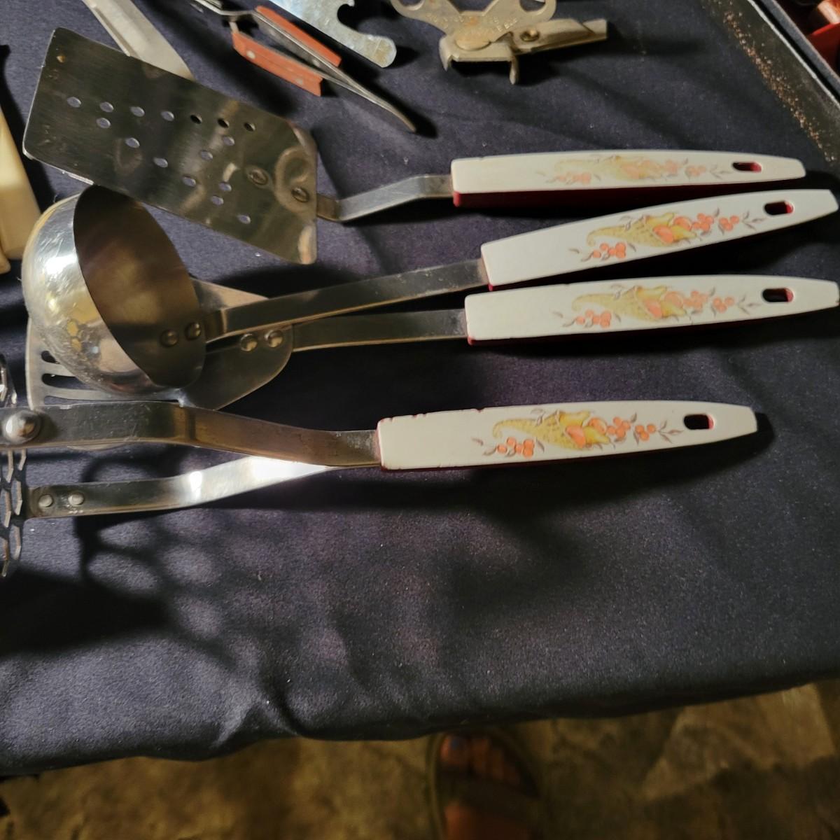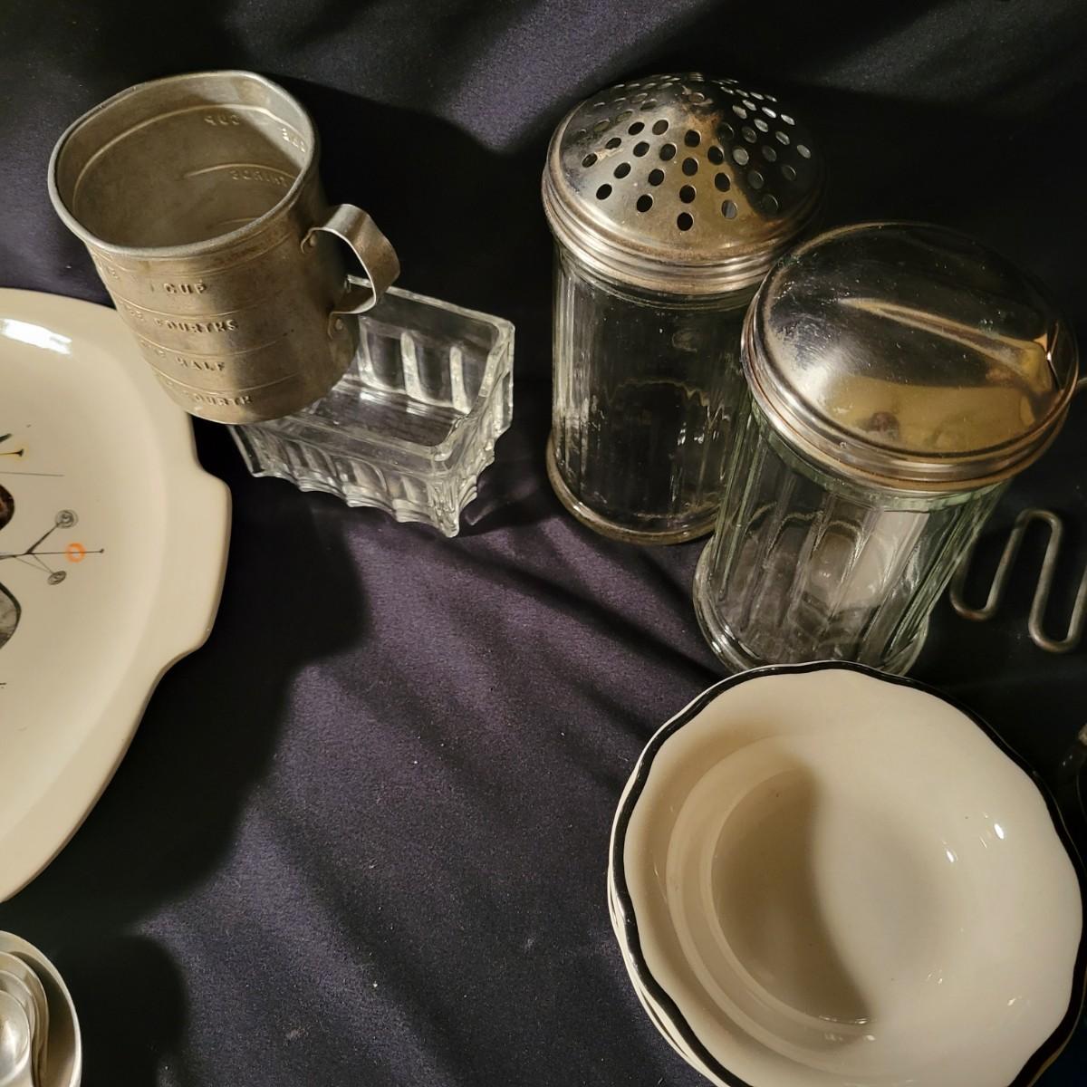 A large variety knives, flatware, utensils, ceramic and more in good condition. There's a little bit of everything for the kitchen in this lot. Potato masher, cookie cutter, sugar and cheese jar and so much more. This would be a great lot for someone outfitting a kitchen. Boxed knives are manufactured by Maxam. Shipping available