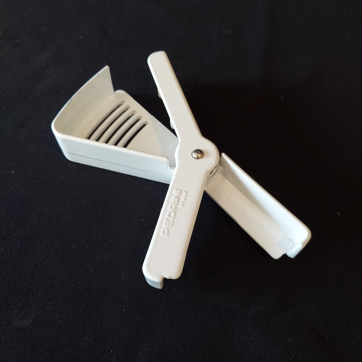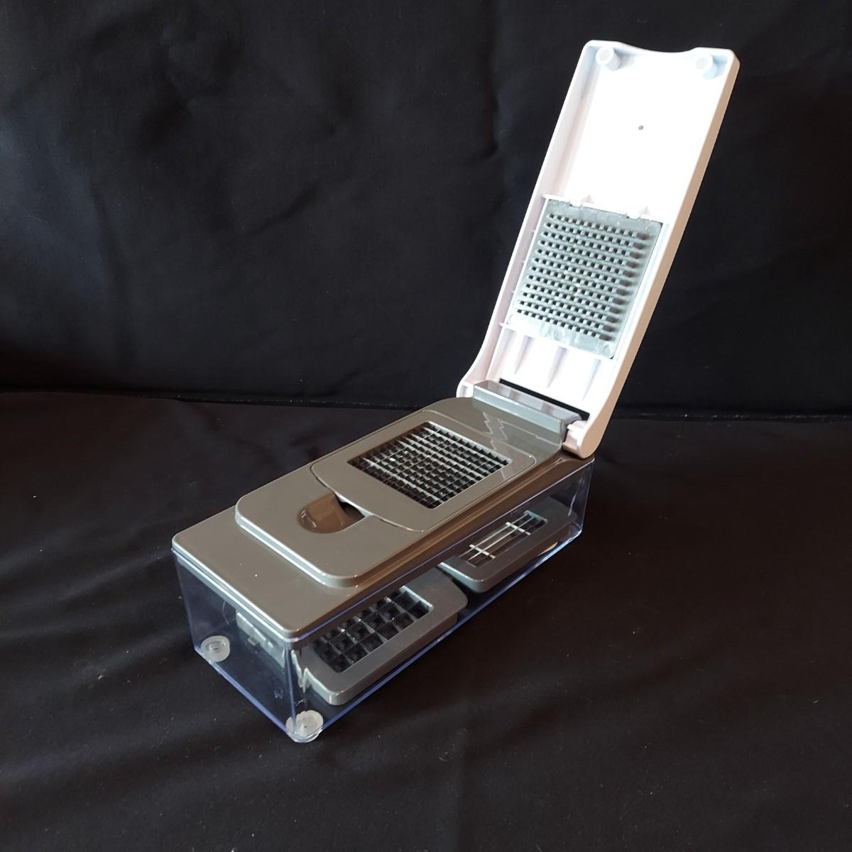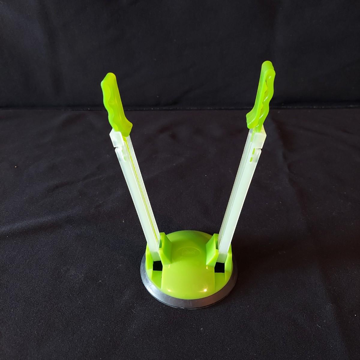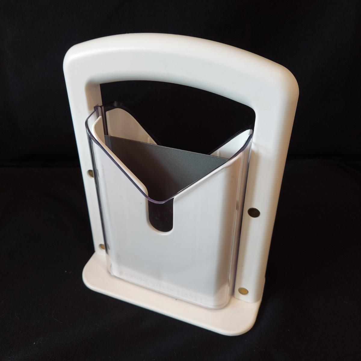 Bagel slicer, salad spinner, vegetable slicer, funnels, measuring cup, turnover press, simmer plate, basket with clay bread warmer, mandolin slicer, cheese grater, zip top bag holder, a recipe card holder and three types of strainers. The canning strainer is 12"H. Shipping available