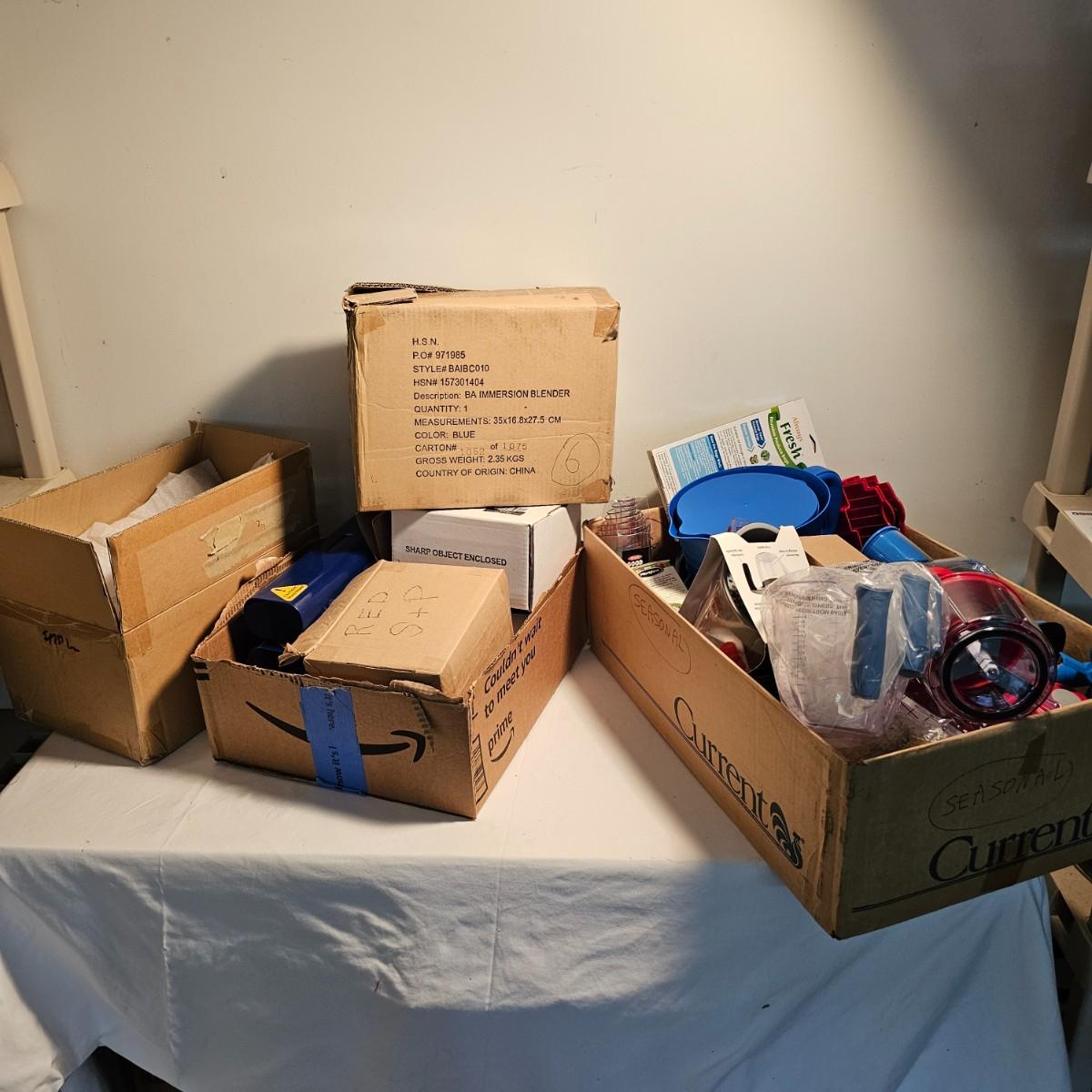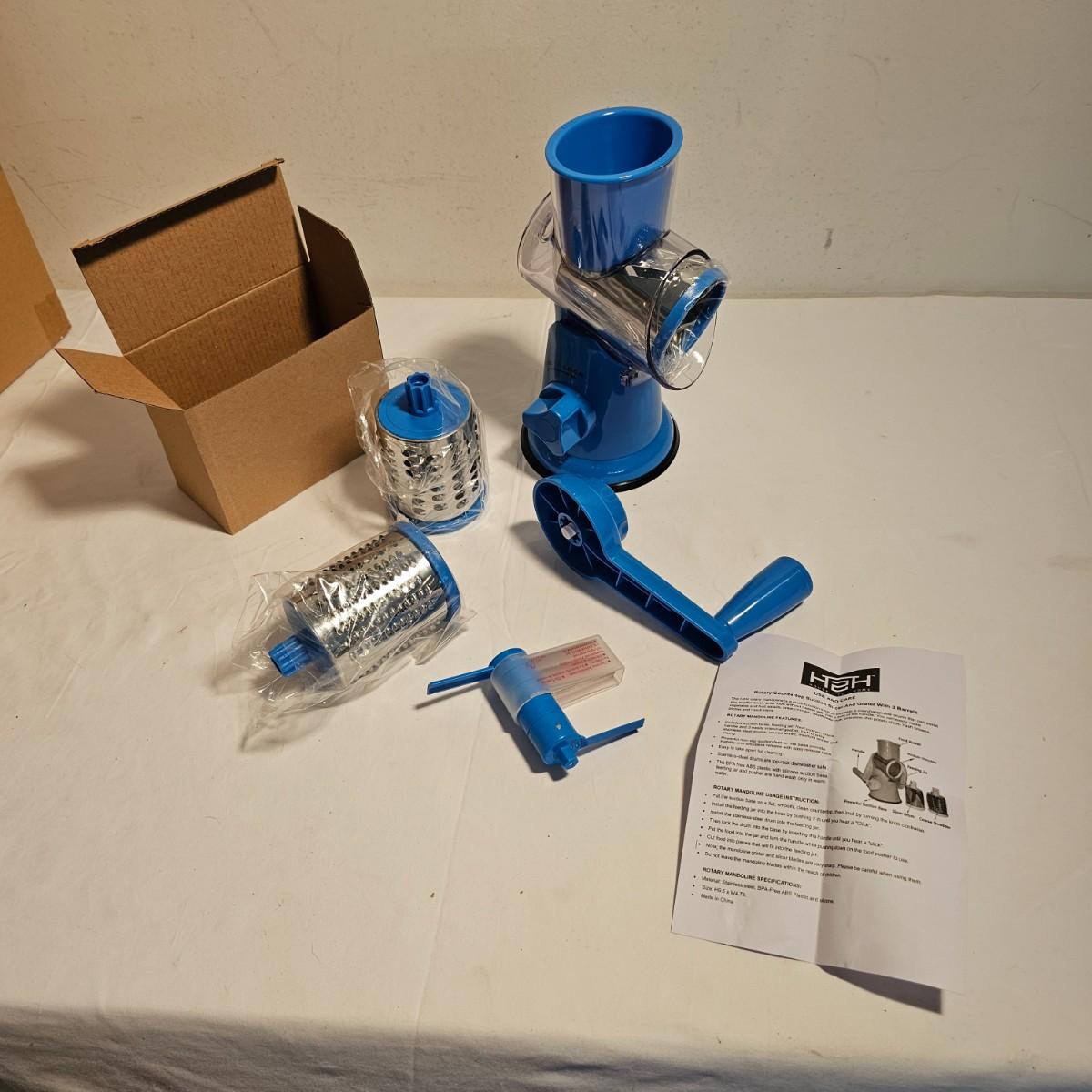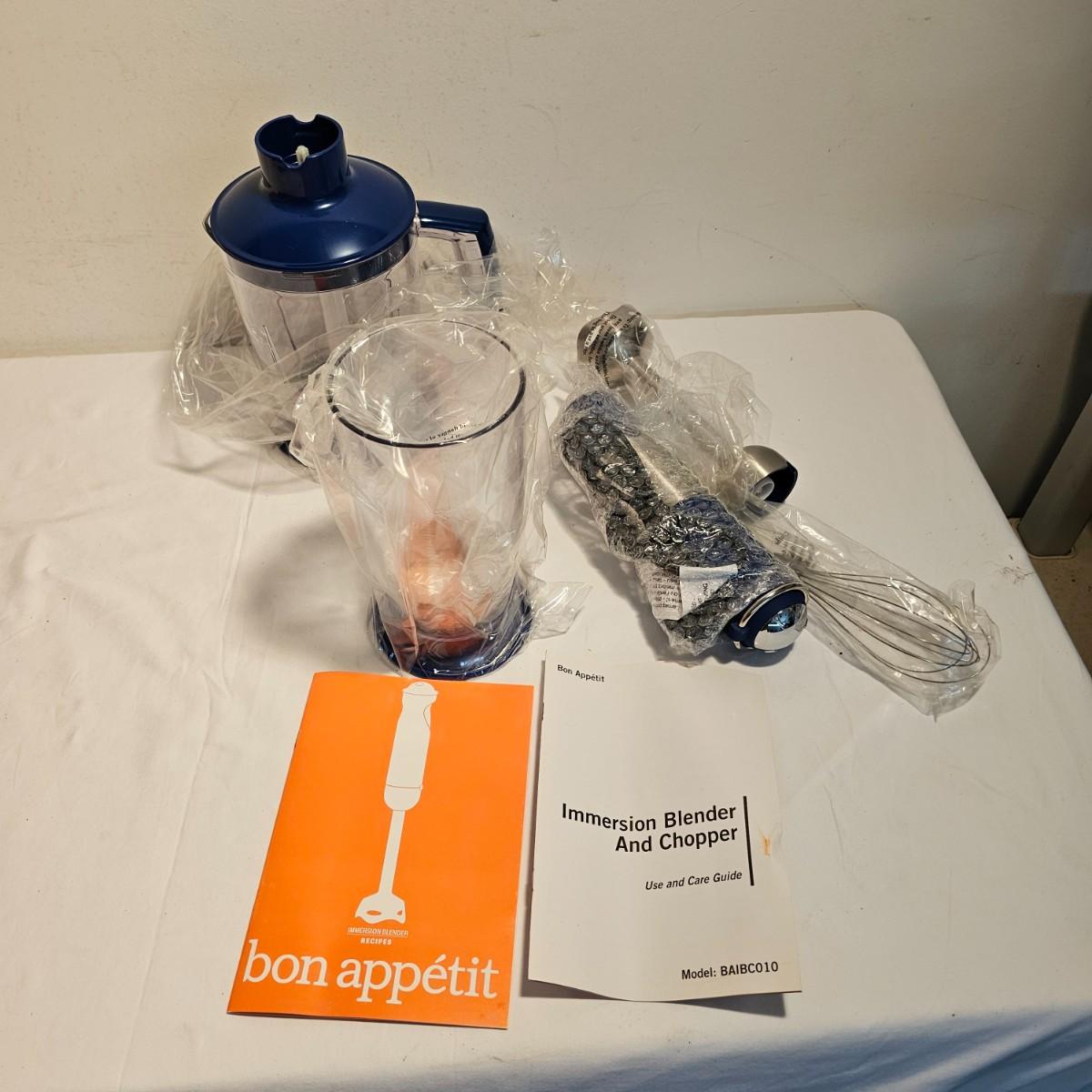 Lots and lots of kitchen helper pieces here, some electric powered, some hand powered. Salad choppers, grinders, hand immersion blender, measuring, graters, foil and plastic dispensers. Too many items to list all. All electric items powered on when plugged in. See photos for inventory and details. Local pickup only.