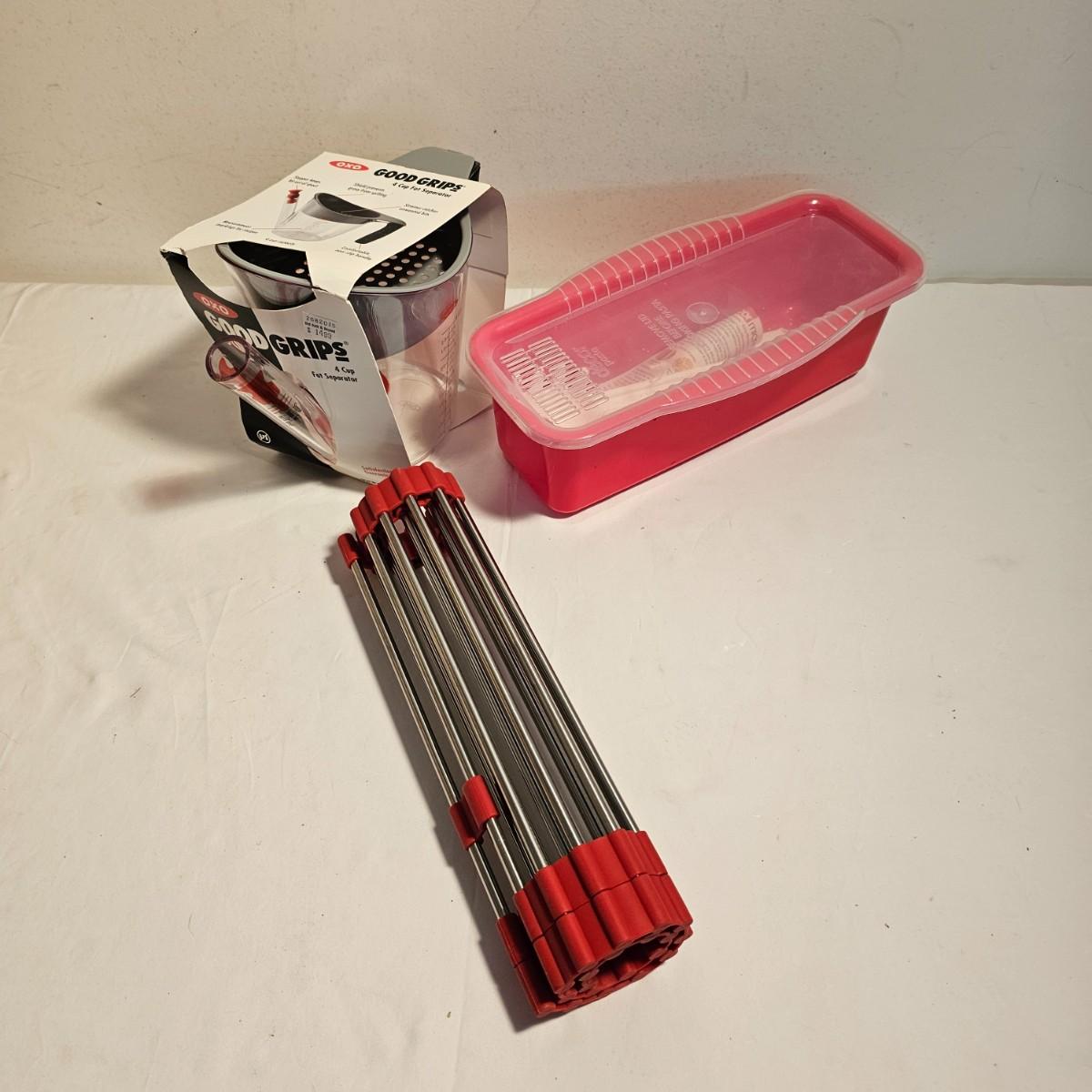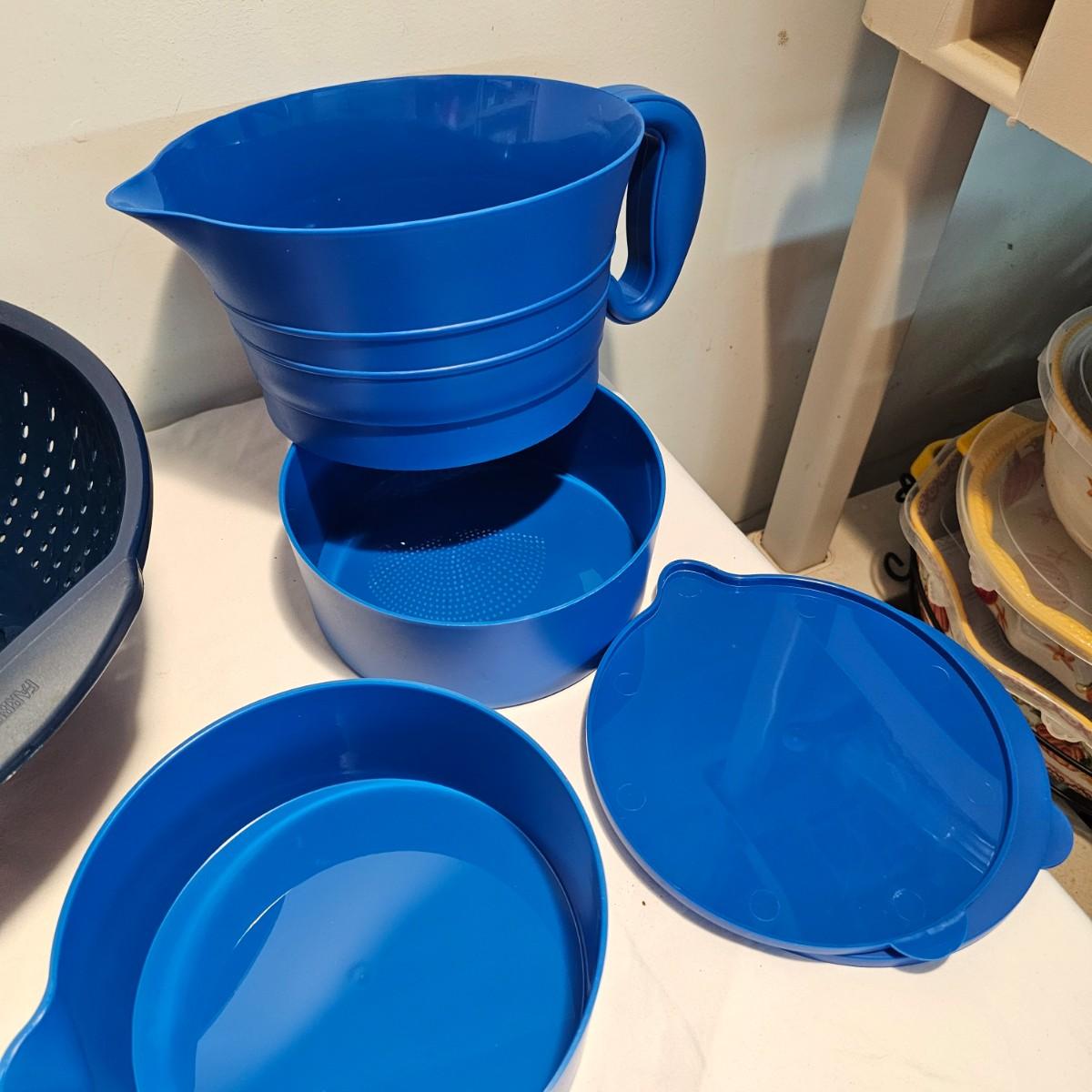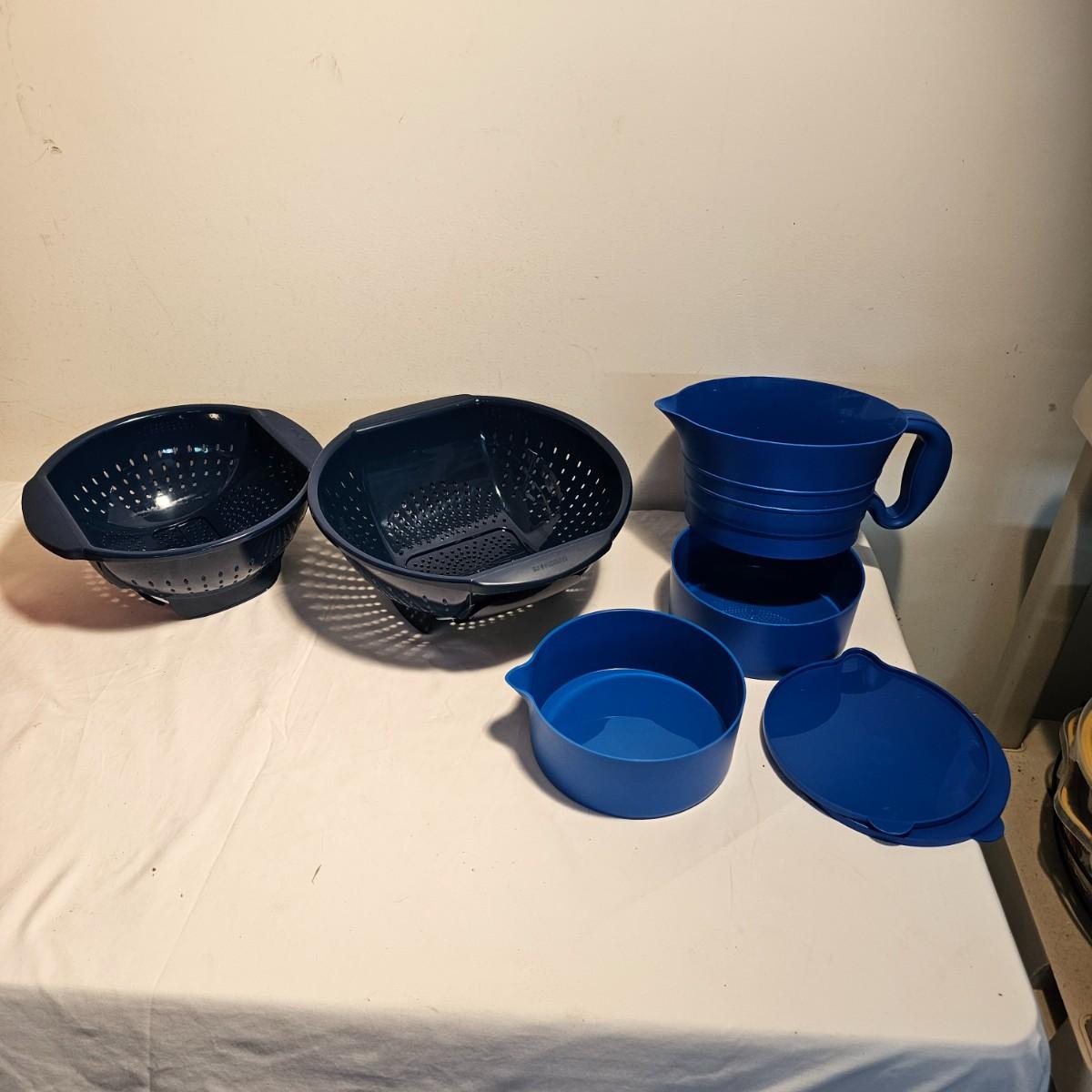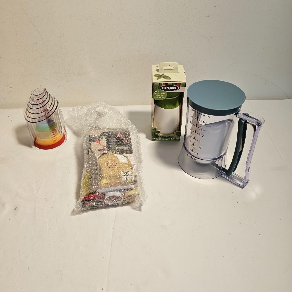 Lots and lots of kitchen helper pieces here, some electric powered, some hand powered. Salad choppers, grinders, hand immersion blender, measuring, graters, foil and plastic dispensers. Too many items to list all. All electric items powered on when plugged in. See photos for inventory and details. Local pickup only.