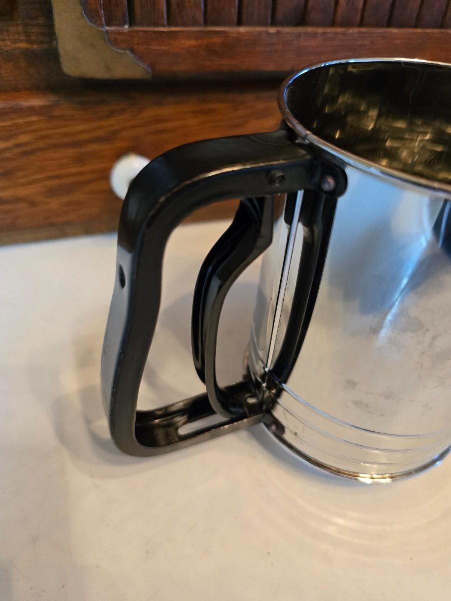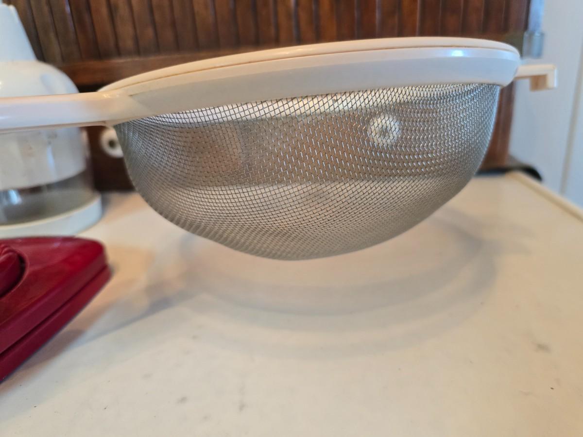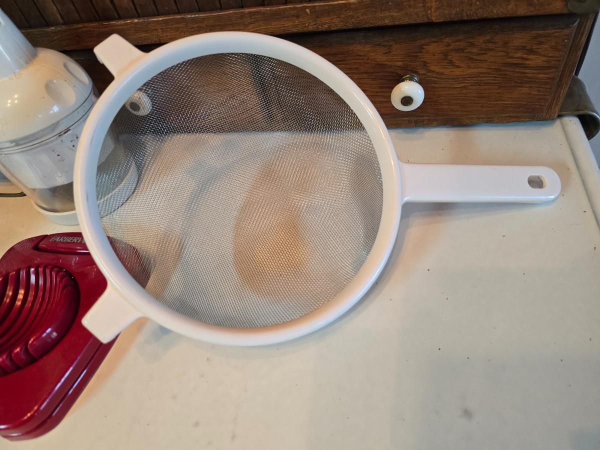 Kitchen gadgets - cutters, slicers and dicers with a strainer and a chrome flour sifter