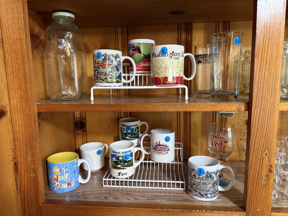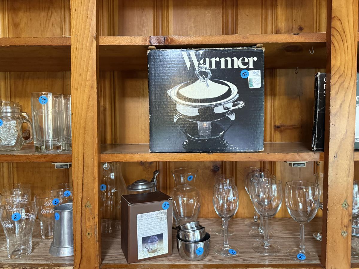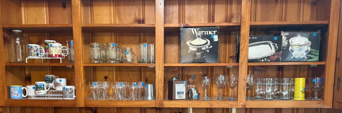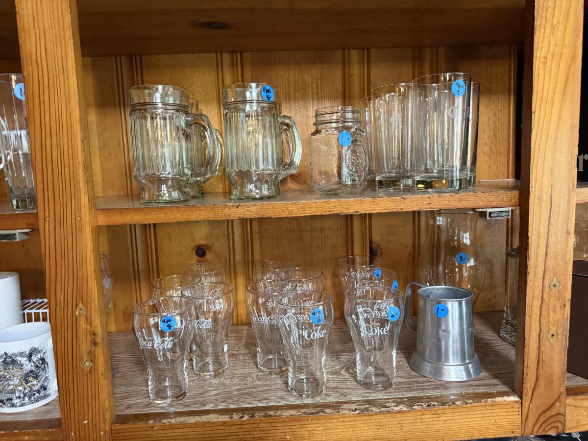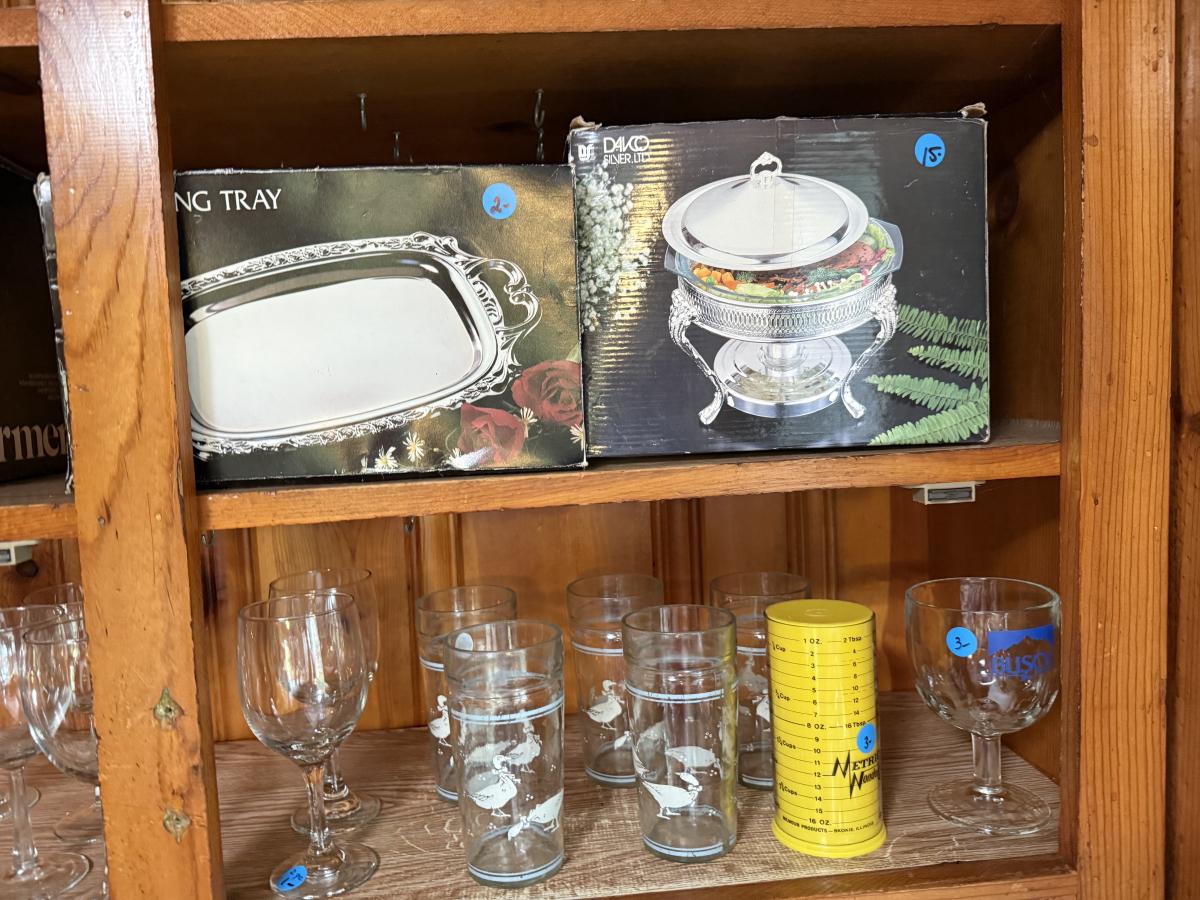 Coffee mugs, Coca Cola glassware, Duck glassware, SP chafers and trays, etc