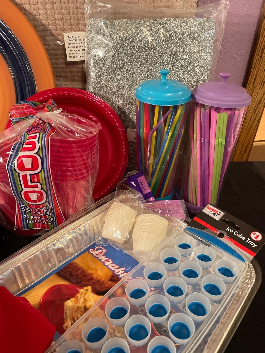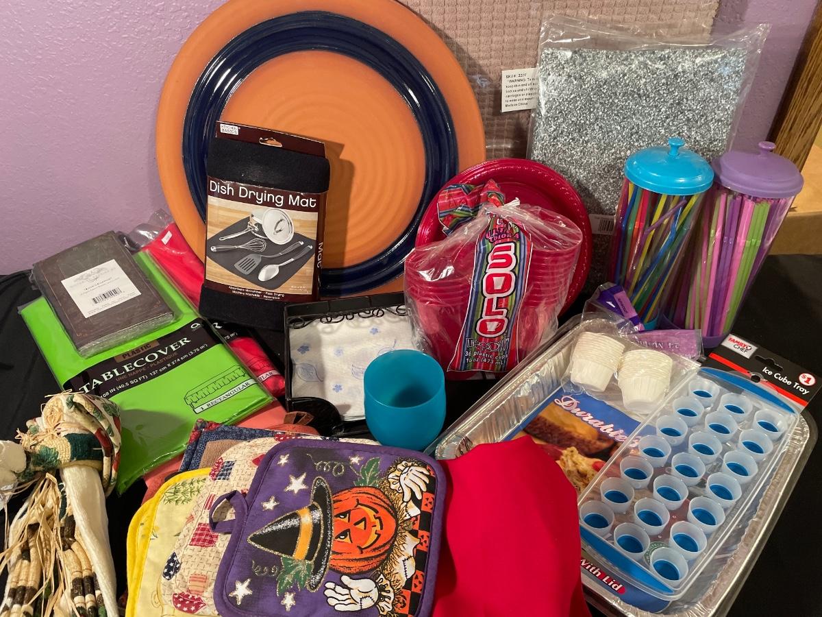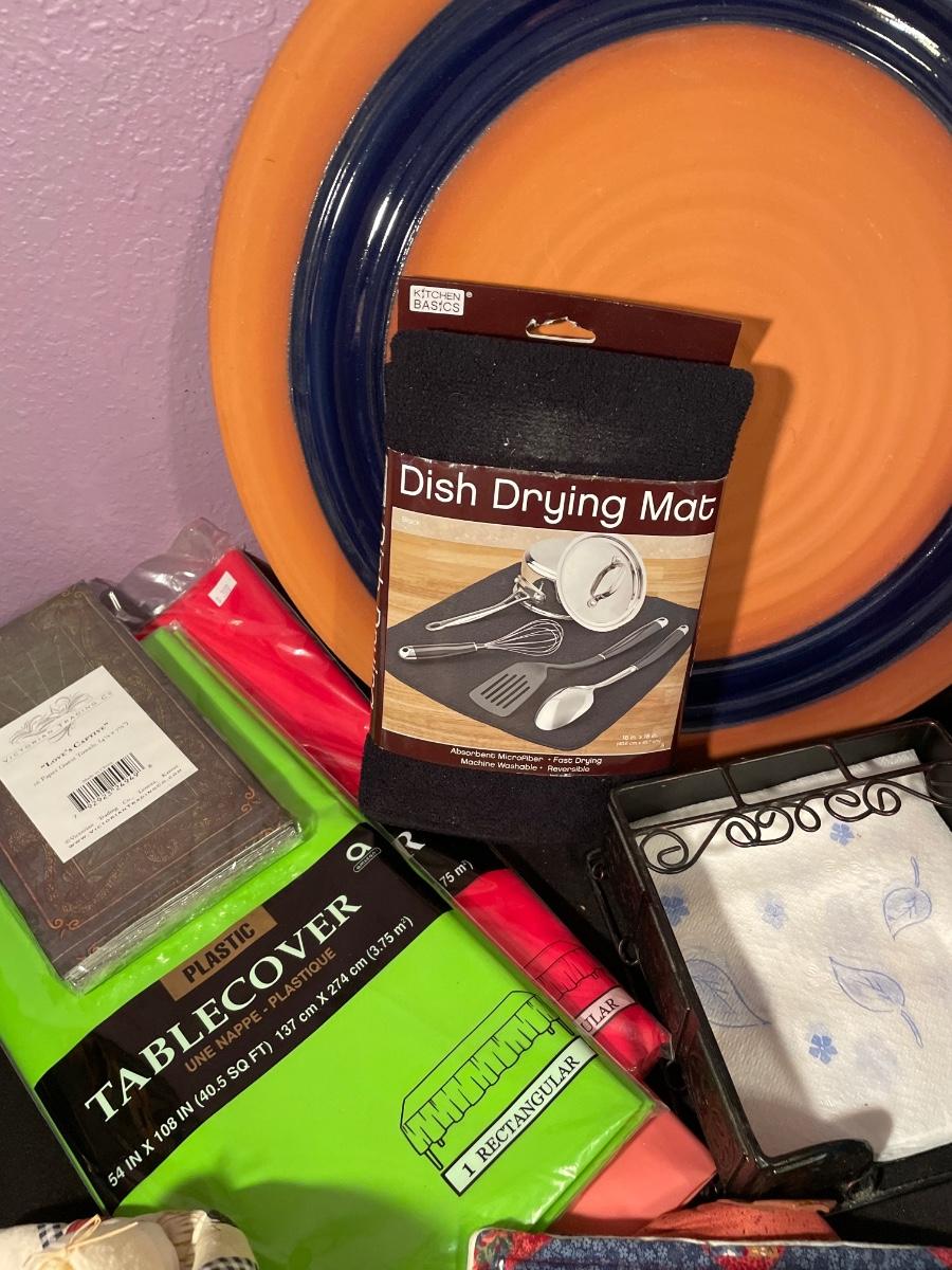 Dring mats, plastic table clothes, servingware, etc