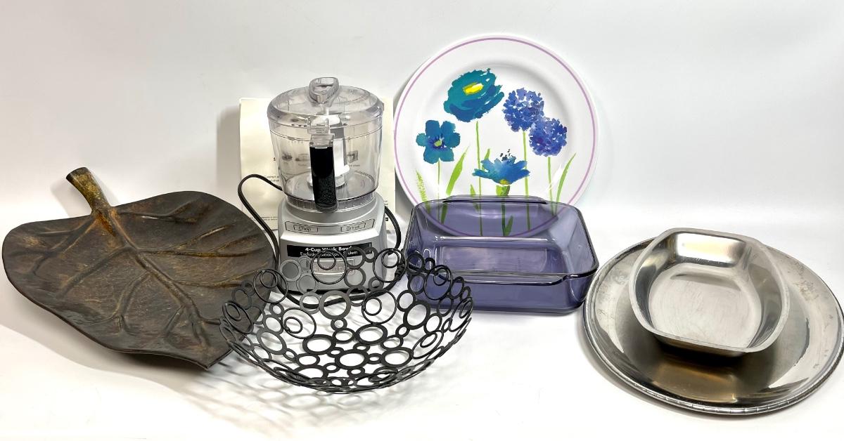 Kitchen home decor lot chopper, floral plate, leaf platter and more