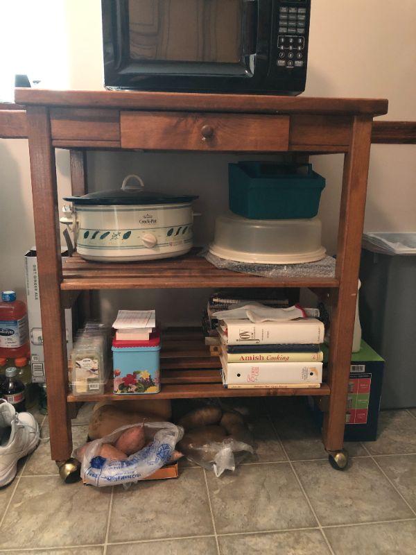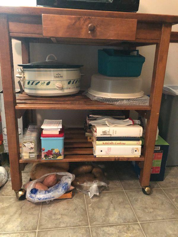 Excellent Condition - Island on wheels, with towel holder and 2 shelves