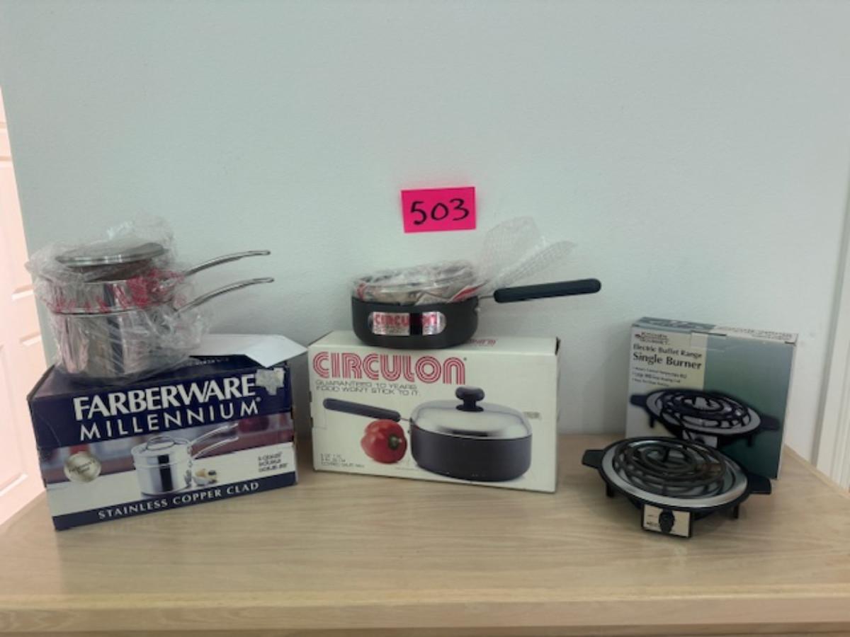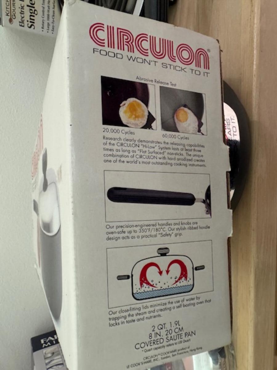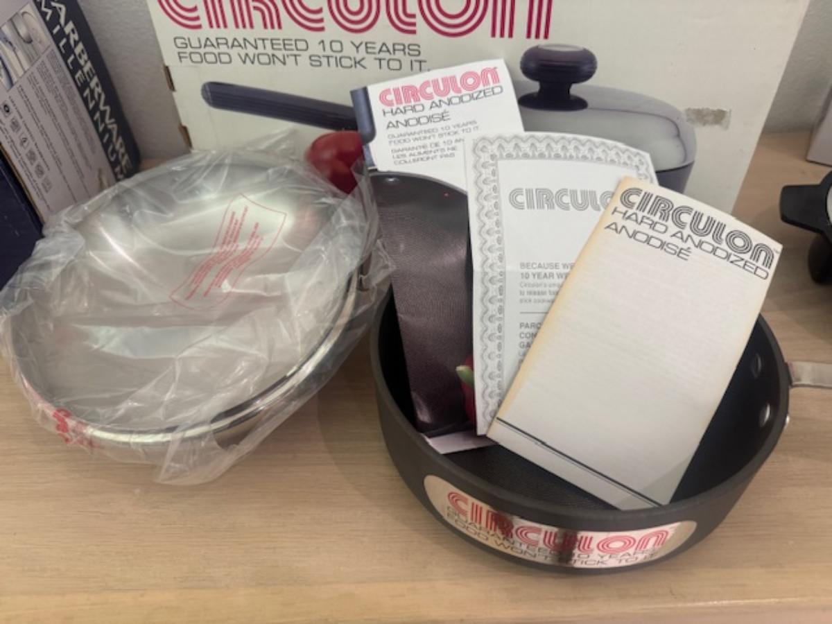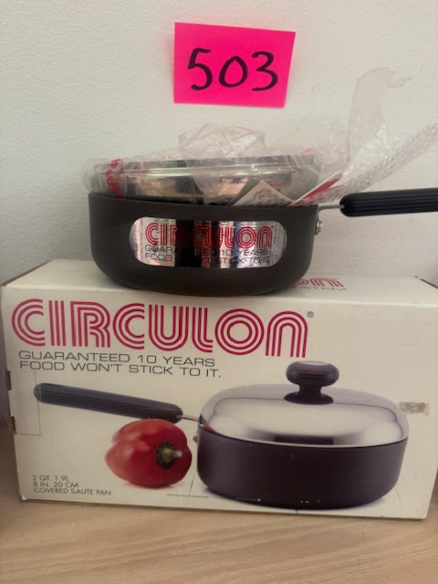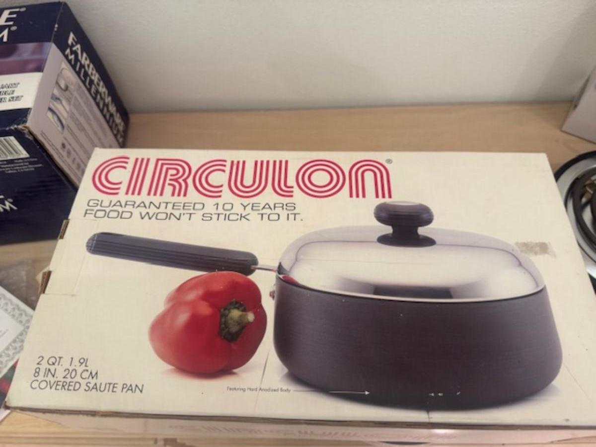 1. Circulon saute pan new 2 qt covered (scratch noted in pictures is from the outside bottom of this pan