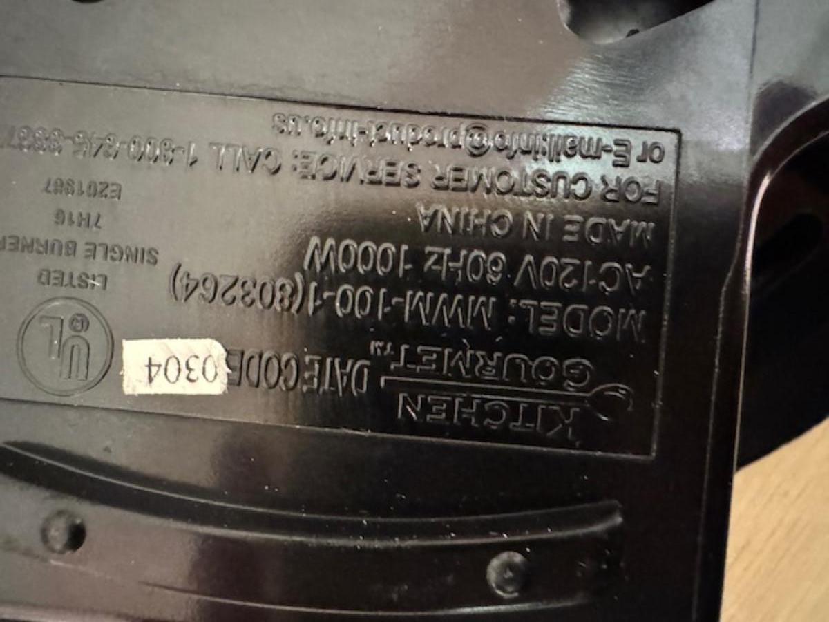 3. Kitchen Gourmet electric buffet range single burner 10 1/4" diameter