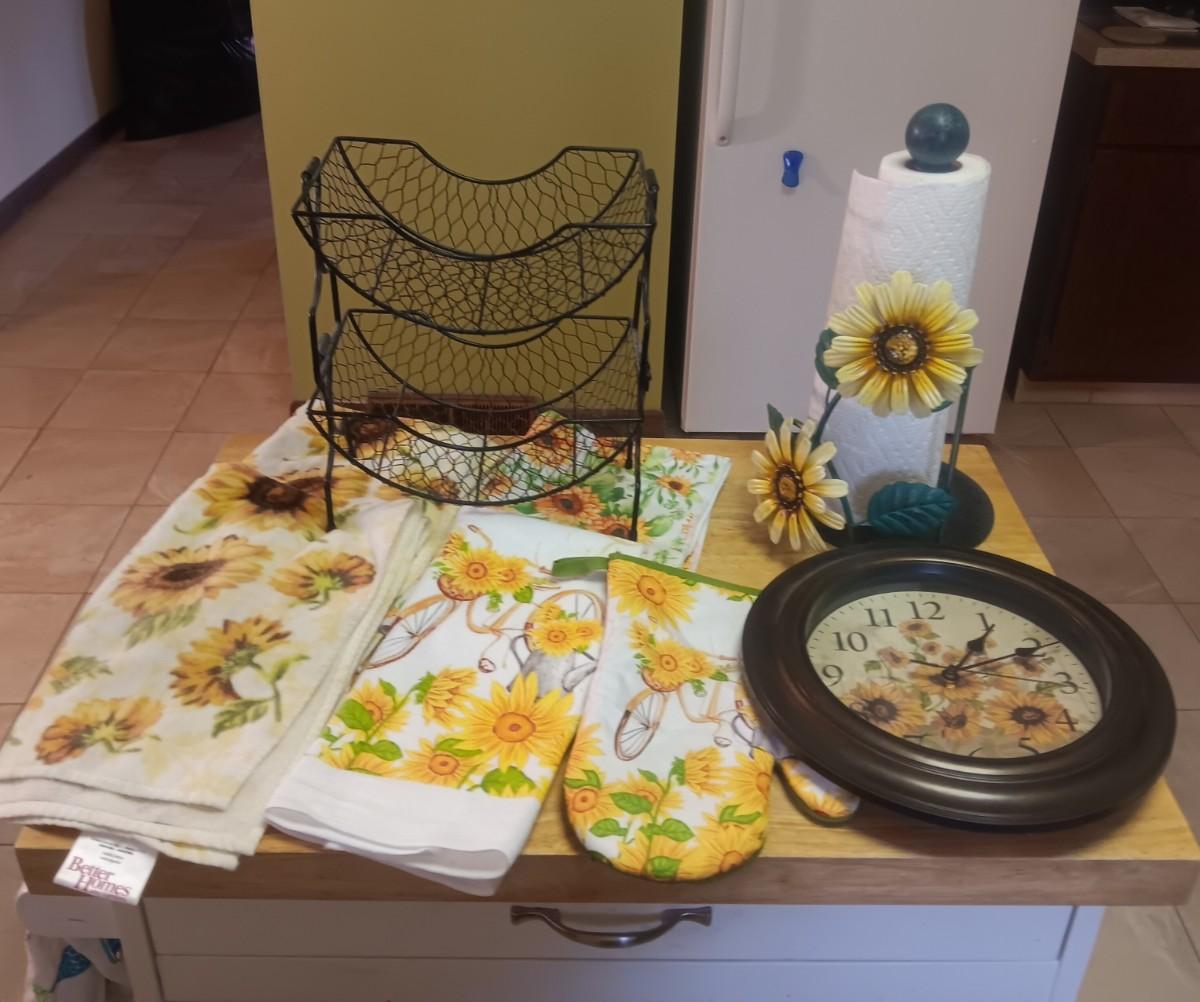 KITCHEN ITEMS WITH A SUNFLOWER THEME