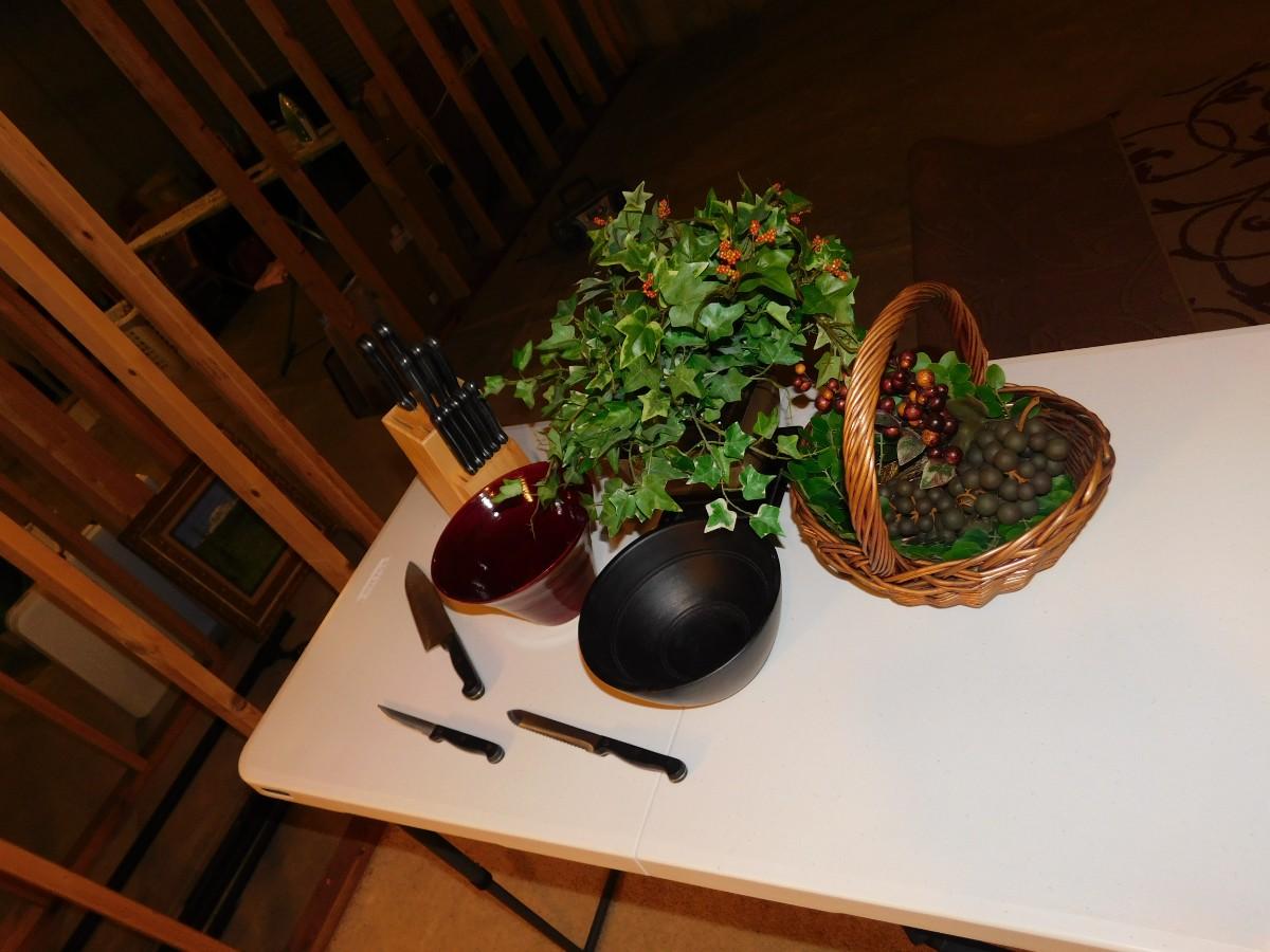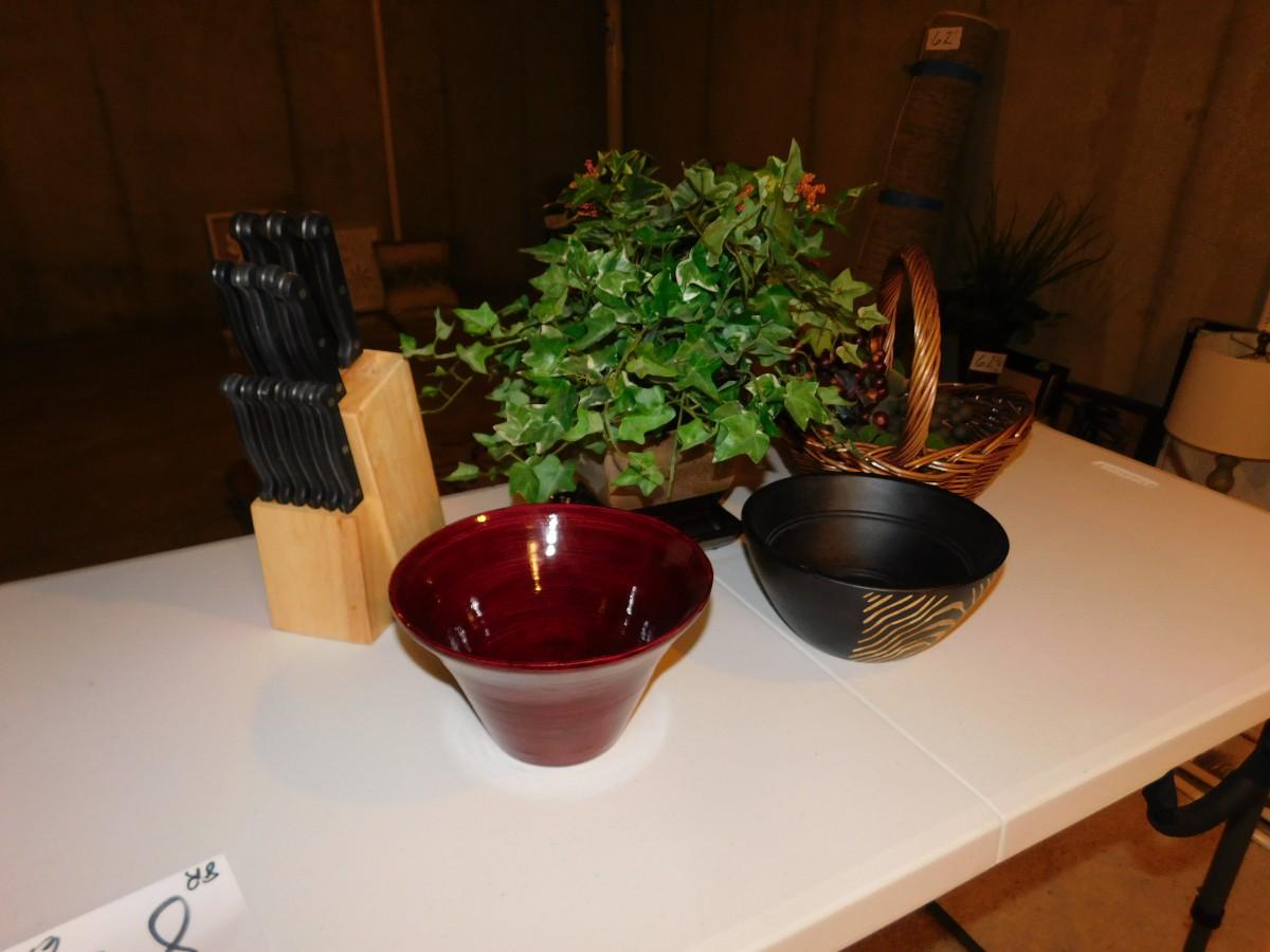 CUTLERY SET, FOLIAGE, BOWLS & BASKET