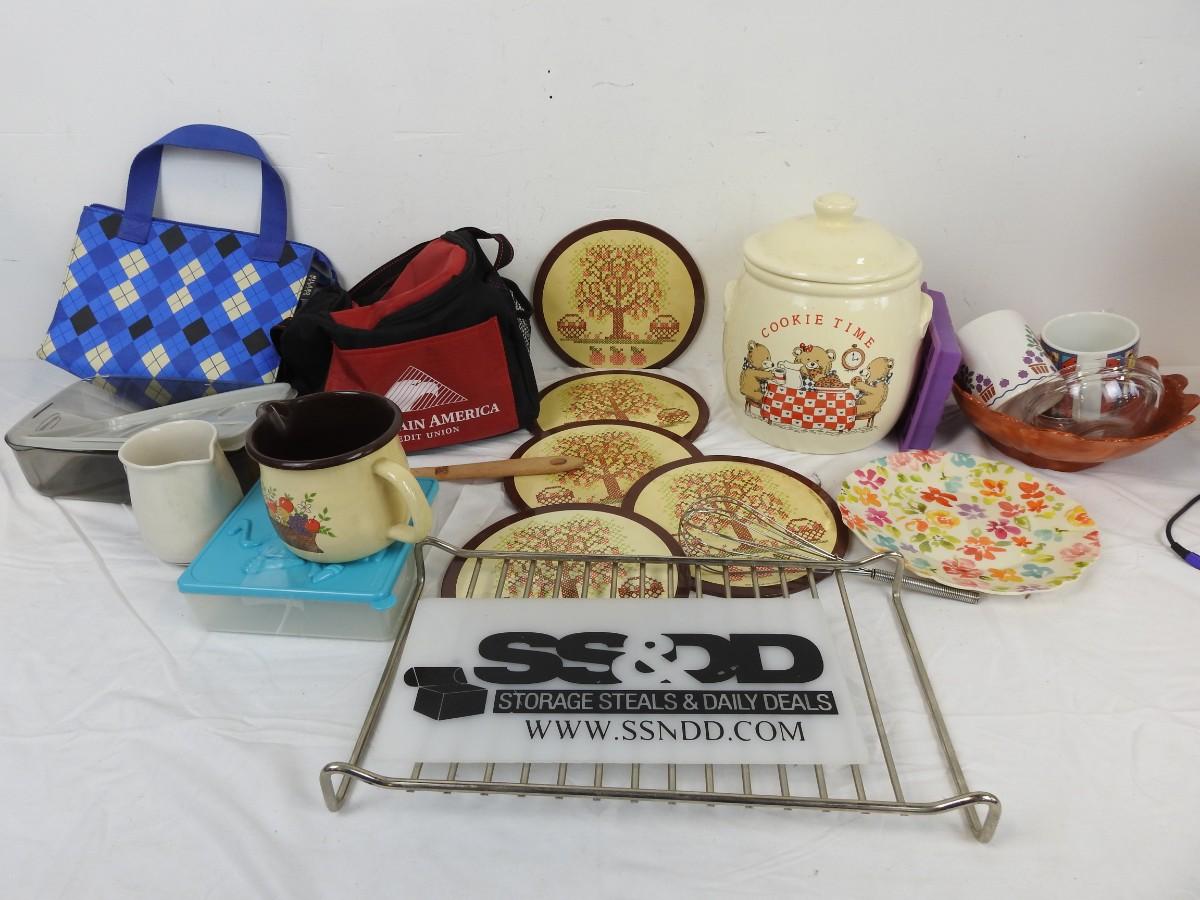 Kitchen Lot 15+ Items: Cookie Jar, Mugs, Cups, Bags