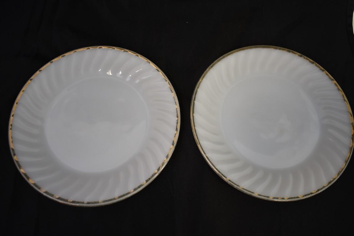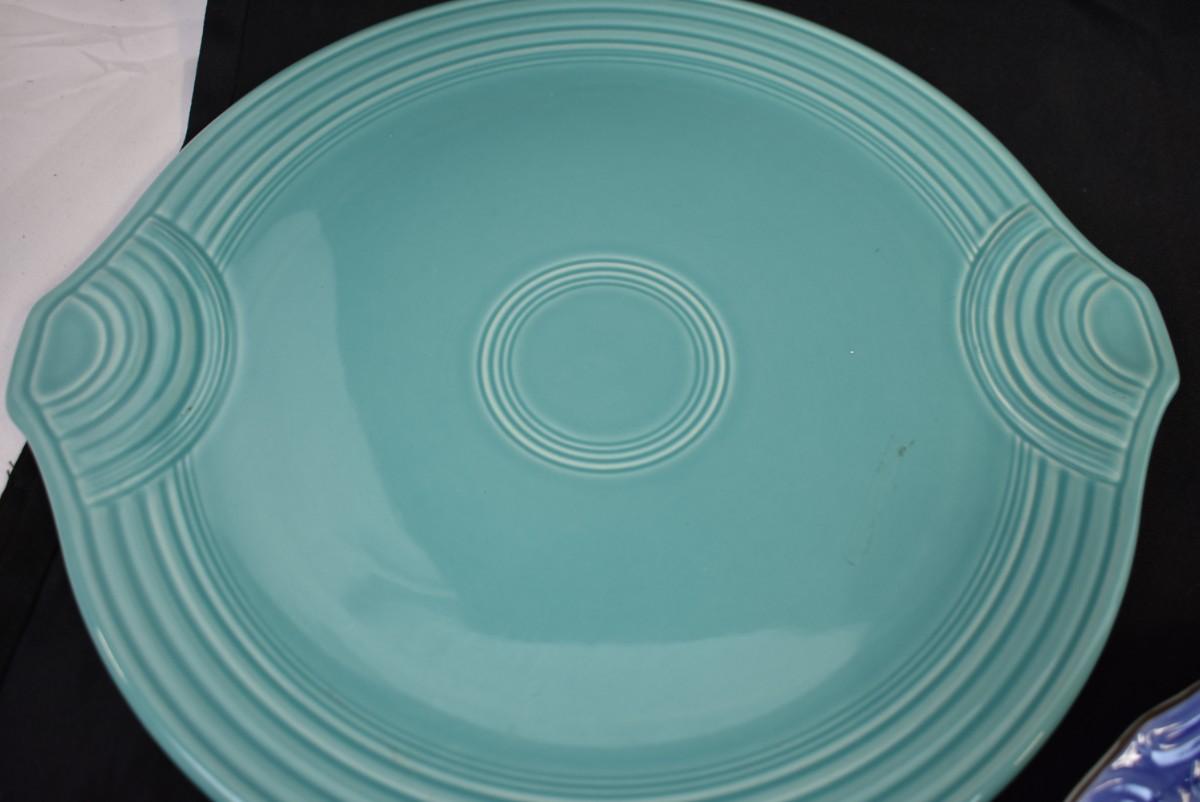 Kitchen Lot: Fiesta Ware Turquoise Platter, 2 Fire King Milk Glass Plates