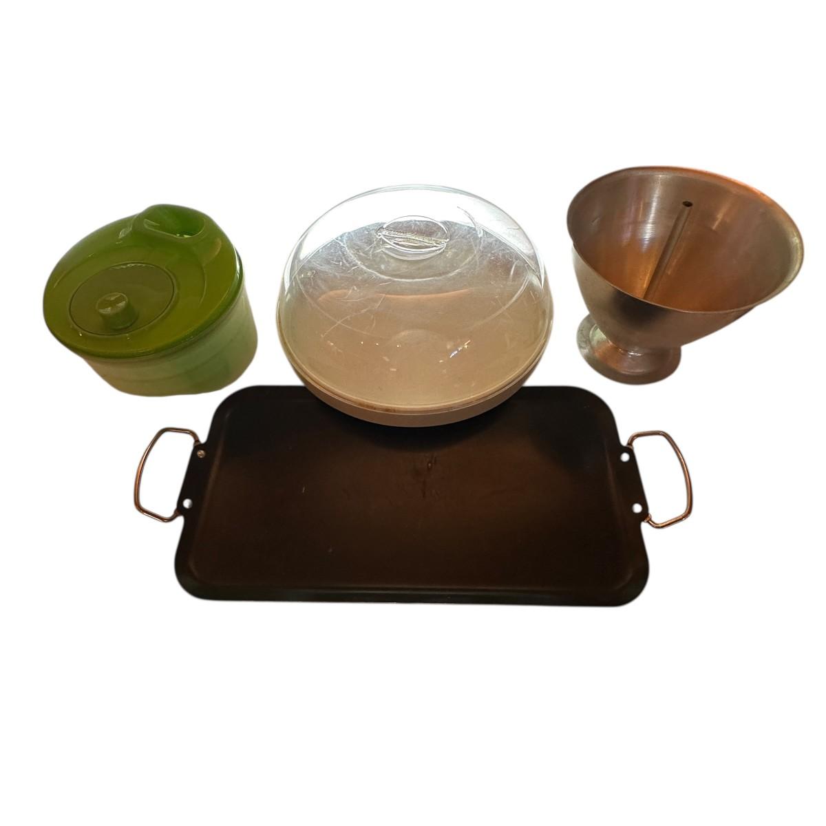 Kitchen Lot of Pan, Lettuce Spinner, Covered Platter, and Your Guess is as Good as Mine