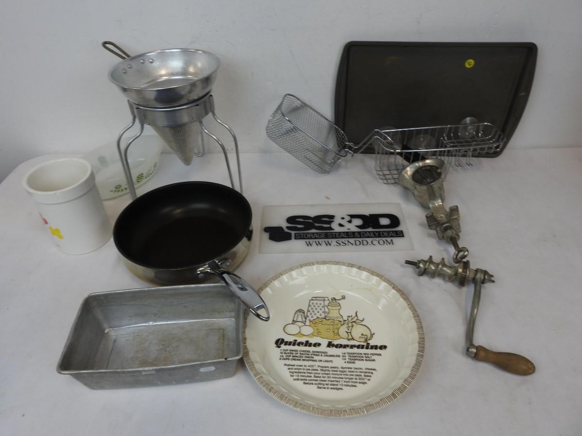 Kitchen Lot: Quiche Pan, Small Fry Basket, Decorative Bowls, Strainer
